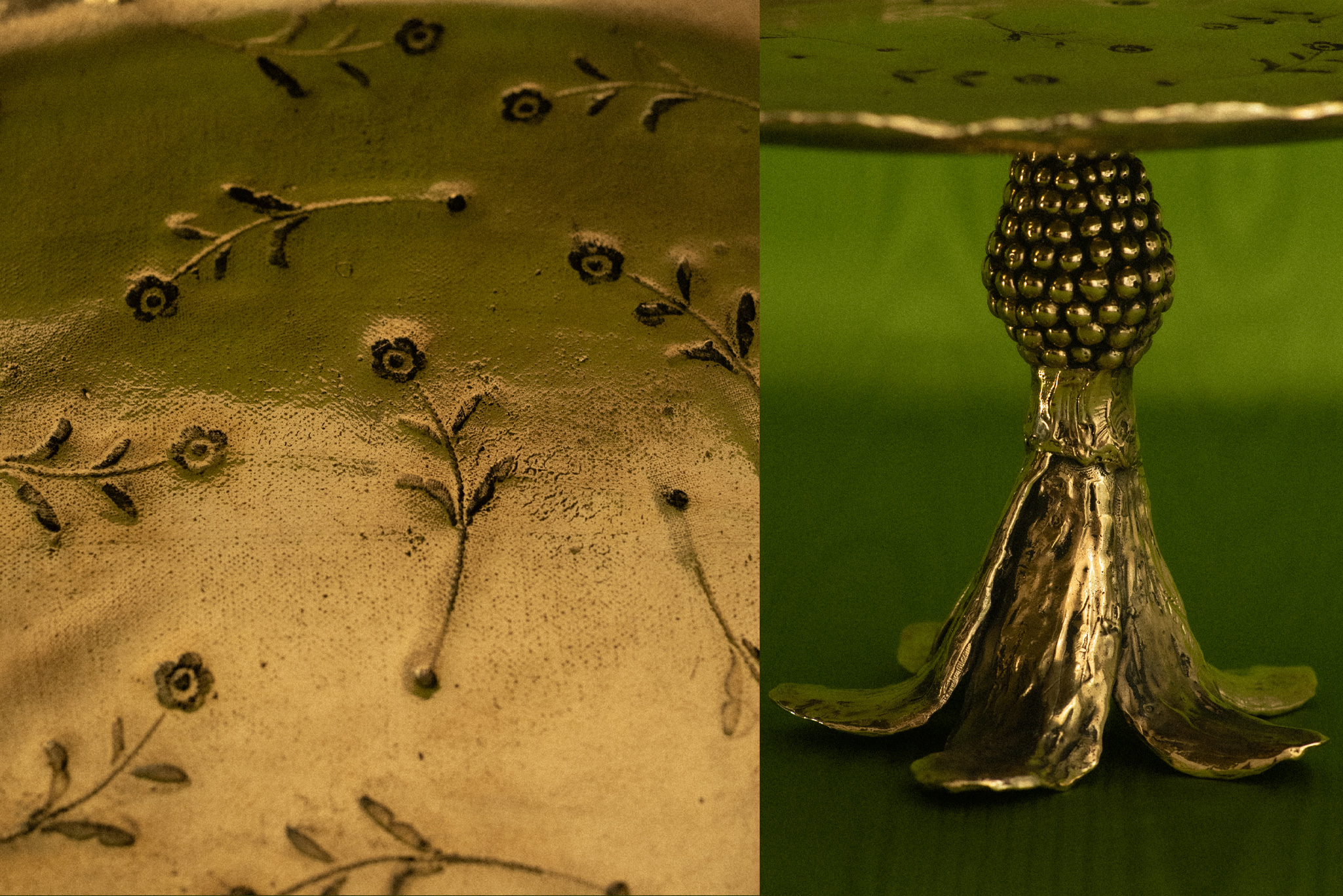 Inspired by floral structures and natural rhythms, the work unfolds through organic lines and balanced volumes, emphasizing the dialogue between resilience and delicacy. Its presence on the table transforms a functional object into a focal point, where form, weight, and texture engage in a subtle visual and tactile interplay.
