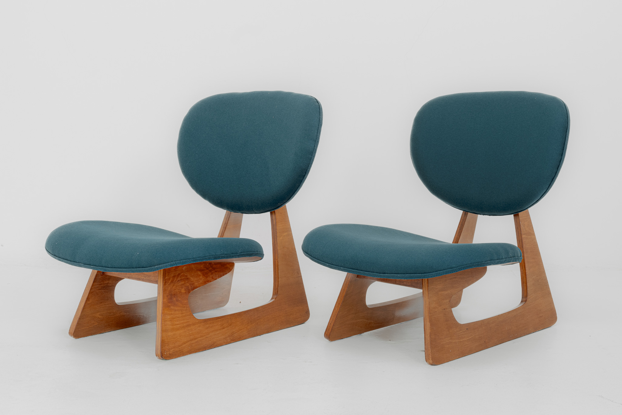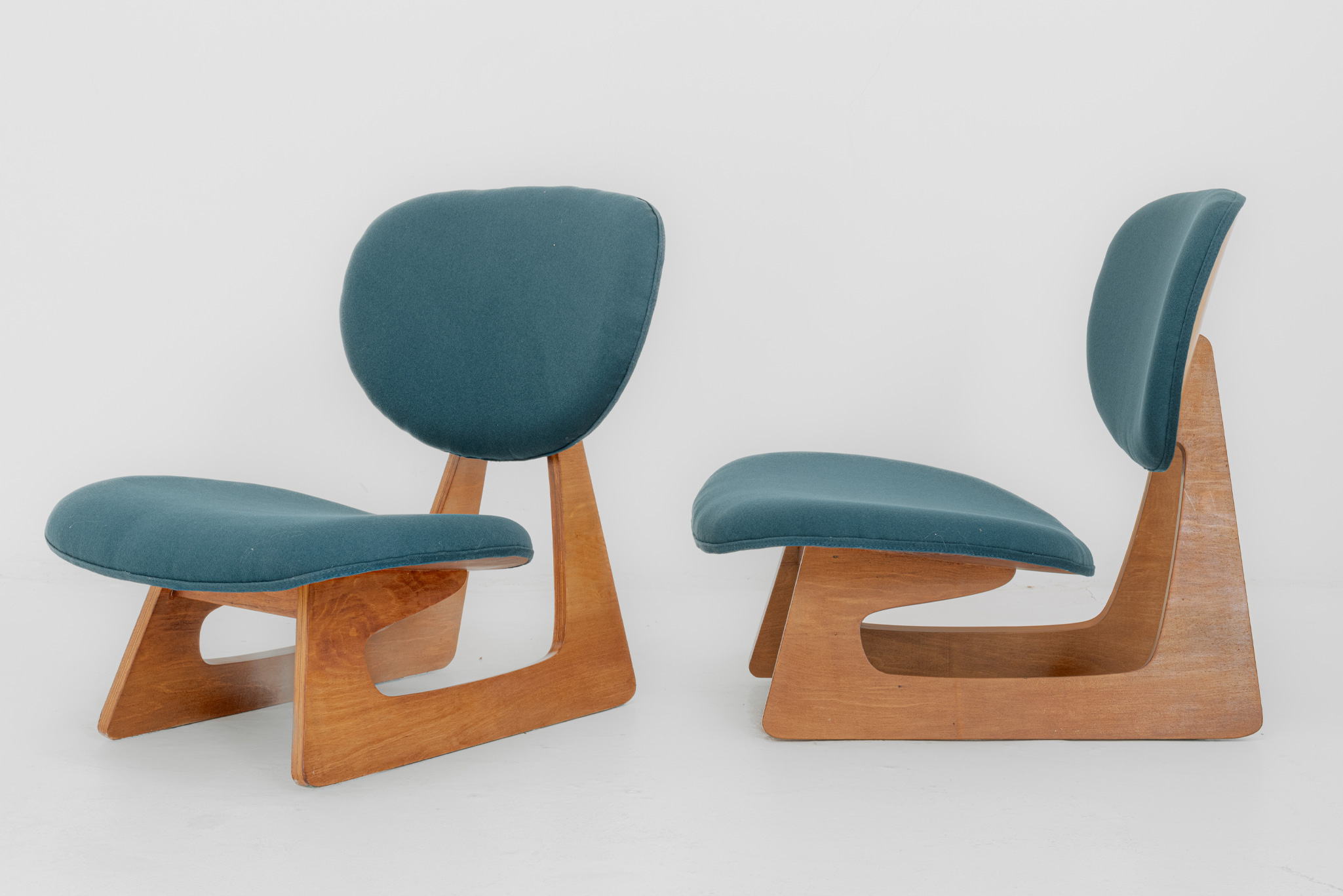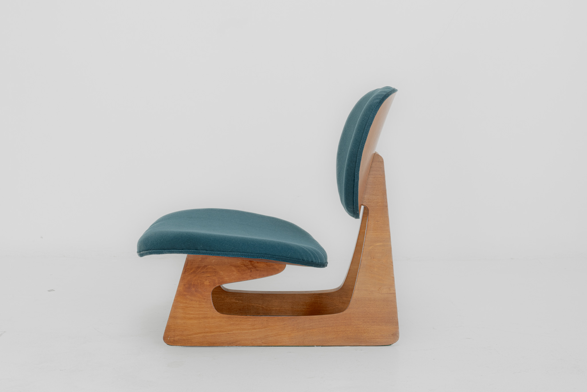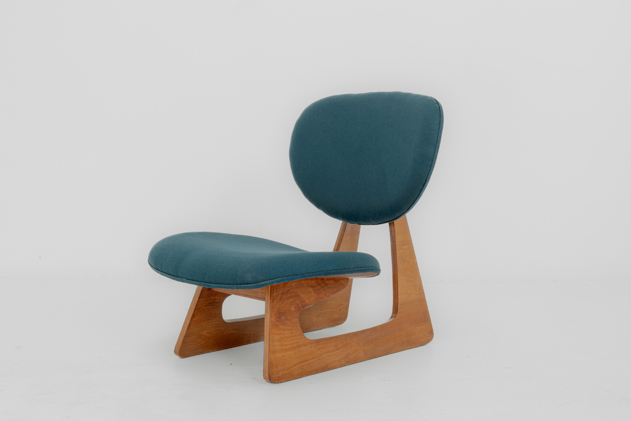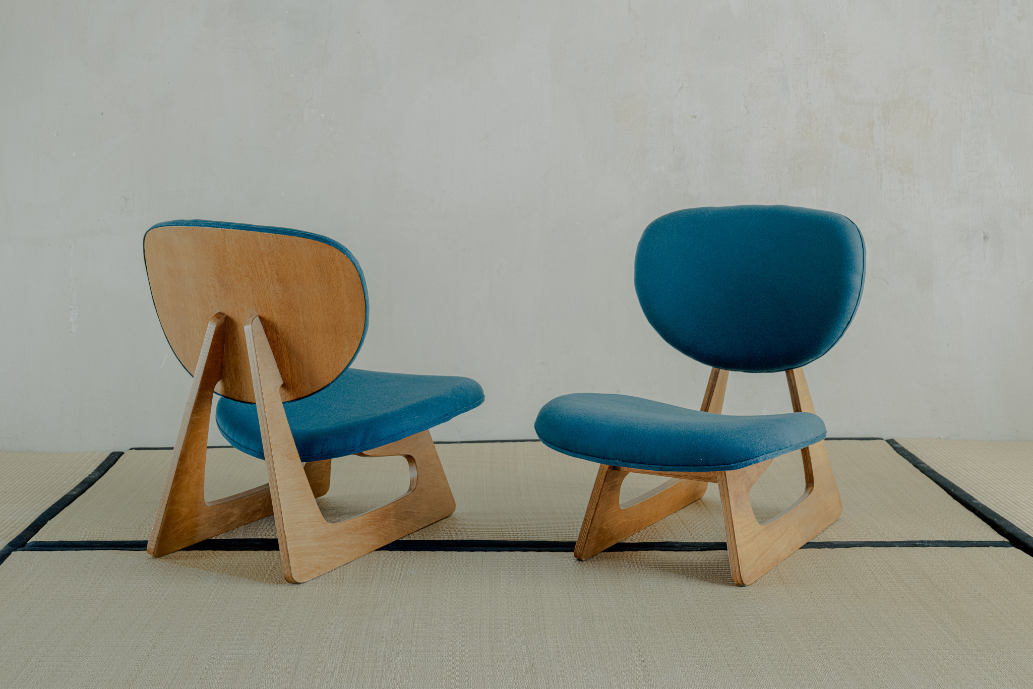 Sakakura also designed the Teiza Chair, unveiled at the 1960 Milan Triennale. Low to the ground, with a sled-style base and molded plywood frame, it translated traditional Japanese floor-sitting customs into a modern form. This was Sakakura at his most insightful — merging cultural heritage with global modernism.