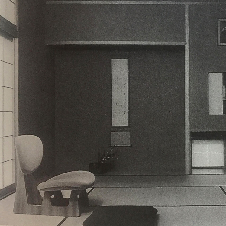 In 1957, he was involved in the architecture and furniture design of the Fujiyama Aiichiro residence, and in 1958 he was in charge of the architecture and furniture design of the residence of his predecessor, Matsumoto Koshiro. It was at this time that his masterpiece (the Low Seat Chair) was born. It is well known that the prototype for this was the Bamboo Basket Low Seat Chair designed by Junzo Sakakura. It is characterized by a relatively large surface area to prevent damage to Japanese tatami mats. It can be seen placed on the verandas of inns and old houses. It is a beautiful chair that exudes emotion. Naga redesigned the back and seat to a fabric-covered structure made of quadratic curved plywood, and the masterpiece Low Seat Chair was born. Further improvements were made thereafter, and the Low Seat Chair was exhibited at the 12th Milan Triennale in 1960.