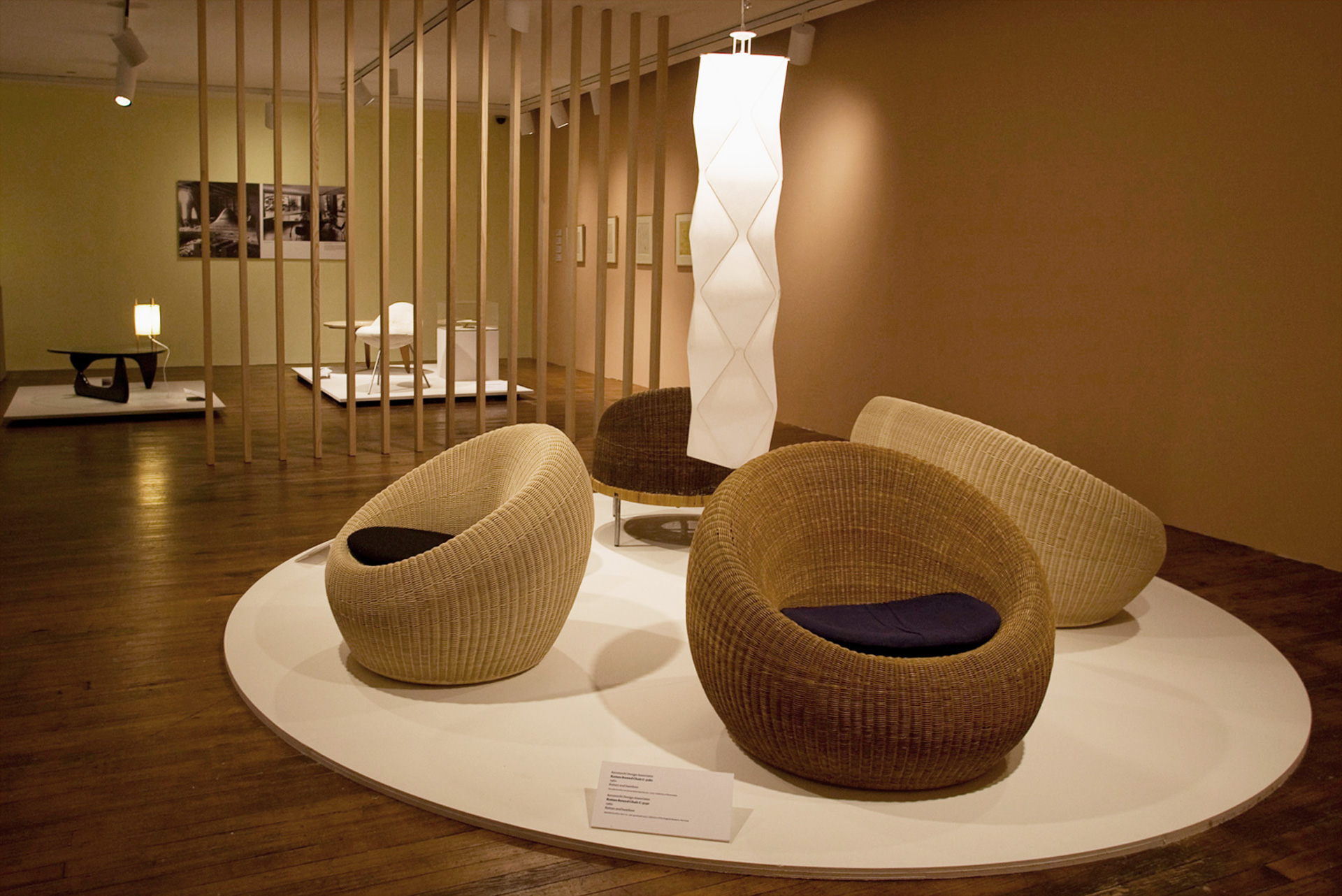 One of his signature works, the Rattan Chair (1958), combines a modern form with comfortable seating, utilizing rattan, a traditional Japanese material. In 1964, it was selected for the permanent collection of the Museum of Modern Art (MoMA) in New York. He also undertook numerous other projects that shaped the landscape of postwar Japan, including furniture for Hotel Okura’s guest rooms, the interiors of Haneda Airport’s VIP lounges, exhibition spaces for international trade fairs, and signage plans for public facilities.