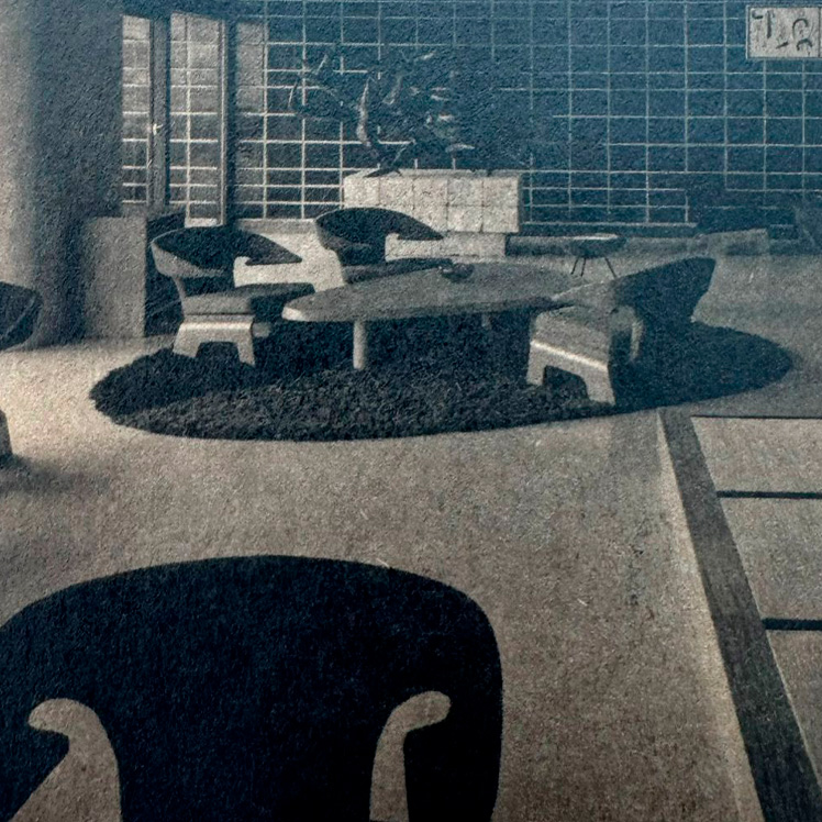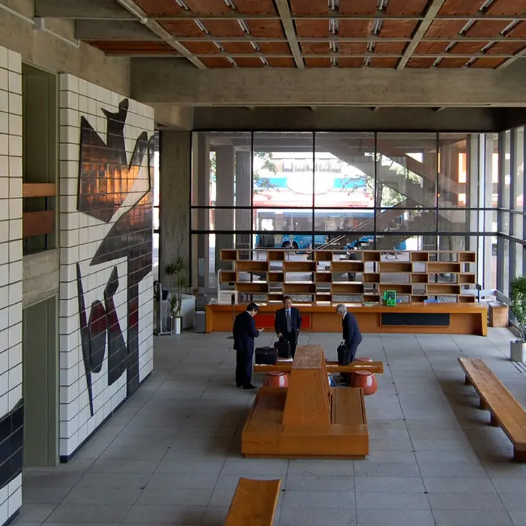 Kenzo Tange worked with furniture manufacturer Tendo Mokko on numerous projects, beginning with the spectator seating for the Ehime Prefectural Civic Center, designed by Tange in 1953. The Kagawa Prefectural Government Building, still considered one of his masterpieces, was Tange's first architectural project, with Isamu Kenmochi responsible for the interior design. Tendo Mokko worked with Tange on numerous projects during Tange's prime, but as Tange's work expanded globally, opportunities for collaboration decreased. However, in 1990, they delivered the largest piece of furniture ever to the Tokyo Metropolitan Government Building, a record that remains in the memory of the present day. Since then, they have supplied furniture to hotels around the country, including Prince Hotels and the Tokyo Dome Hotel. In recent years, they have also reproduced the "T-7304" and have been producing and repairing additional chairs for children, including the one delivered to the Yukari Bunka Kindergarten in 1967. X