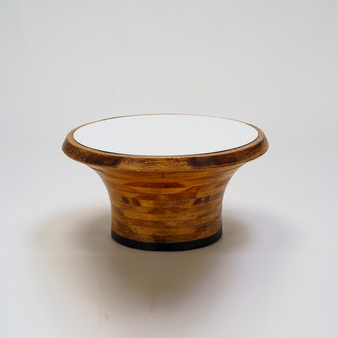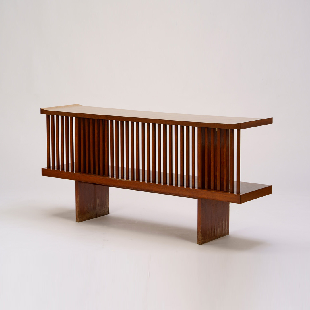 Isamu Kenmochi’s furniture designs complement this architectural vision by introducing functional yet elegant pieces tailored to the building’s spaces. His work reflects the emergence of modern Japanese industrial design in the mid-twentieth century, where craftsmanship, ergonomics, and simplicity played a central role.