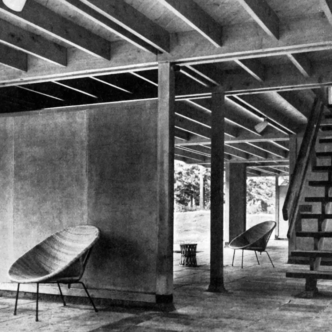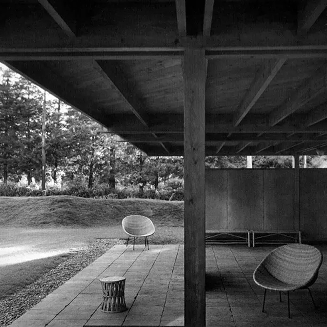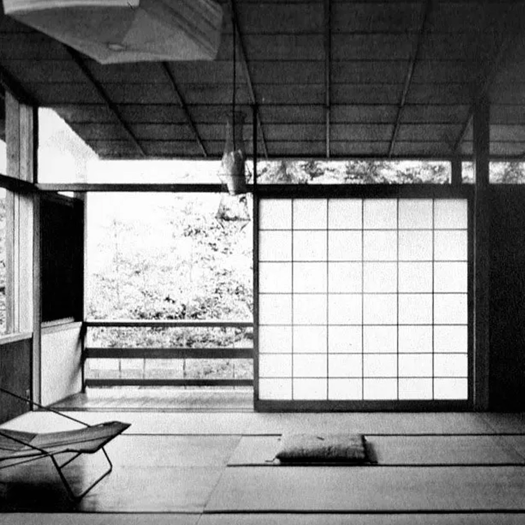 The Seijo House was conceived as a raised structure organized around an abstract grid, reflecting both the influence of international modernism and the modular logic of traditional Japanese architecture. Its open interior plan, tatami-based spatial organization, and carefully framed views toward the surrounding landscape demonstrated Tange’s early interest in creating a dialogue between architecture and nature.