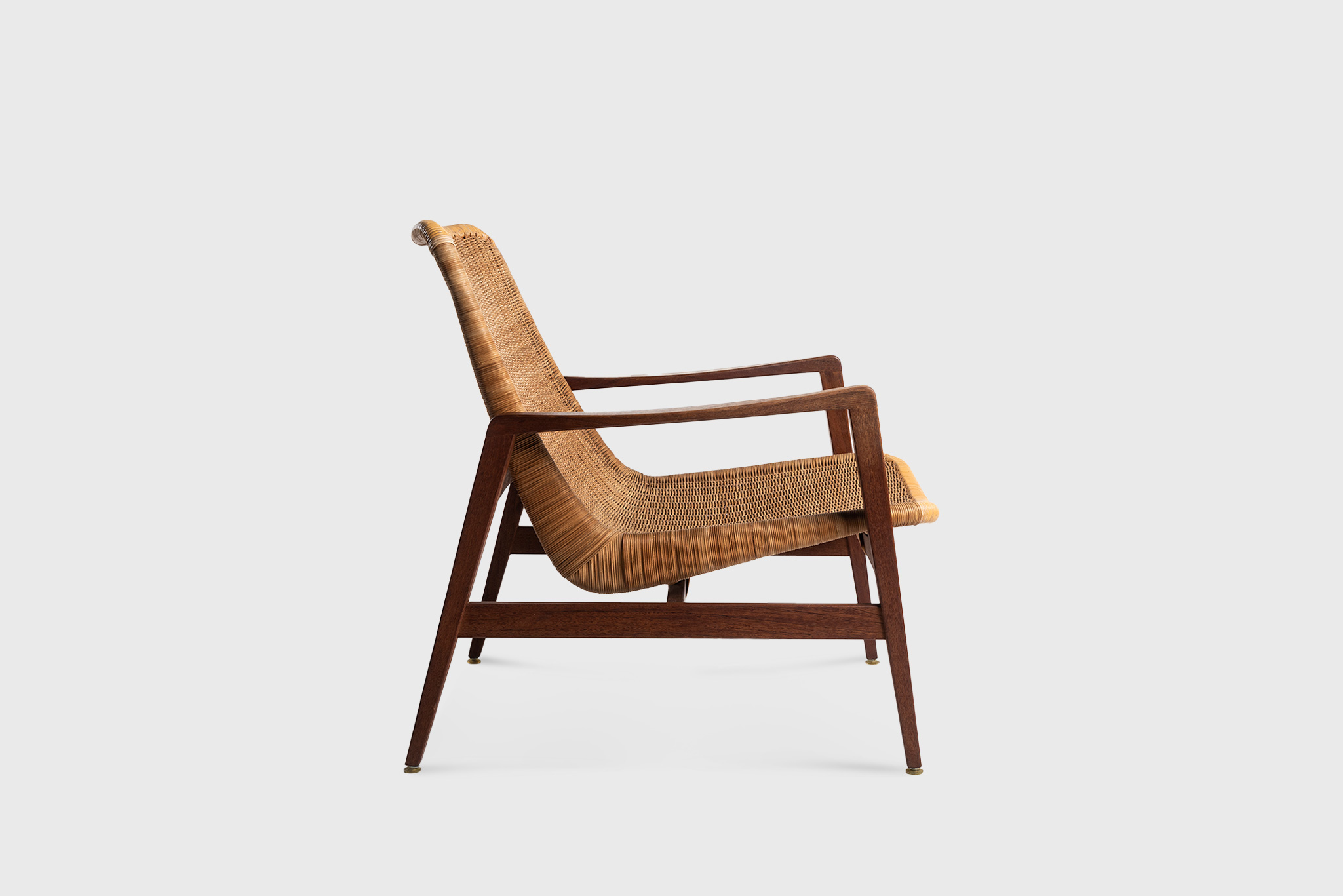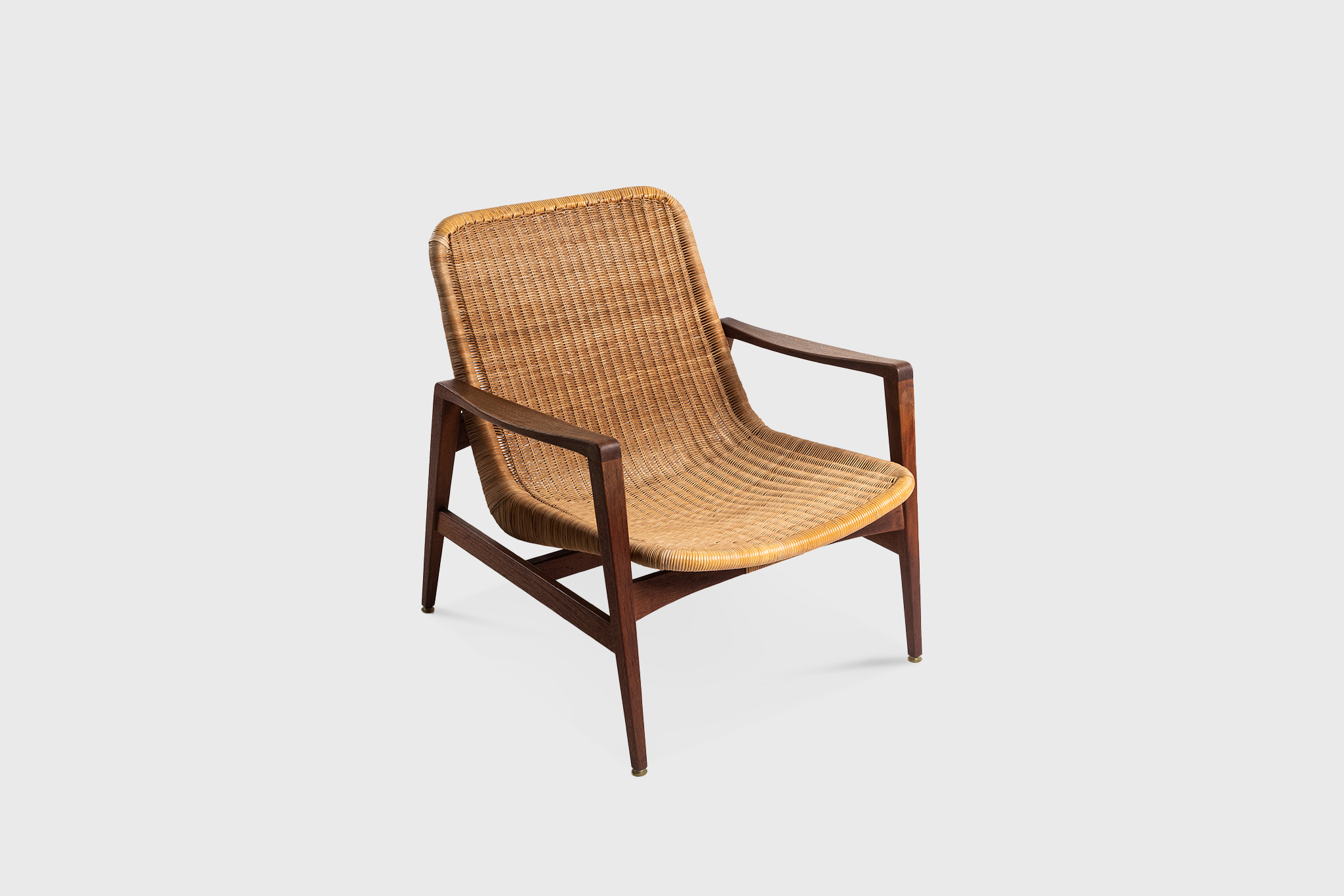 Tendo Mokko’s advanced plywood and woodworking expertise was instrumental in realizing Kenmochi’s vision. Known for its collaborations with leading architects and designers, the company played a crucial role in translating modern design concepts into finely crafted, serially produced furniture. In this armchair, the precision of the wooden structure contrasts elegantly with the organic texture of the rattan, underscoring Tendo Mokko’s technical mastery.