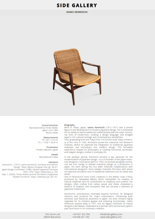 This model occupies an important position within Kenmochi’s body of work, illustrating his effort to develop a distinctly Japanese modern furniture language—one that embraces international modernism while remaining deeply rooted in local materials, craftsmanship, and modes of living.