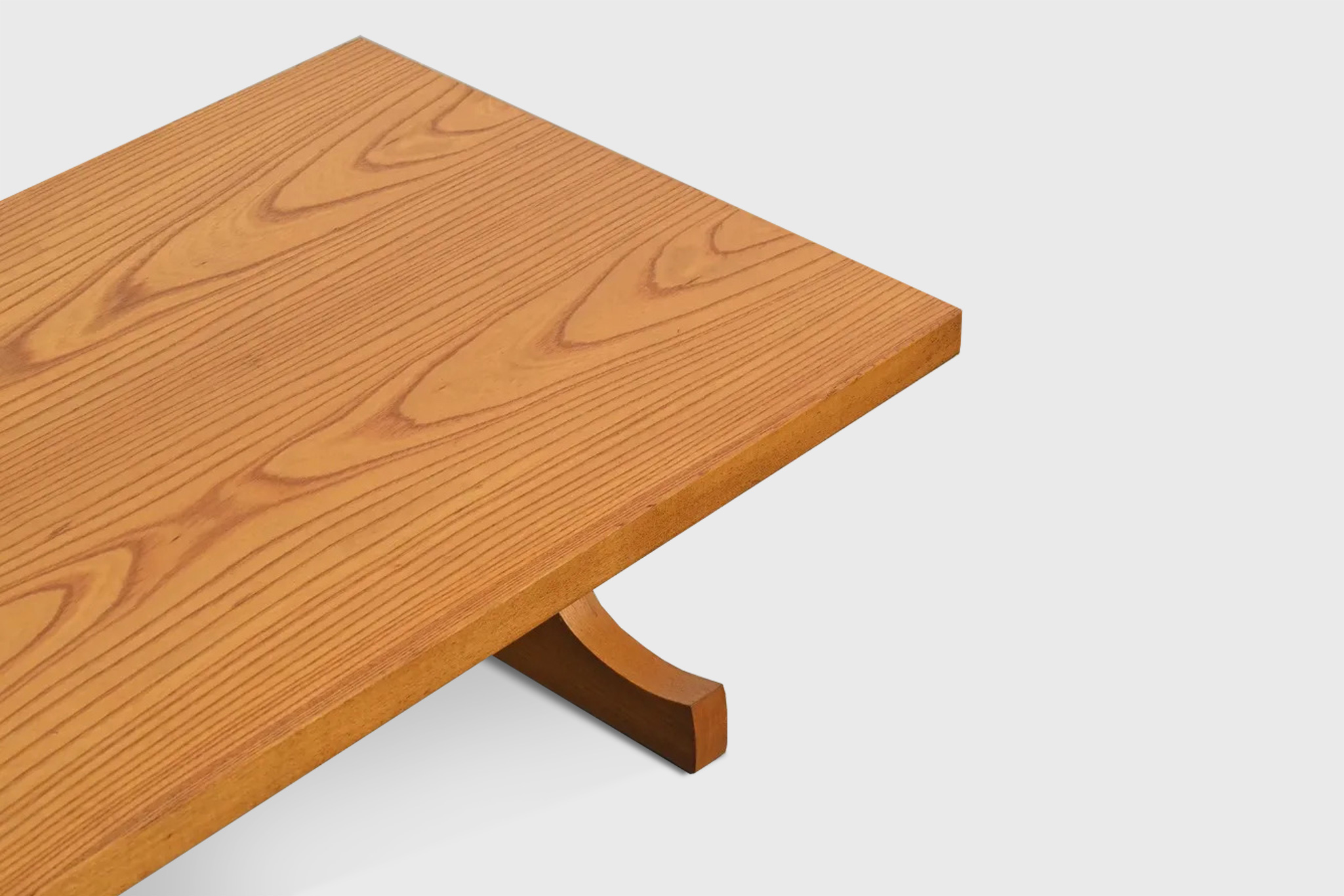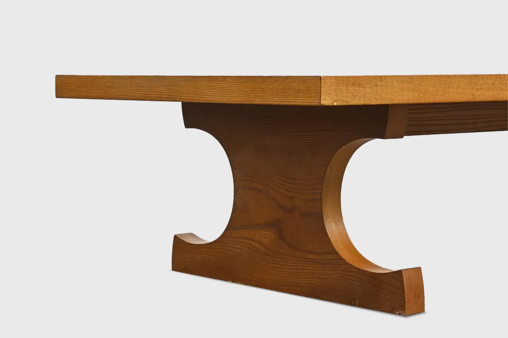 In the quiet elegance of 1960s Japan, a piece of furniture emerged that would quietly redefine modern design. The Fumi Table, conceived by the visionary designer Isamu Kenmochi, embodies the delicate balance between function and art. Crafted from warm, resilient Keyaki wood, the table’s rectangular top rests upon sculpted side supports that seem to float, a testament to Kenmochi’s mastery of form and proportion. Every curve, every line, carries the subtle influence of Japanese aesthetics—simplicity, harmony, and a profound respect for natural materials. Unlike the loud, ornate pieces of previous decades, the Fumi Table whispers its presence, inviting the viewer to appreciate the interplay of wood, space, and light. Placed in a sunlit living room or the serene interior of the Atami Garden Hotel, it becomes more than a piece of furniture.