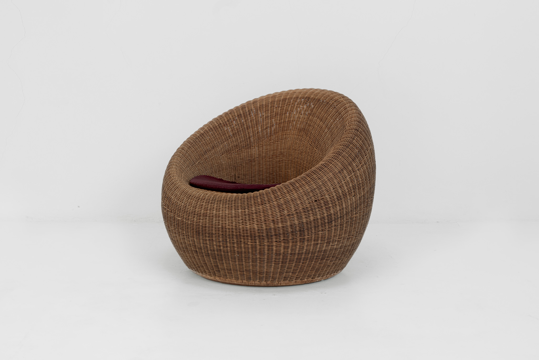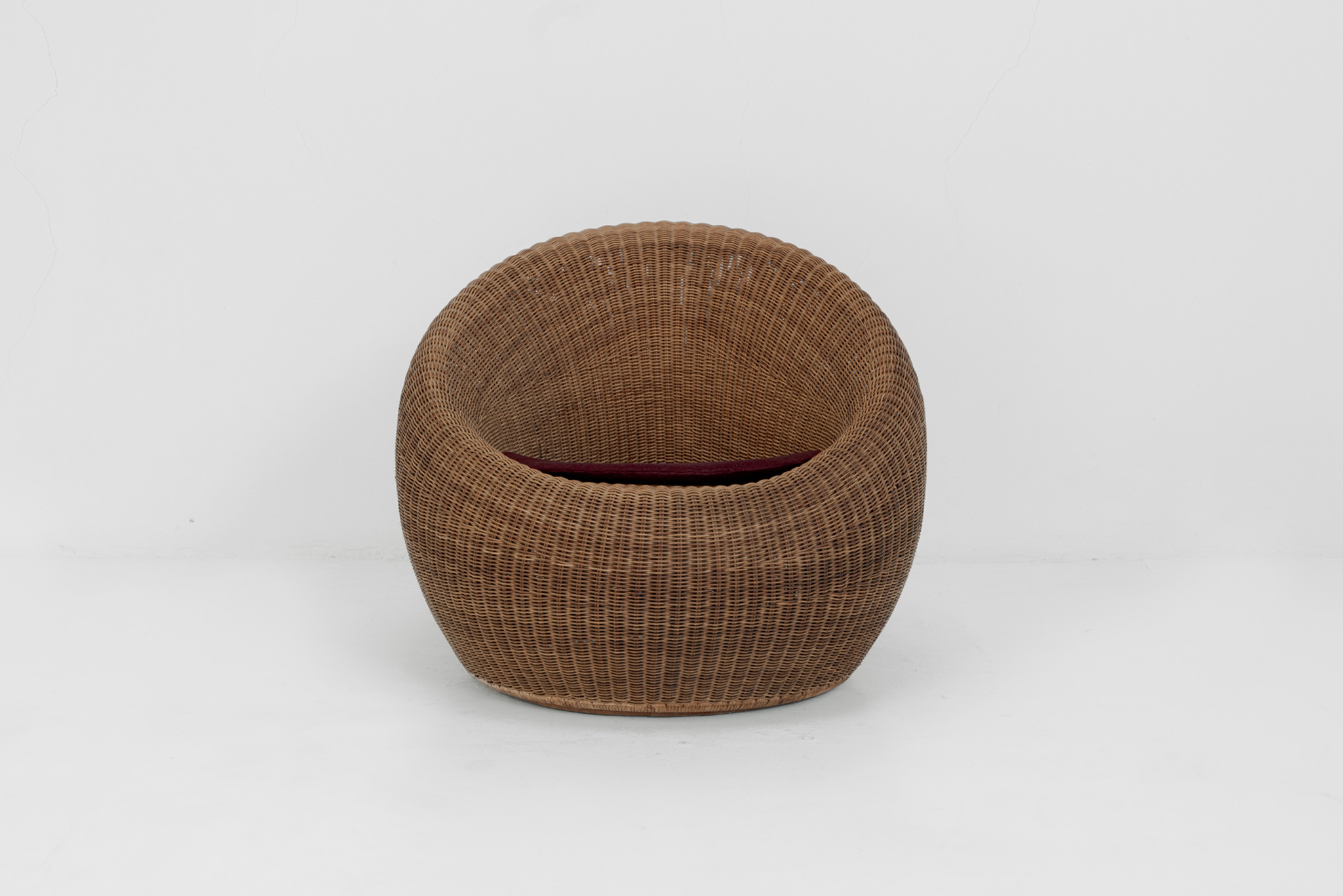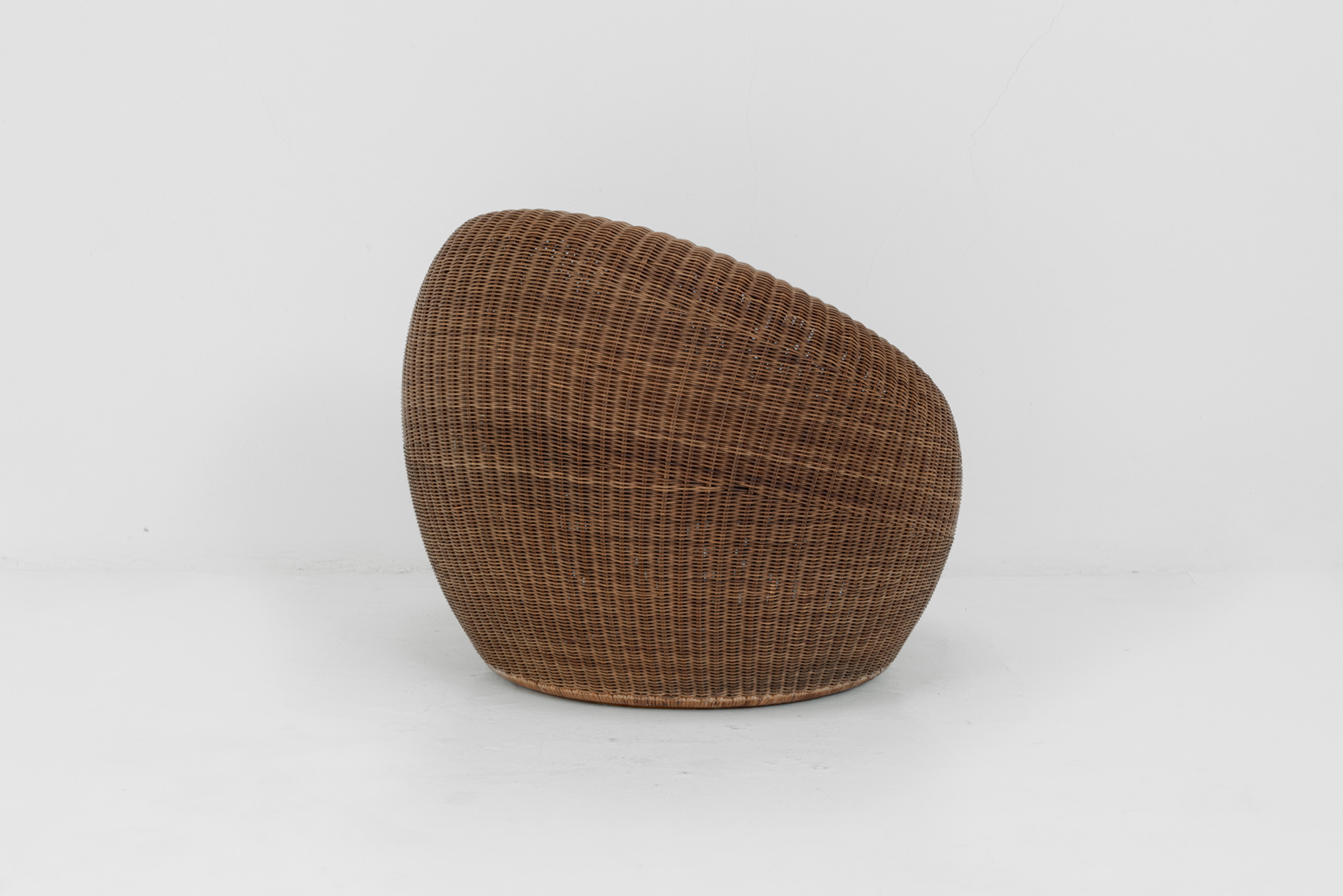 Designed for a hotel lounge, this chair is regarded as one of masterpieces of Isamu Kenmochi. Choosing rattan as a flexible material to make any form, he completed this chair as a voluminous and beautifully curved one expressing modernized Japanese style. Selected as a permanent collection of the Museum of Modern Art in New York, recommended by the Marcel Breuer in 1964. Also recognized as G mark design furniture.