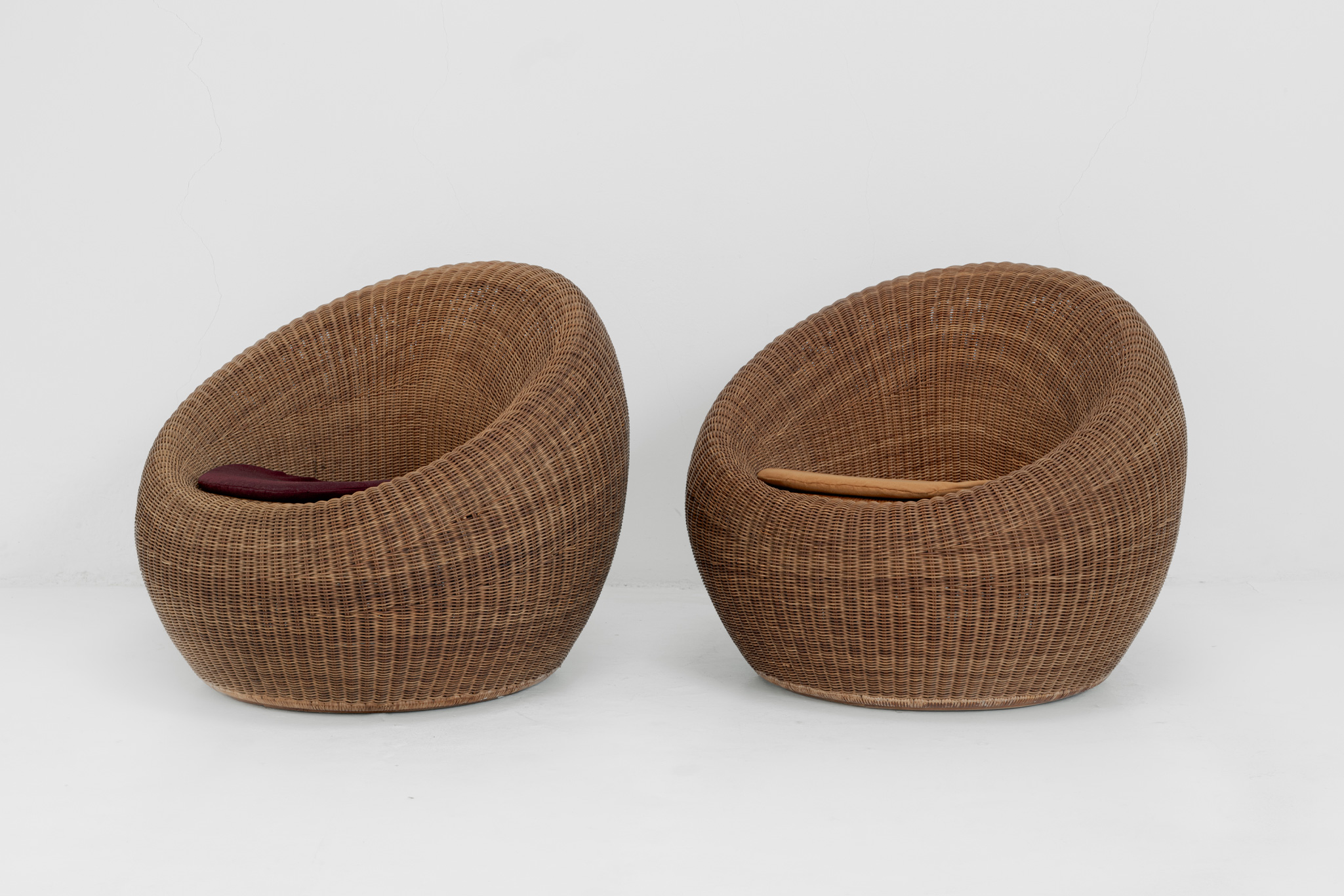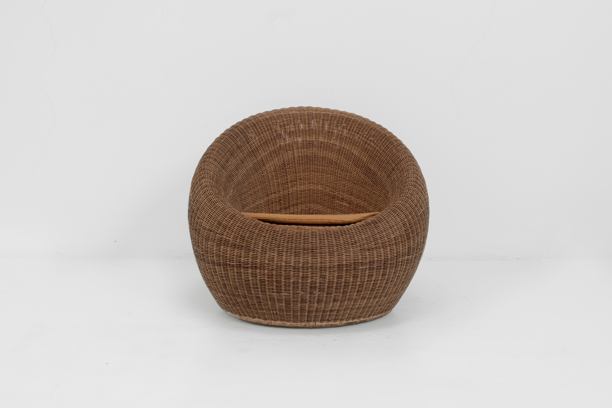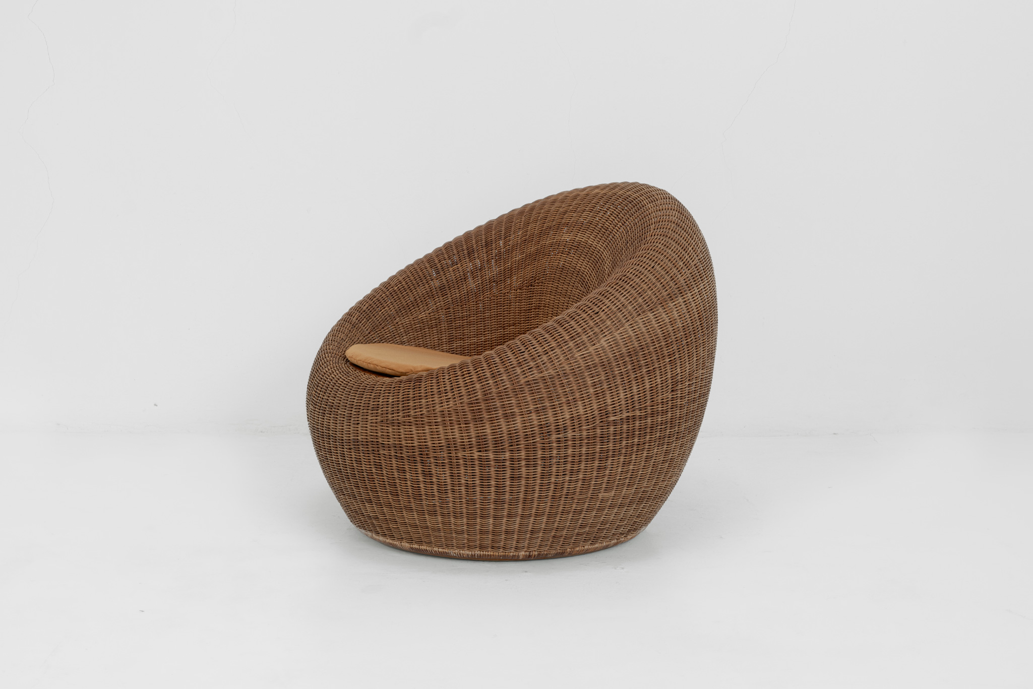 Designed for a hotel lounge, this chair is regarded as one of masterpieces of Isamu Kenmochi. Choosing rattan as a flexible material to make any form, he completed this chair as a voluminous and beautifully curved one expressing modernized Japanese style. Selected as a permanent collection of the Museum of Modern Art in New York, recommended by the Marcel Breuer in 1964. Also recognized as G mark design furniture.