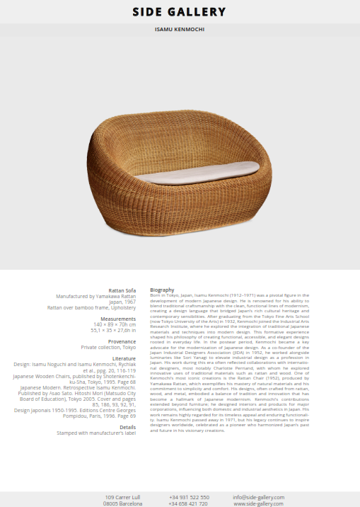 Today, many of Kenmochi’s works are preserved in museum collections, including the Museum of Modern Art (MoMA) in New York. His designs, such as the Rattan Chair, remain timeless examples of how Japanese sensibilities can be expressed in modern form.