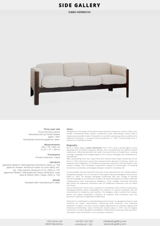 Kenmochi Isamu’s life embodies both the challenges and possibilities of design in postwar Japan. By bridging tradition and modernity, craft and industry, local and global, he helped shape the foundation of Japanese modern design. His ideas, born out of dialogue with both Japanese heritage and international movements, continue to resonate, affirming his place as one of the central figures of twentieth-century design.