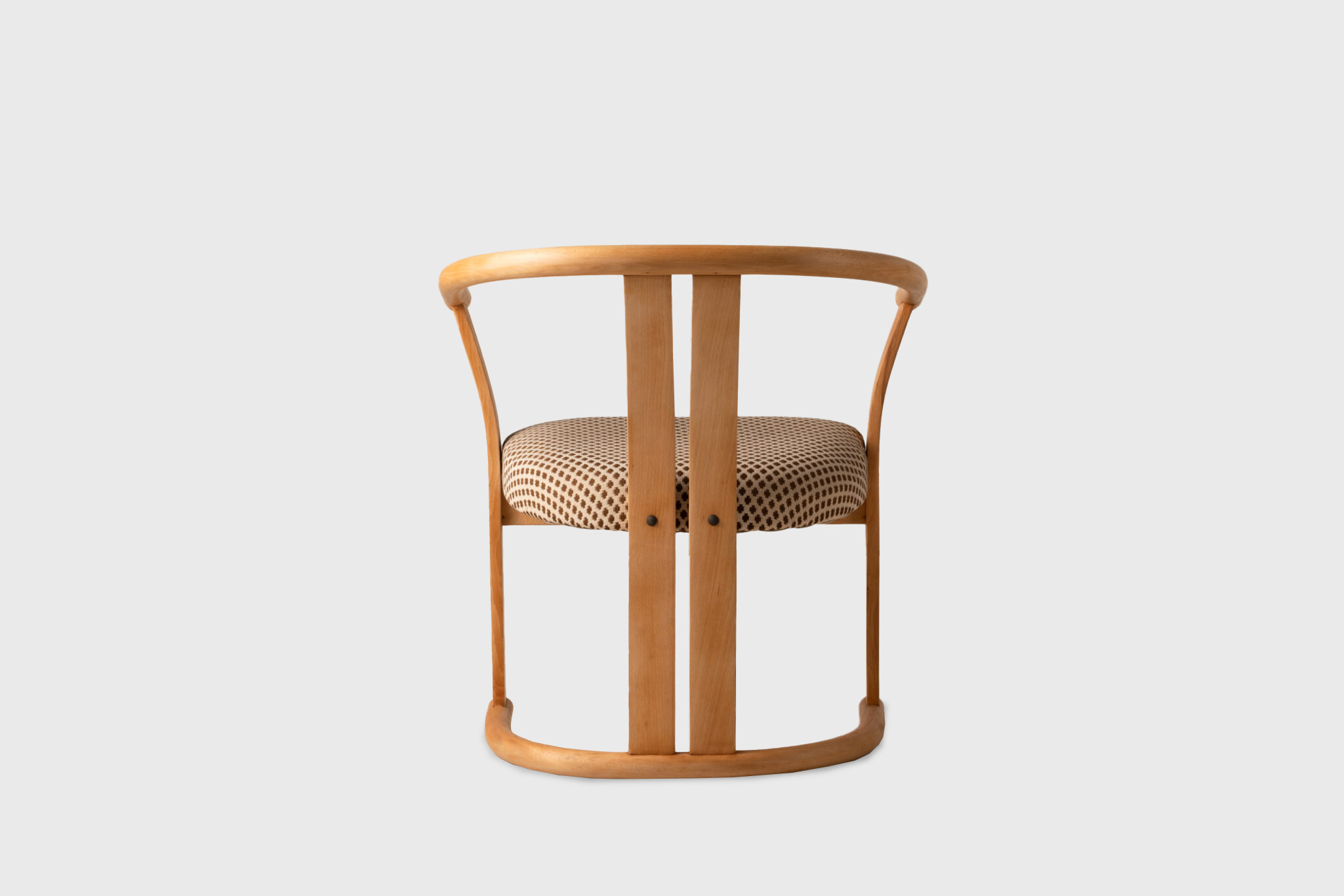 Kenmochi’s relationship with Tendo Mokko began during the wartime National Crafts Training Institute. While providing instruction in both design and technique for furniture production using molded plywood, he also collaborated with architects to design a variety of products, creating many of Japan’s most famous postwar interiors. His diverse work spanned a wide range of fields, including the Yakult lactic acid bacteria drink, a design beloved worldwide to this day.