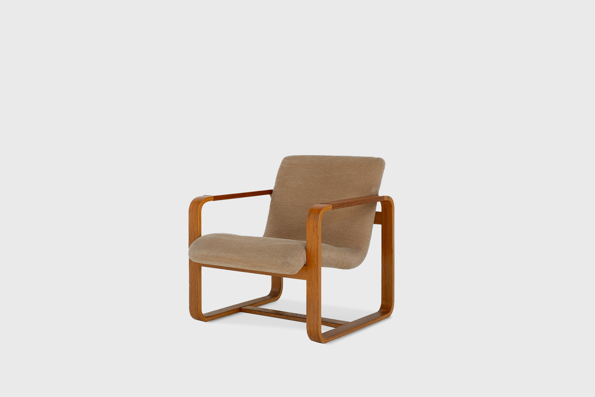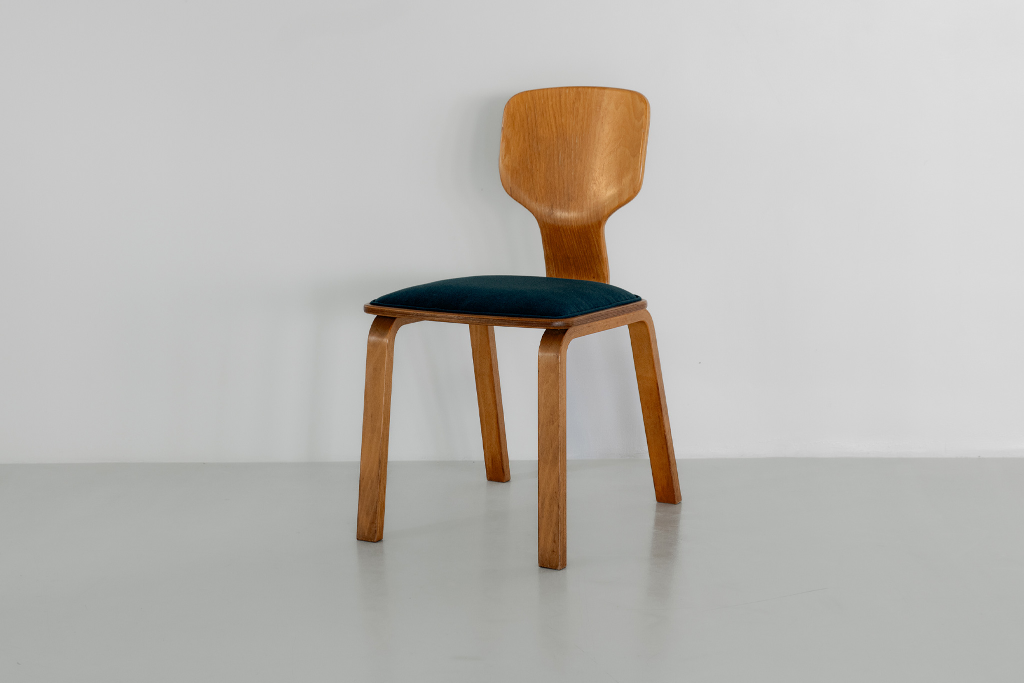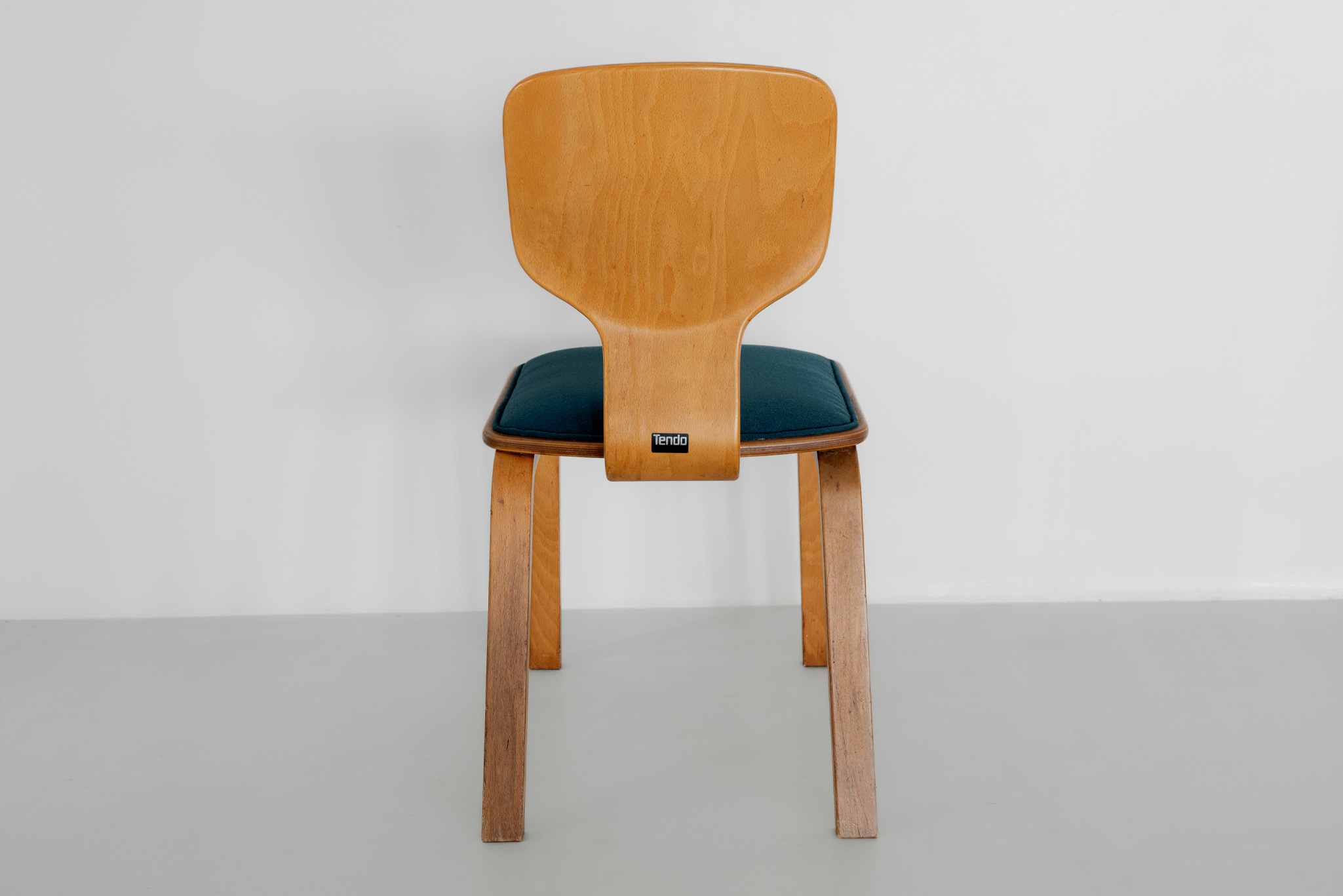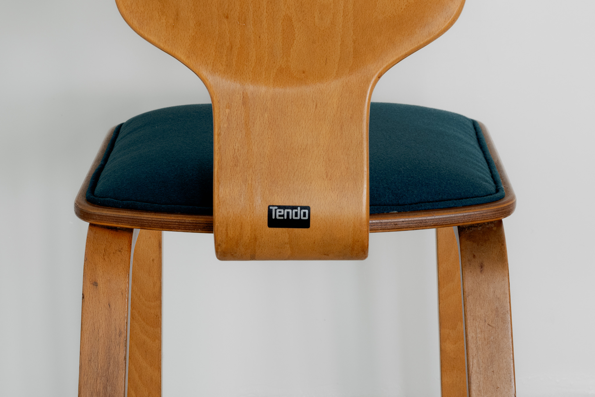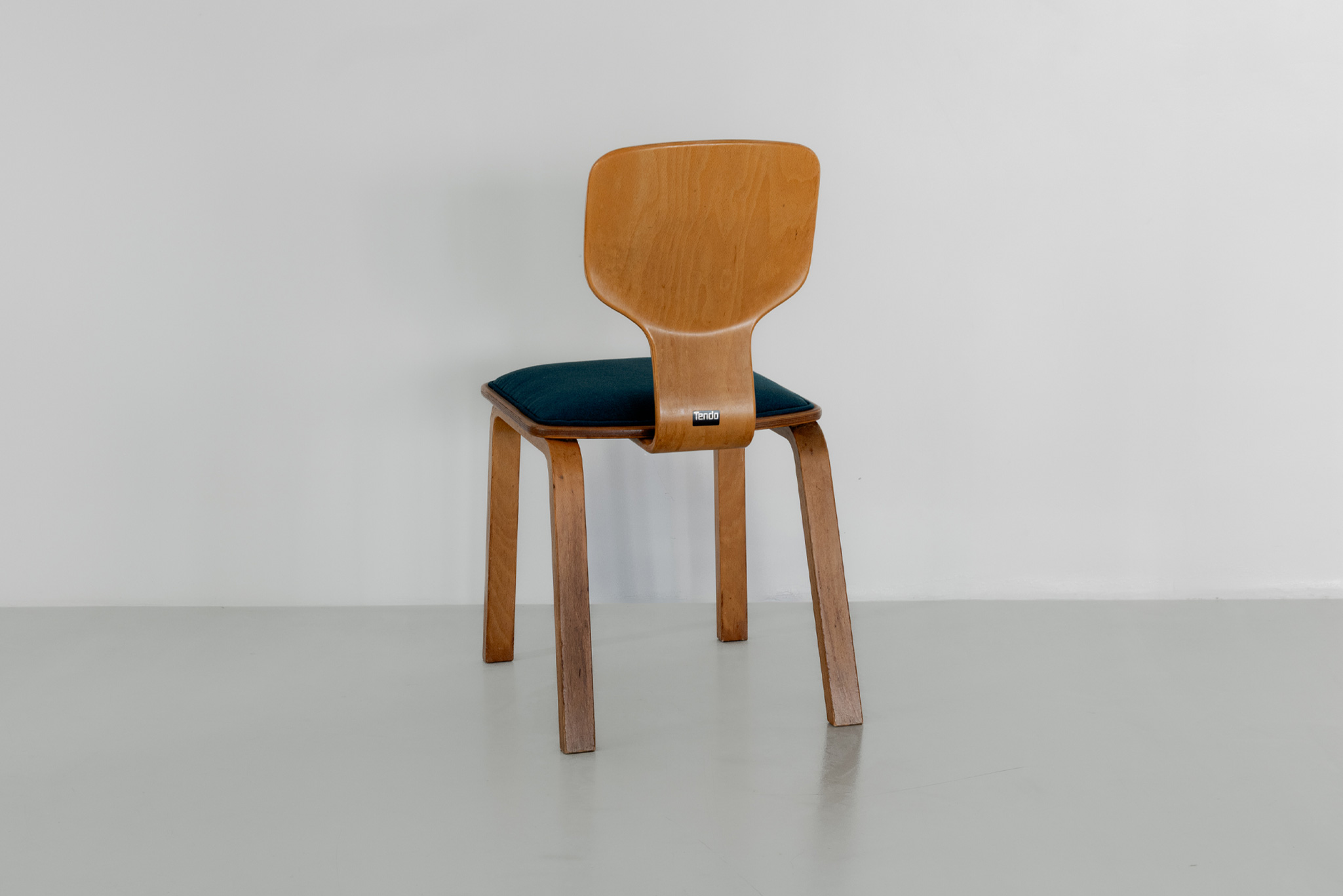Designed by Katsuo Matsumura and produced by Tendo Mokko in the 1970s, the T-5110 chair exemplifies postwar Japanese modernism. It fuses minimalist functionalism with Japanese sensibilities, emphasizing human scale, craftsmanship, and material integrity. With its bentwood back and molded plywood seat, the design negotiates tradition and modernity, accommodating both tatami-based living and contemporary interiors. This set of four, now discontinued, remains a rare and highly collectible example of Japan’s modernist design legacy.
