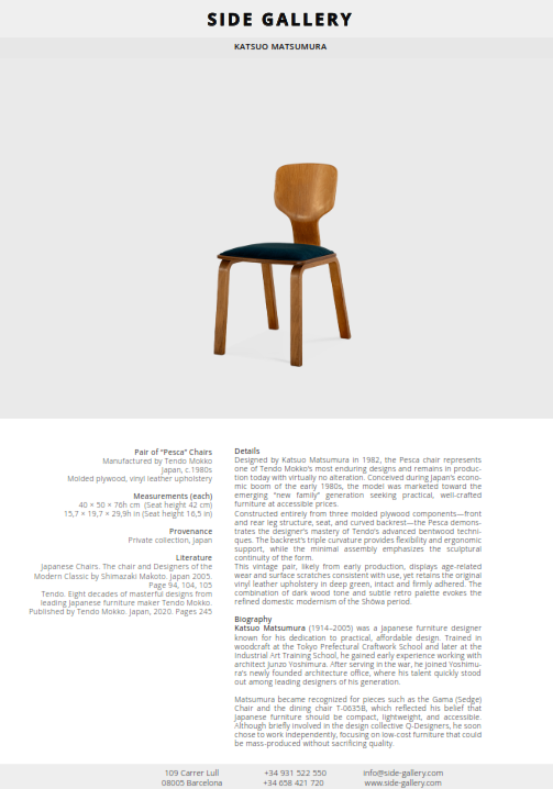 Katsuo Matsumura 1982 Pair of Chairs Model “Pesca” Beech Model Plywood | Side Gallery