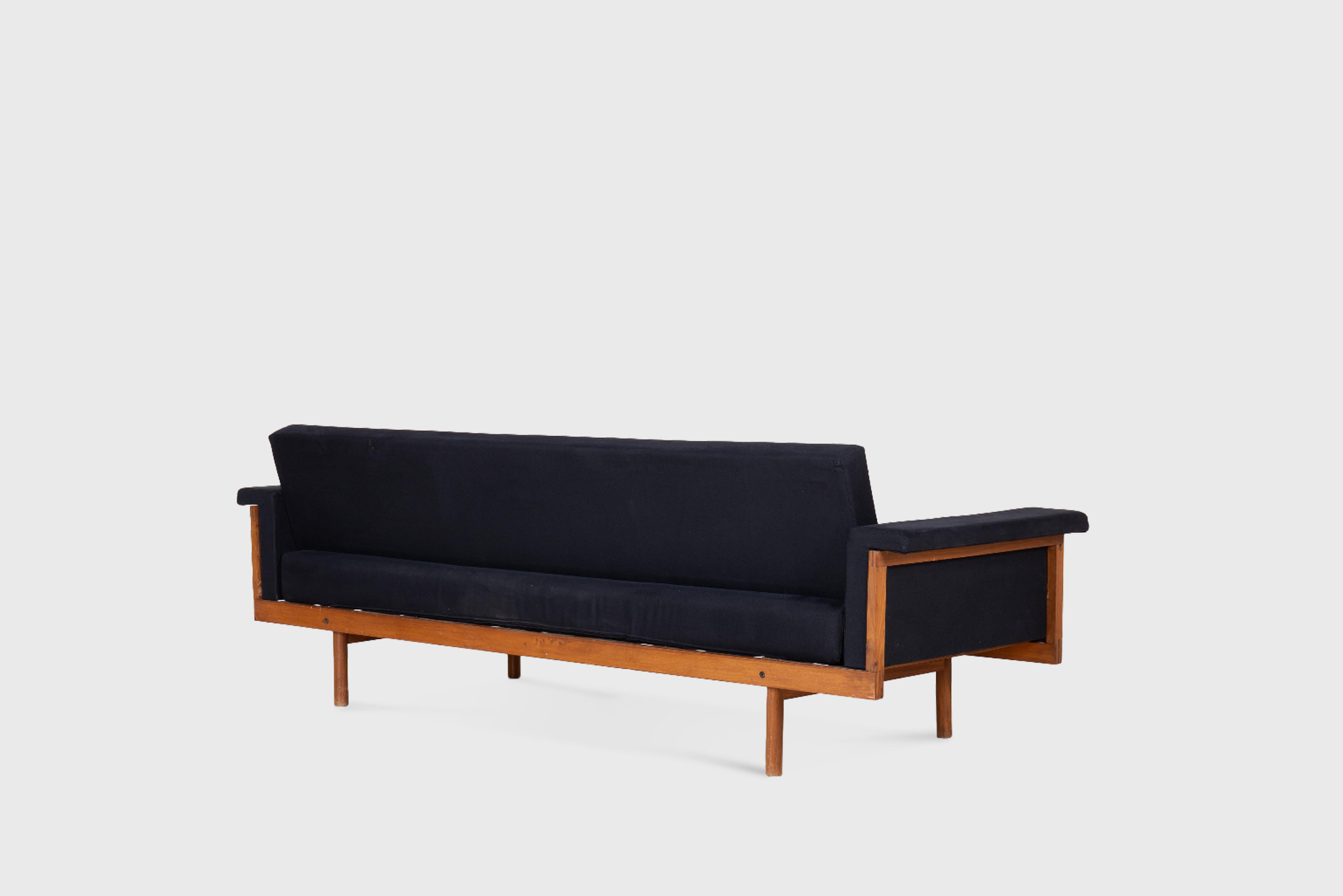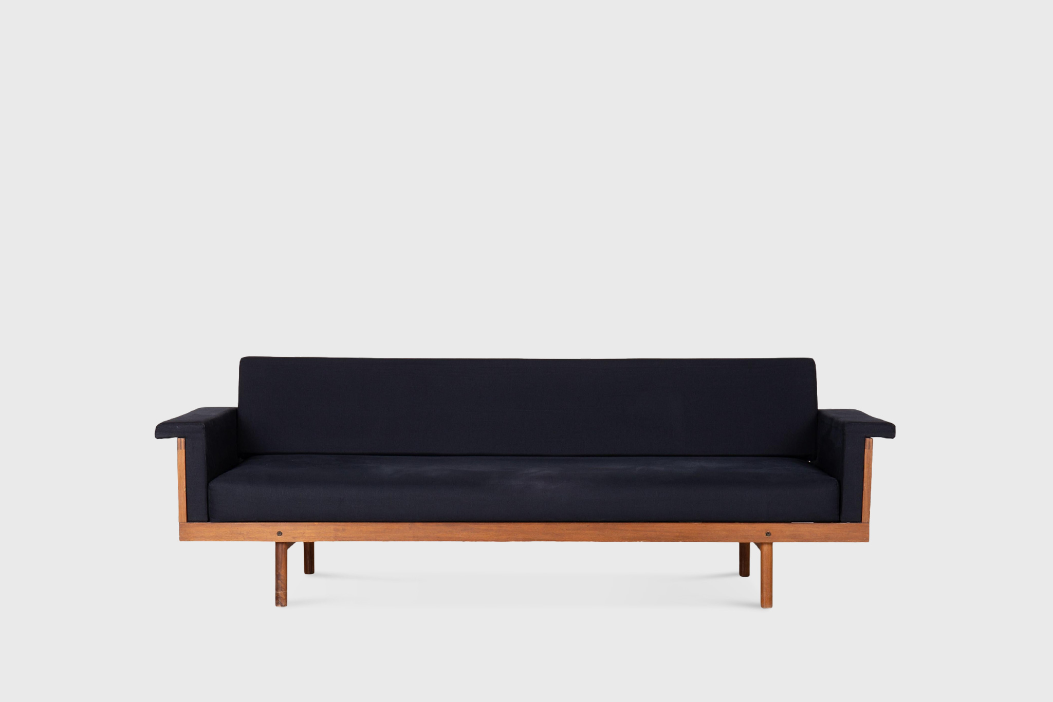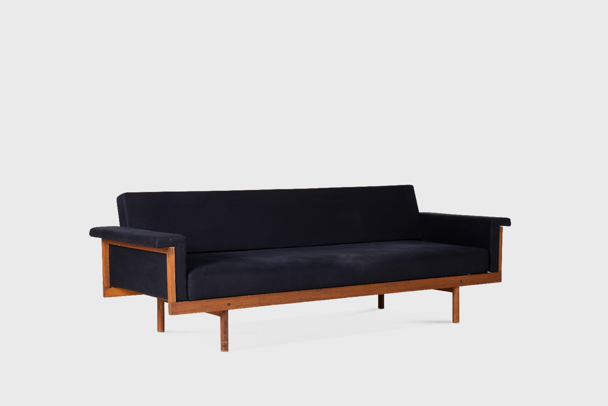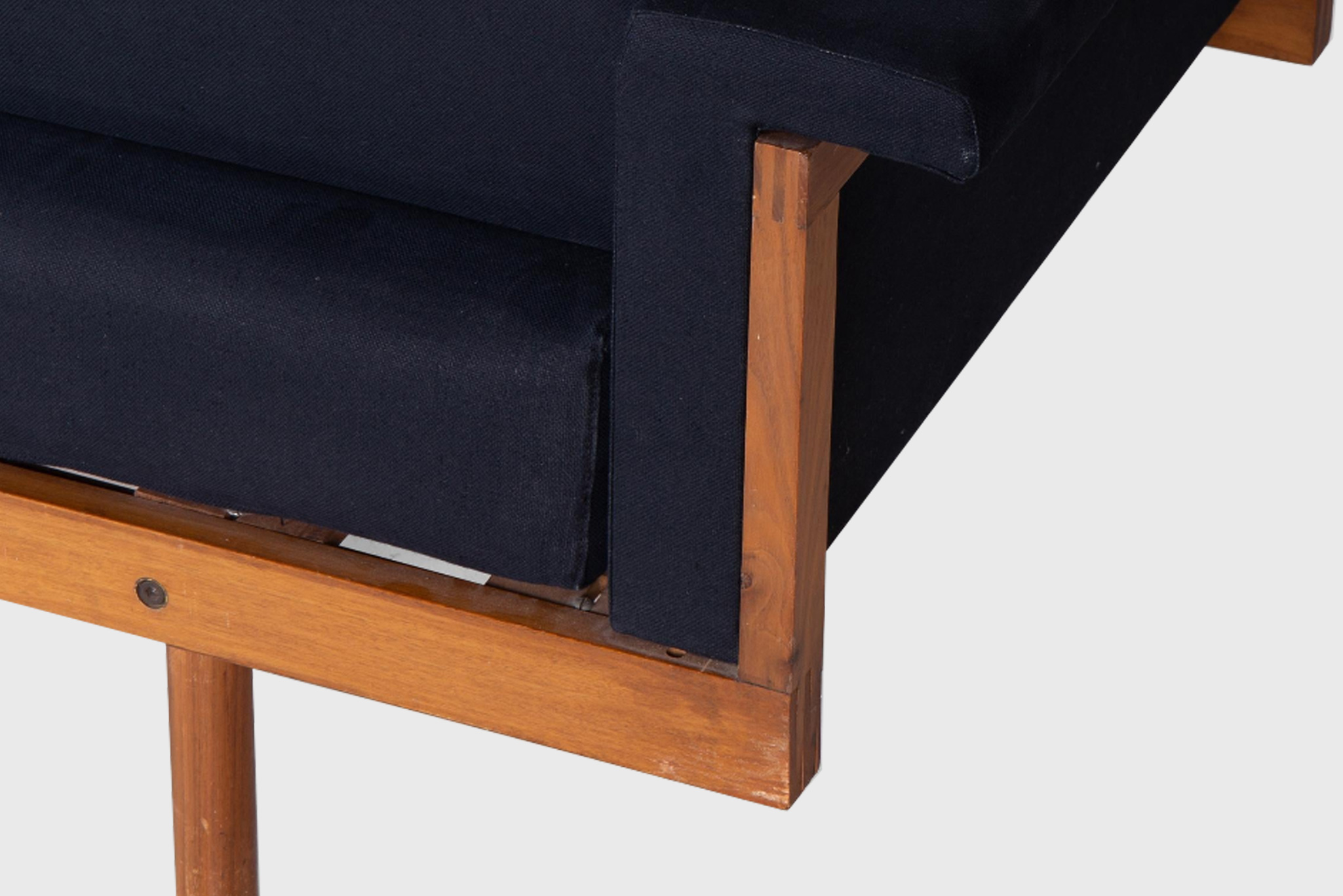 The sofa was conceived as both an architectural and emotional object. Named after Naeko, who would later become Takahama’s wife, the design reflects an intimate, human-centered approach to modernism. Its low, elongated profile and carefully proportioned cherrywood frame create a sense of calm horizontality, while the original upholstery softens the rigor of the structure, balancing rational form with tactile warmth.