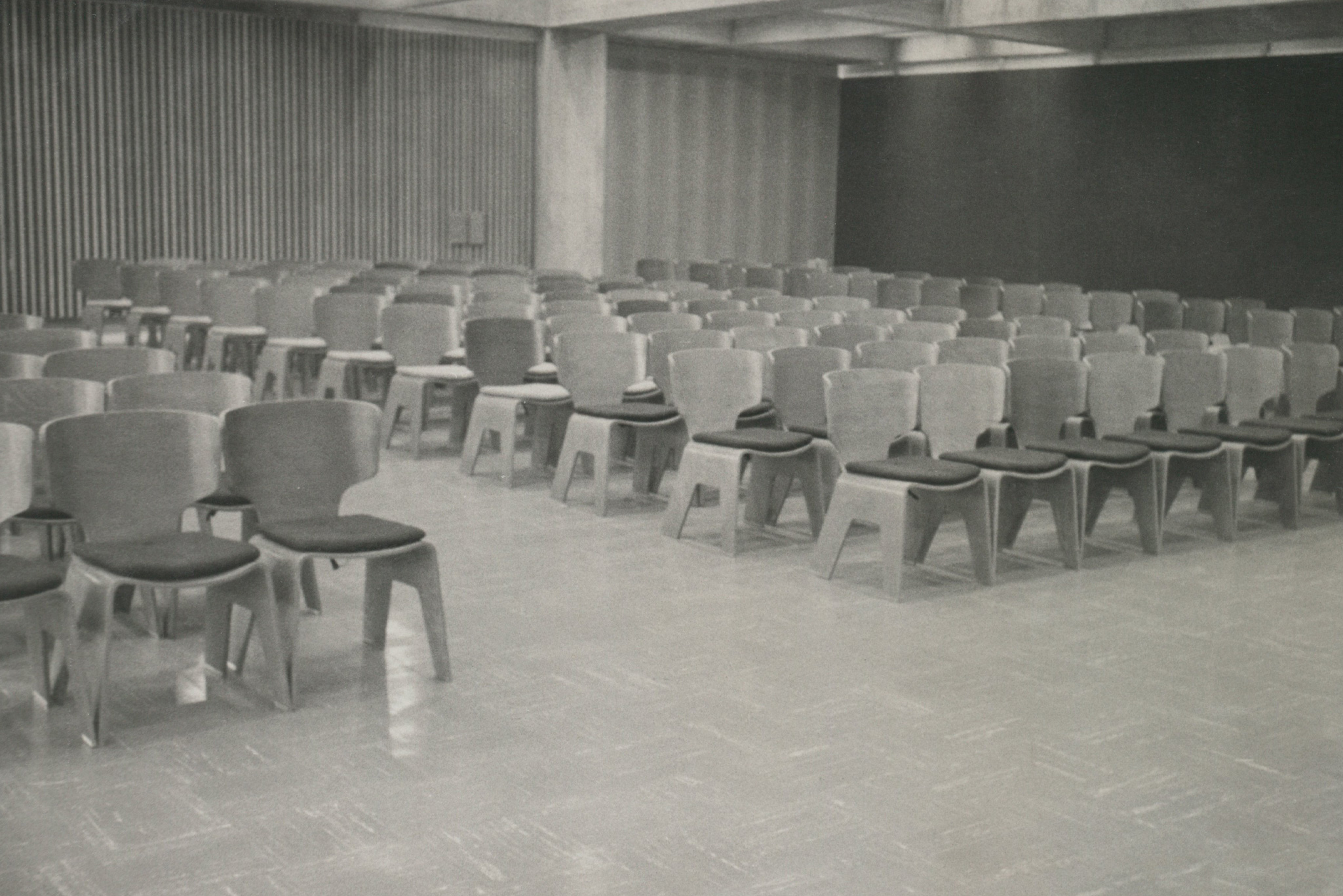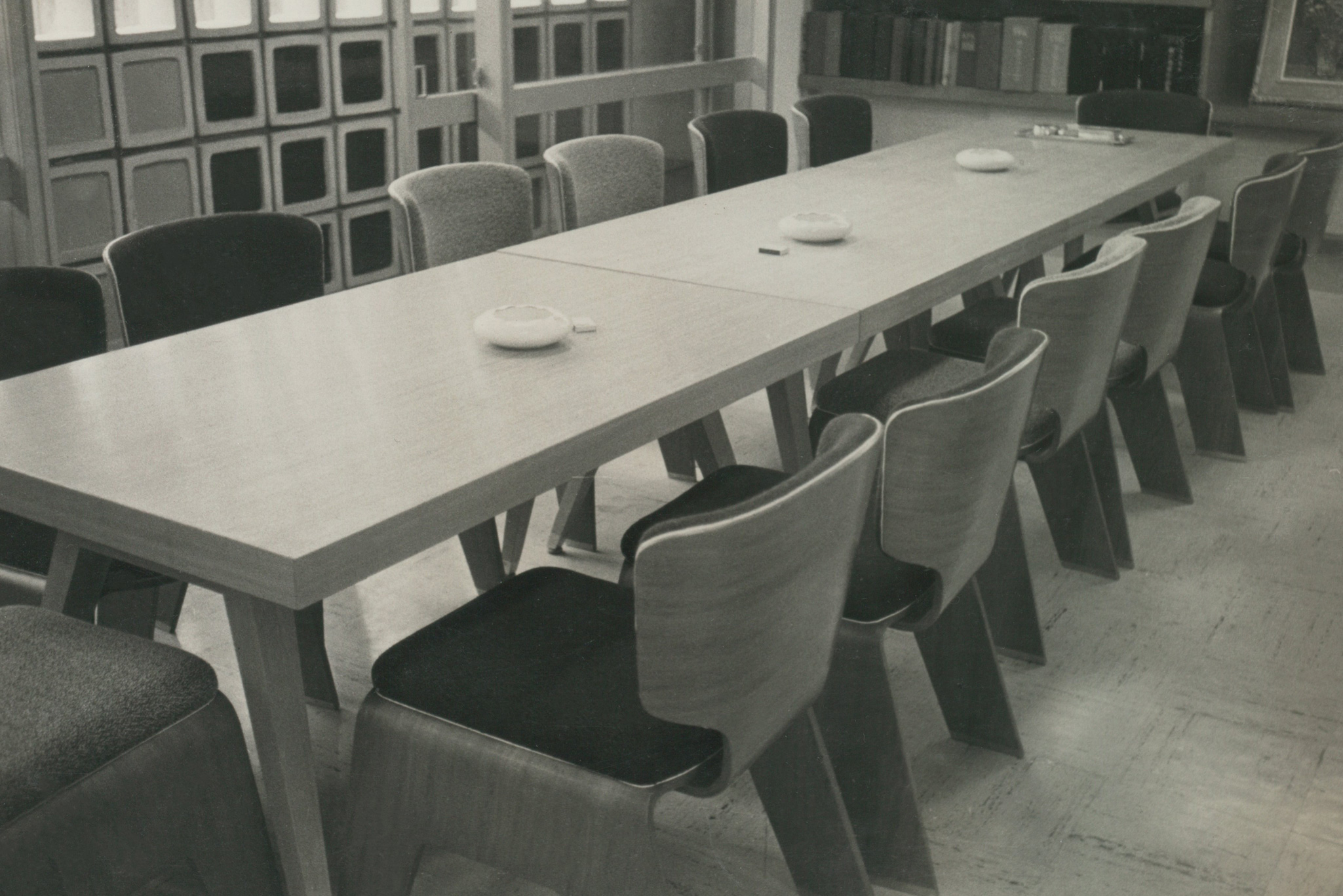 Kenzo Tange worked with furniture manufacturer Tendo Mokko on numerous projects, beginning with the spectator seating for the Ehime Prefectural Civic Center, designed by Tange in 1953. The Kagawa Prefectural Government Building, still considered one of his masterpieces, was Tange's first architectural project, with Isamu Kenmochi responsible for the interior design. Tendo Mokko worked with Tange on numerous projects during Tange's prime, but as Tange's work expanded globally, opportunities for collaboration decreased. However, in 1990, they delivered the largest piece of furniture ever to the Tokyo Metropolitan Government Building, a record that remains in the memory of the present day. Since then, they have supplied furniture to hotels around the country, including Prince Hotels and the Tokyo Dome Hotel. In recent years, they have also reproduced the "T-7304" and have been producing and repairing additional chairs for children, including the one delivered to the Yukari Bunka Kindergarten in 1967. X