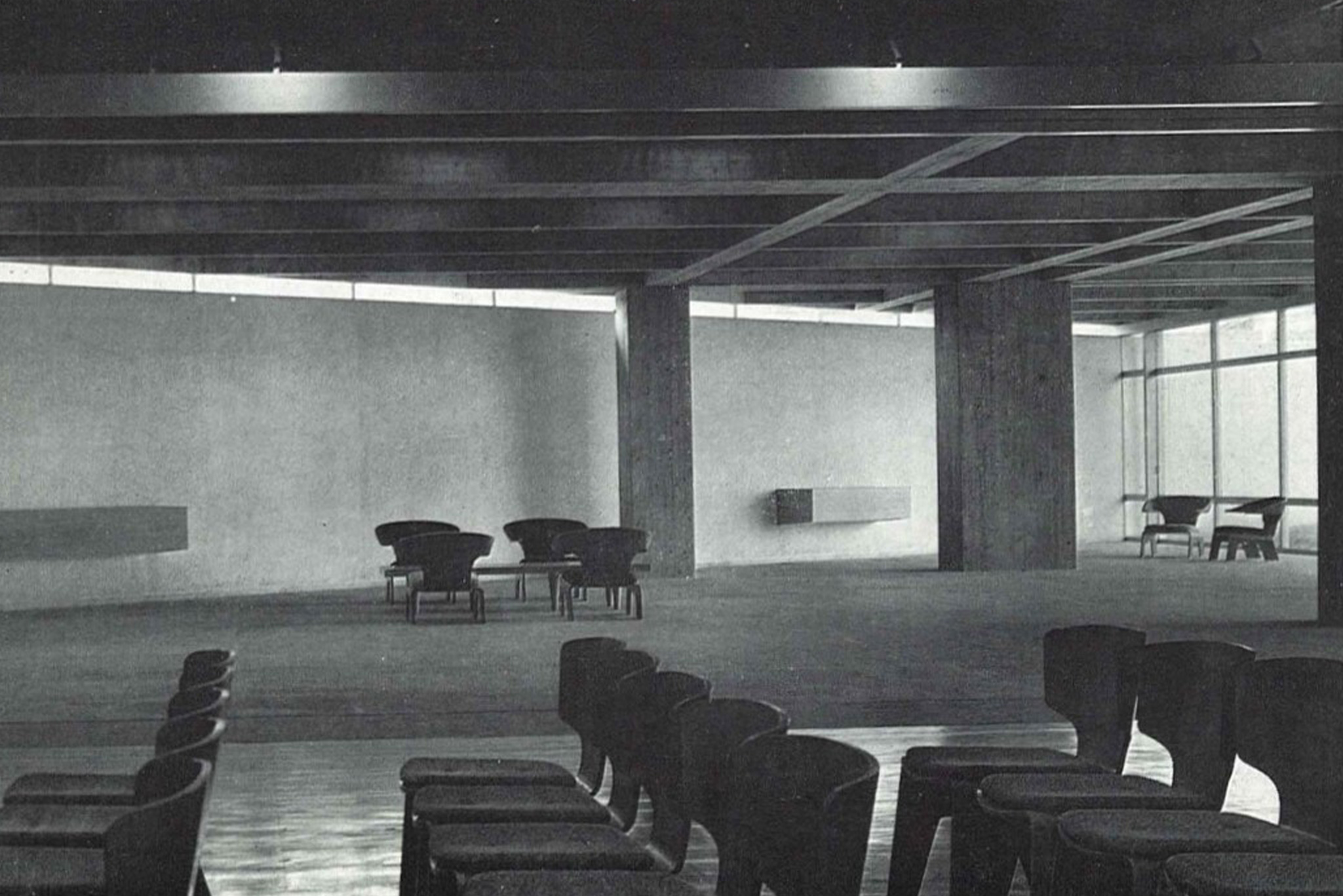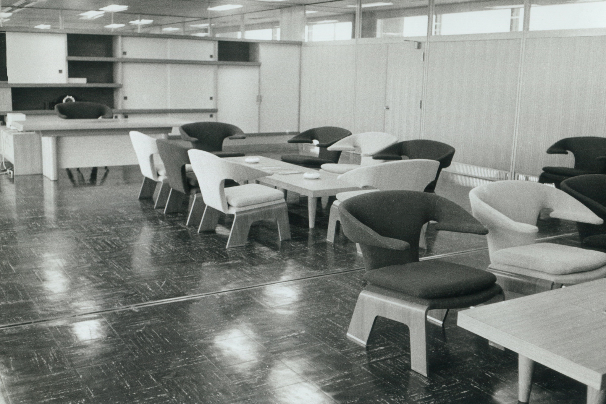Kenzo Tange worked with furniture manufacturer Tendo Mokko on numerous projects, beginning with the spectator seating for the Ehime Prefectural Civic Center, designed by Tange in 1953. The Kagawa Prefectural Government Building, still considered one of his masterpieces, was Tange's first architectural project, with Isamu Kenmochi responsible for the interior design. Tendo Mokko worked with Tange on numerous projects during Tange's prime, but as Tange's work expanded globally, opportunities for collaboration decreased. However, in 1990, they delivered the largest piece of furniture ever to the Tokyo Metropolitan Government Building, a record that remains in the memory of the present day. Since then, they have supplied furniture to hotels around the country, including Prince Hotels and the Tokyo Dome Hotel. In recent years, they have also reproduced the "T-7304" and have been producing and repairing additional chairs for children, including the one delivered to the Yukari Bunka Kindergarten in 1967. X