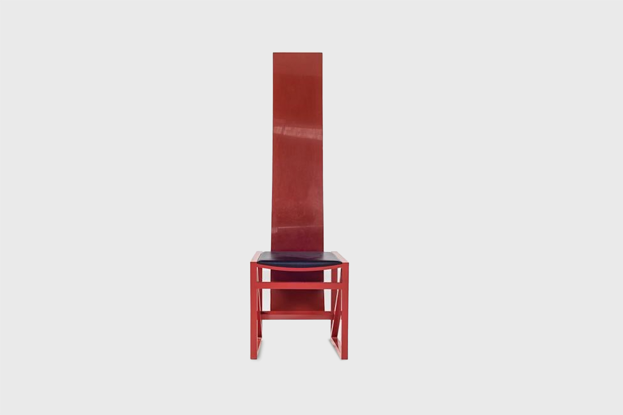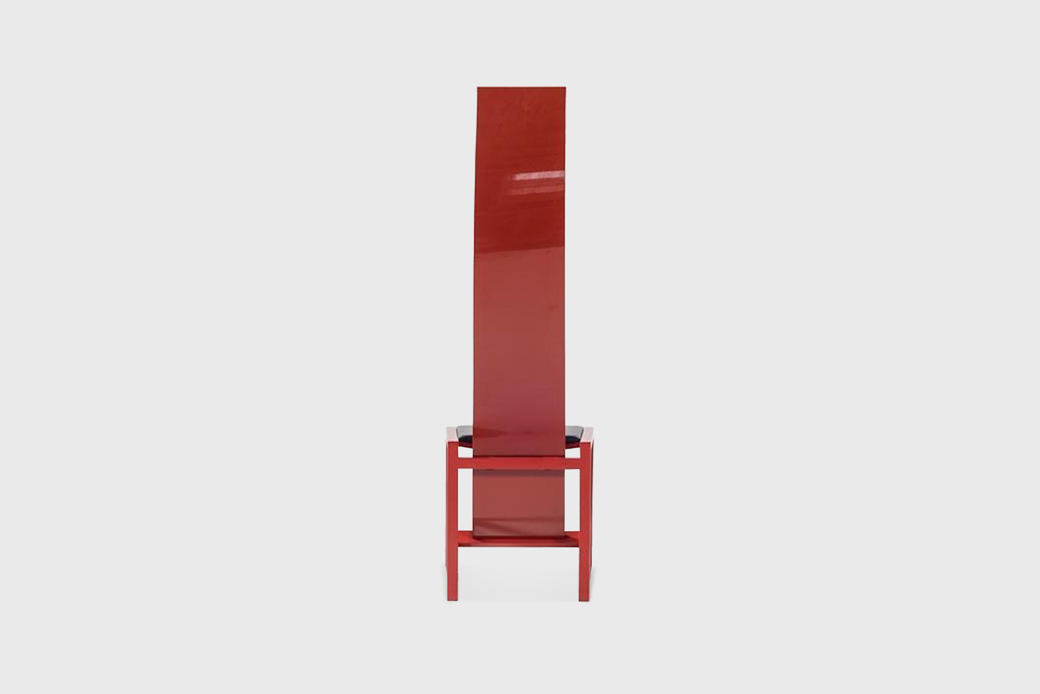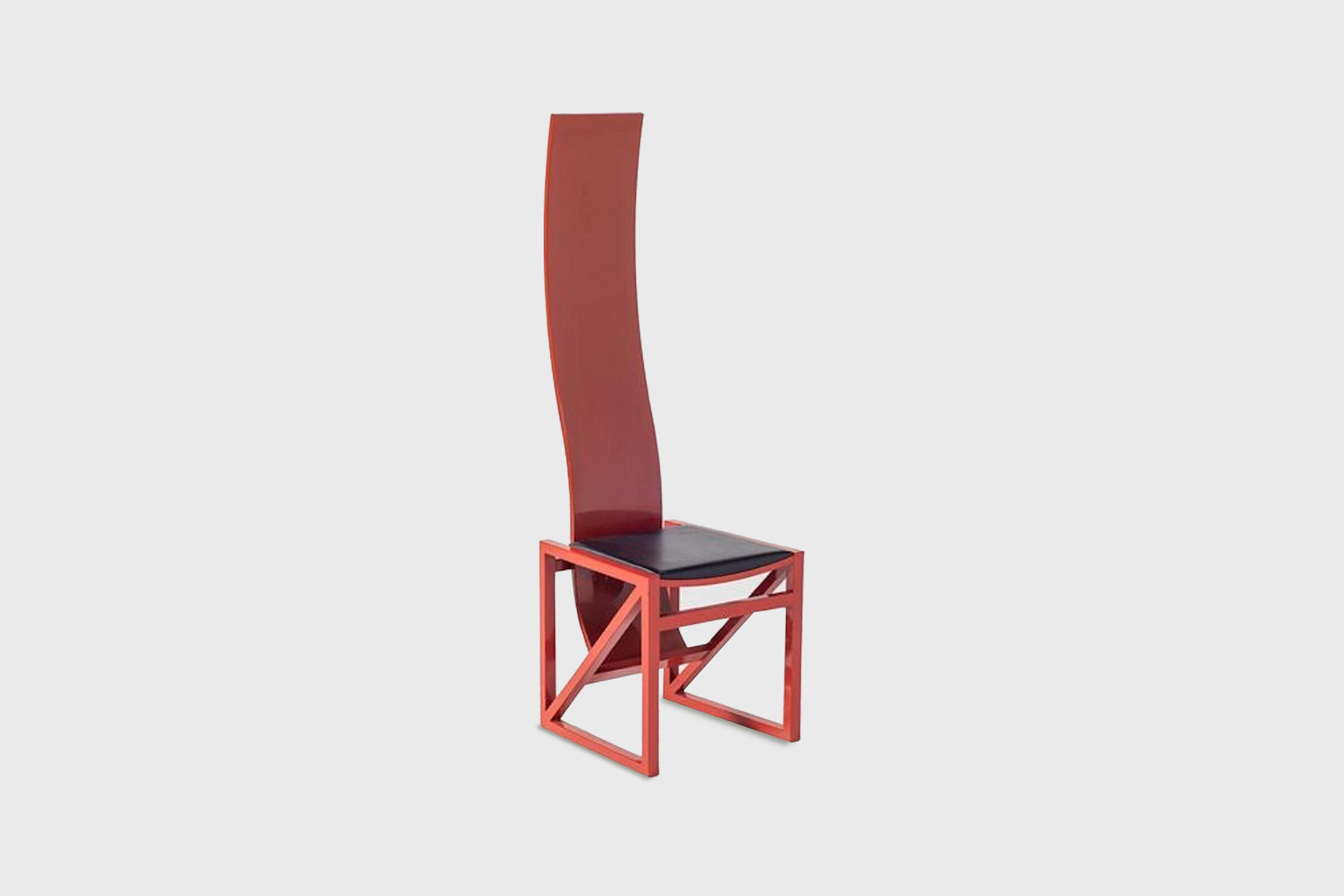 The Edo Chair is a striking example of postmodern Japanese furniture design attributed to architect Kisho Kurokawa. Defined by its soaring, curved backrest and bold geometric base, the chair reflects a unique interplay between sculptural form and structural logic. Its minimal yet dramatic silhouette draws inspiration from both traditional Japanese aesthetics and architectural abstraction.