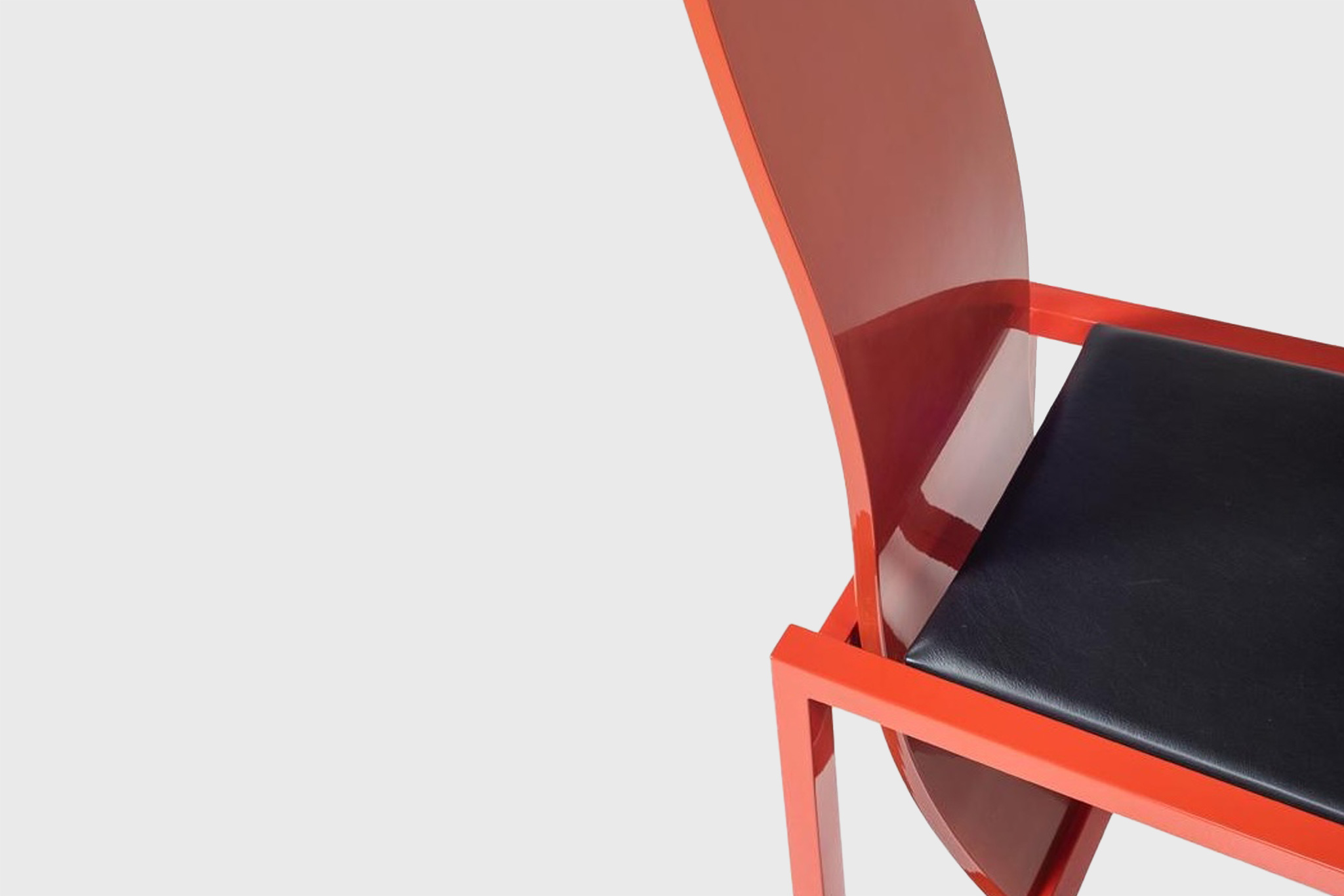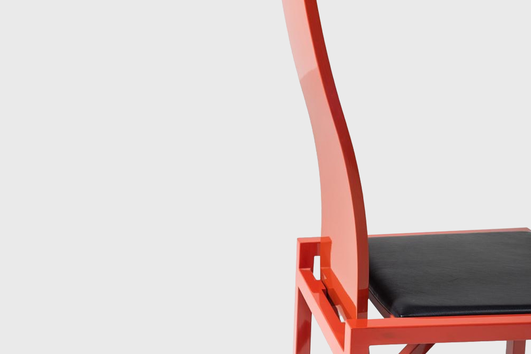 Executed in black lacquered wood with vinyl upholstery, the chair’s clean lines and dynamic tension embody the architect’s interest in harmonizing opposing forces—East and West, past and future, rigidity and movement. Though conceived as a functional object, the Edo Chair operates equally as a statement piece, bridging the realms of art and design.