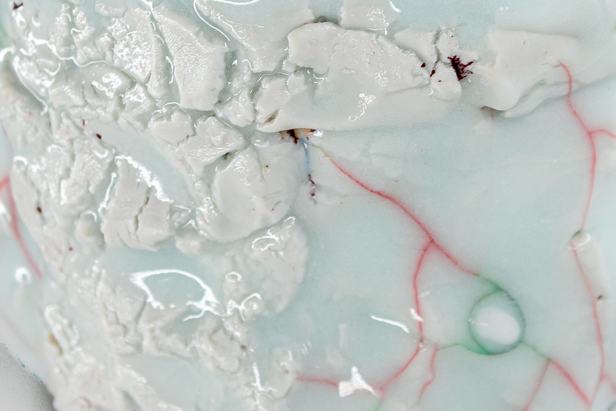 Rooted in traditional ceramics, Kodai Ujiie’s sculptures explore the evolving boundary between vessel and sculpture through controlled yet improvisational techniques. His pieces often evoke quiet, creature-like presences, drawing inspiration from the anatomical strangeness of amphibians and other biological oddities to create soft-edged forms that feel both familiar and otherworldly, resonating with a lineage of artists who expand the vessel into a sculptural language. Eschewing bold color, he employs a restrained, almost ghostly palette, with expressive forms and carefully worked surfaces reminiscent of experimental freedoms found in the work of Ron Nagle. Ujiie glazes suggest frozen, snow-covered terrains or ash-dusted mineral surfaces—distant, imagined, and quietly surreal landscapes. This muted, eerie tonality fosters a sense of reverie, creating a feeling of stillness or suspended time, as if each object inhabits a slow, parallel reality just beyond perception.