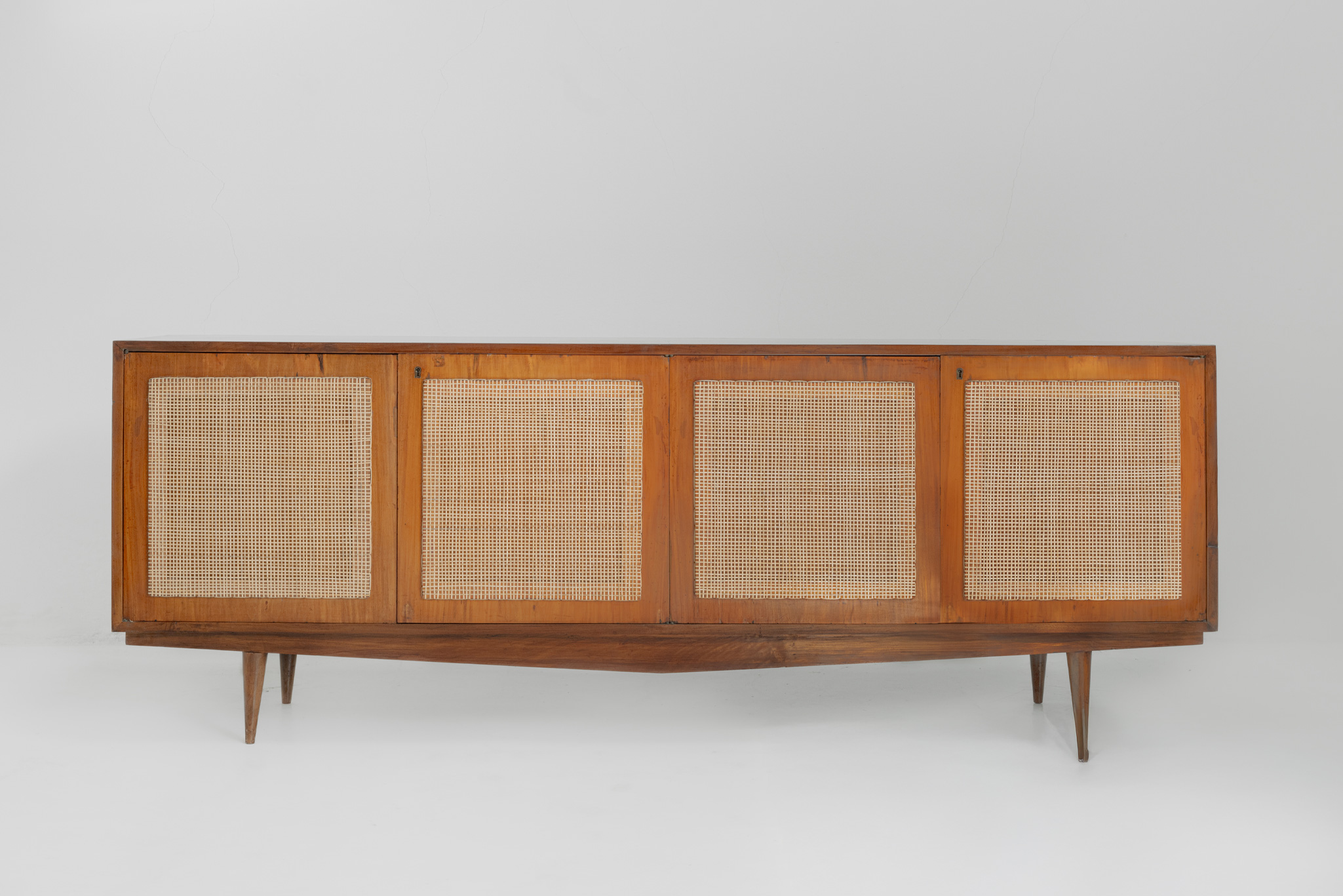 Born in Brescia in 1927, Carlo Hauner studied technical drawing and drawing at the Brera Academy in Milan, Italy. In 1948 he successfully participated in the Venice Biennale, after which he moved to Brazil, where he dedicated himself to the design of textile, ceramics, furniture, and architecture. After purchasing a factory from Lina Bo Bardi and her husband Pietro Bardi, he quickly founded a furniture production company, renaming it Móveis Artesanal.