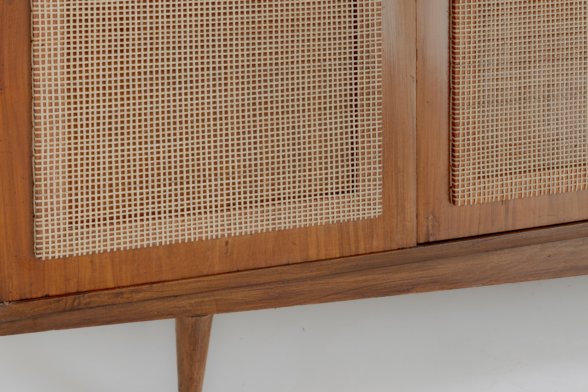 Being highly ambitious and with an eye on the international market and the upcoming office market, Móvies Artesanal later changed into Forma. Along with Oca, Forma became one of the biggest names in Brazilian furniture production. Eisler attracted exclusive license to sell Knoll furniture, bringing big names in international design such as Mies Van Der Rohe, Charles Eames, and Harry Bertoia to the Brazilian furniture market. Hauner and Eisler's designs are characterized by Brazilian woods, thin tubular frames, and range from furniture to ceramics and textiles. Some of their most famous designs are the "rib" lounge chair, the "concha/haia" chair or "reversible" lounge chair, both shown in this exhibition. In 1958 Hauner decided to return to Italy to open Forma di Brescia, which catered to, e.g., the embassy of Brazil in Rome and Vatican City. Eventually, Hauner sold his part of the company, leaving Eisler solely at the helm to paint and make wine on Salina, a little isle just above Sicily. After a fulfilled life, the artist, designer, and serial entrepreneur died in 1997. Forma prospered during the 60's and 70's, until Martin Eisler died in 1977. His original company in Argentina still exists and, at the moment, is the sole heir to Hauner and Eisler's Heritage. Although Hauner and Eisler designed and produced many pieces, the depth and quality of their work outlined is only the beginning of their lasting impact on the design world.