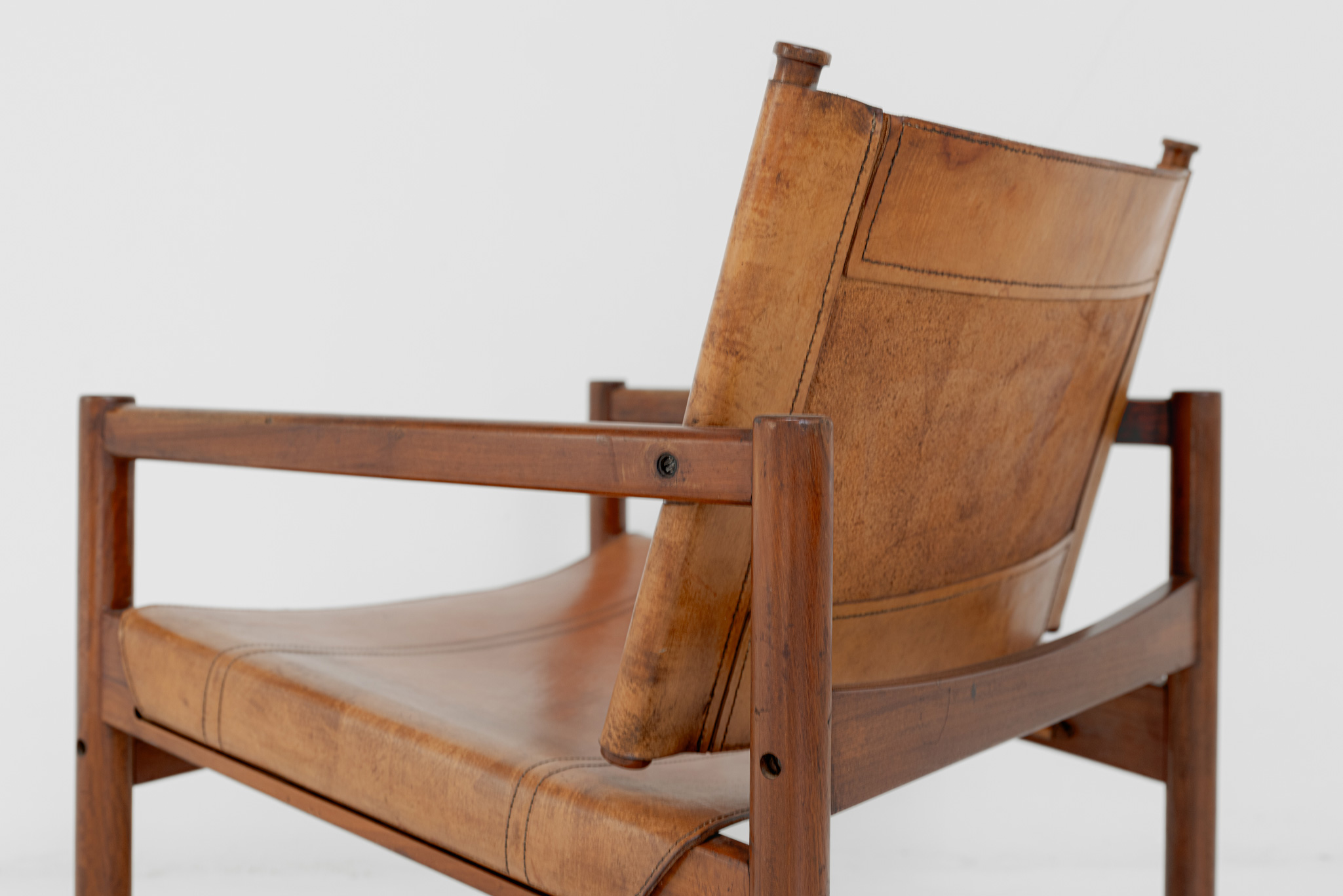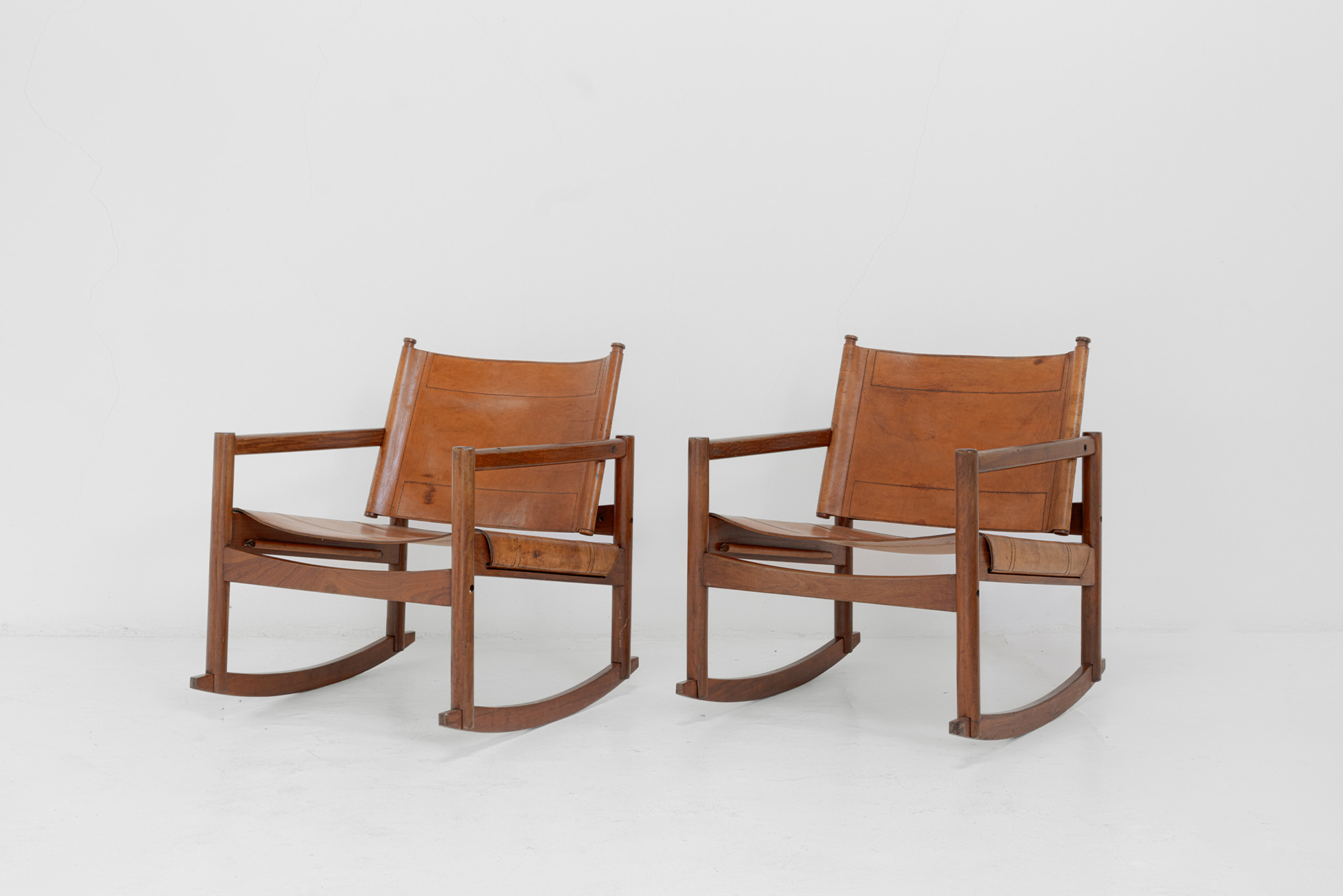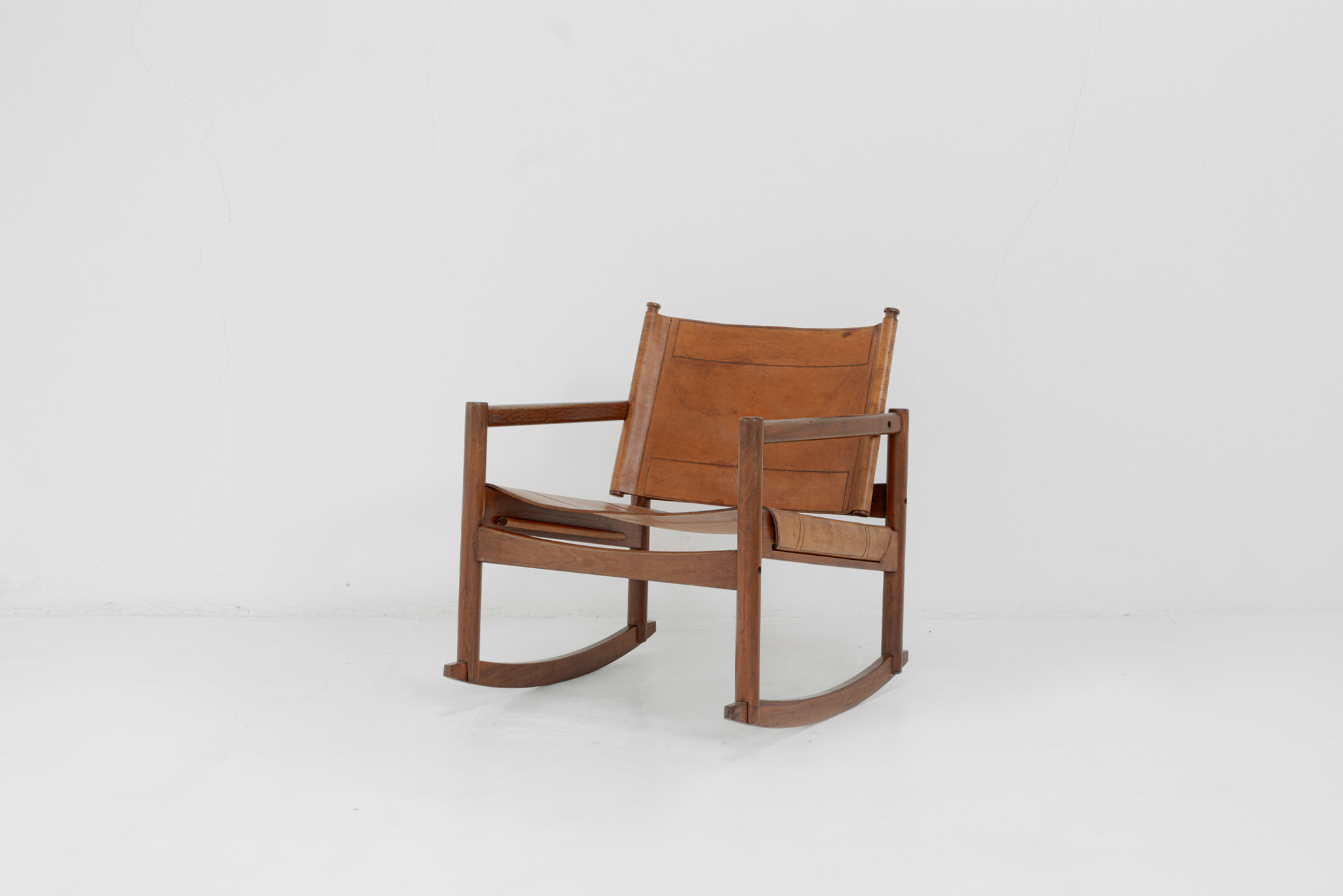 Among his most celebrated pieces are his rocking chairs, armchairs, and dining chairs in solid wood with visible joints and leather seating. These designs, which often used native Brazilian woods, embodied a tactile elegance while remaining resolutely functional and unpretentious.