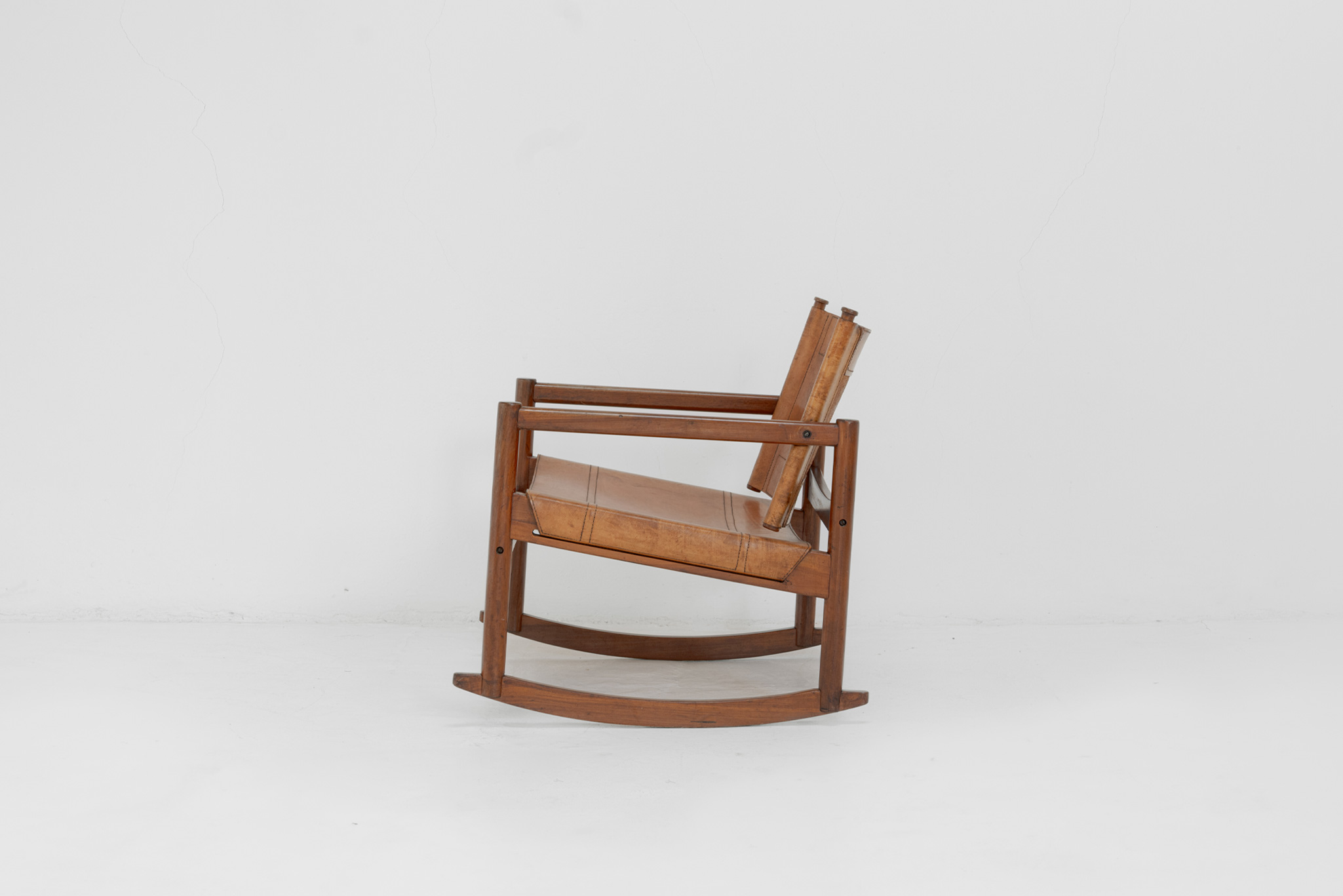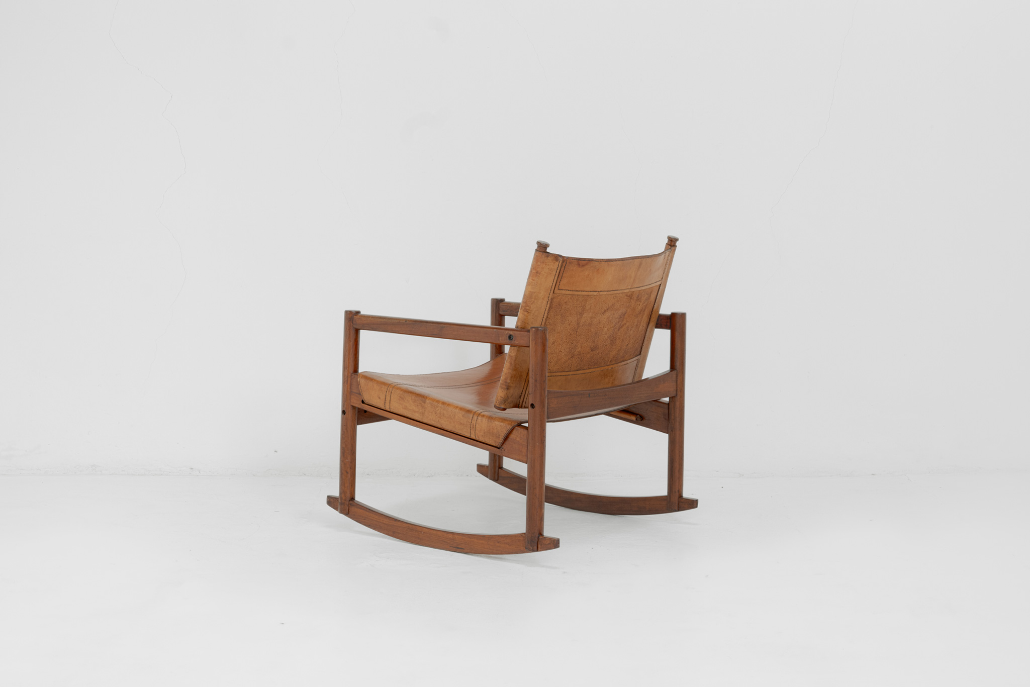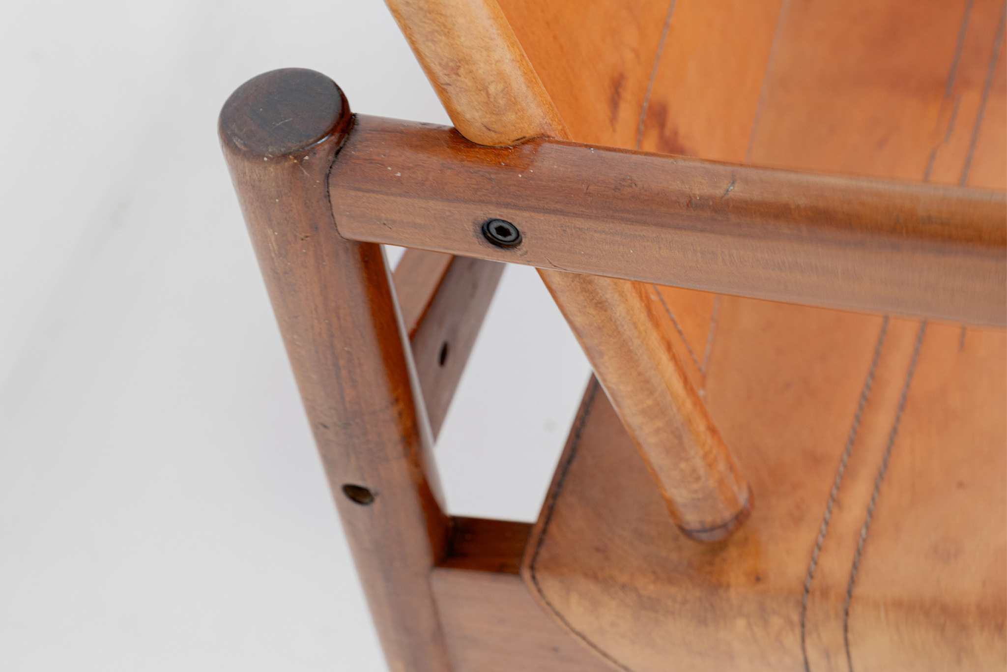 Among his most celebrated pieces are his rocking chairs, armchairs, and dining chairs in solid wood with visible joints and leather seating. These designs, which often used native Brazilian woods, embodied a tactile elegance while remaining resolutely functional and unpretentious.