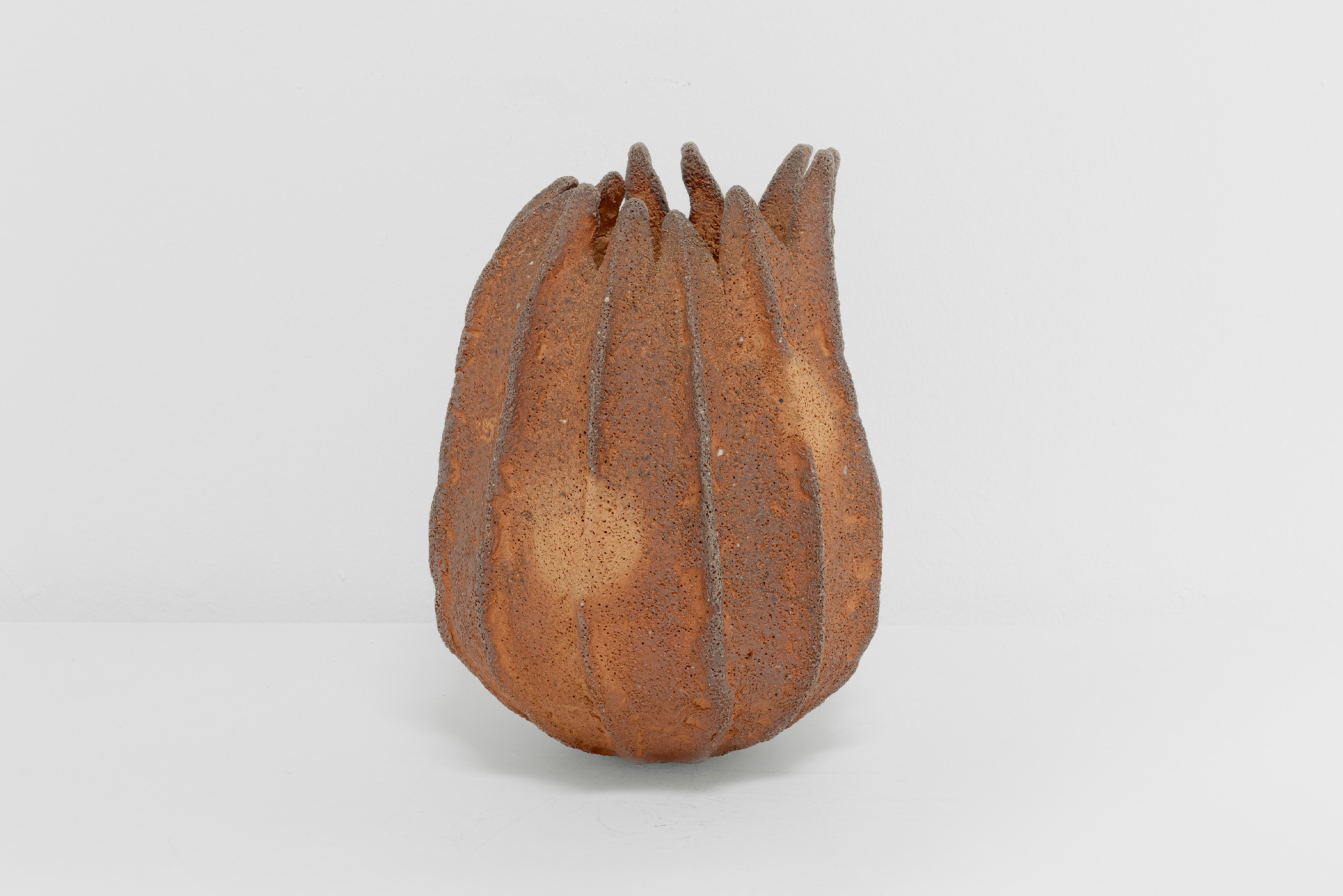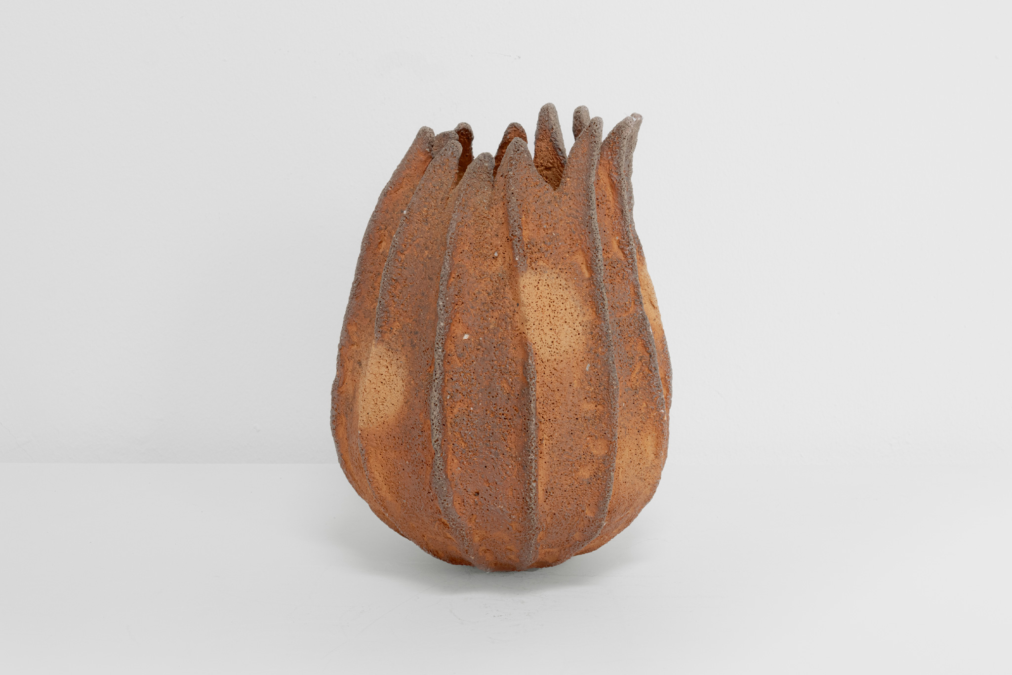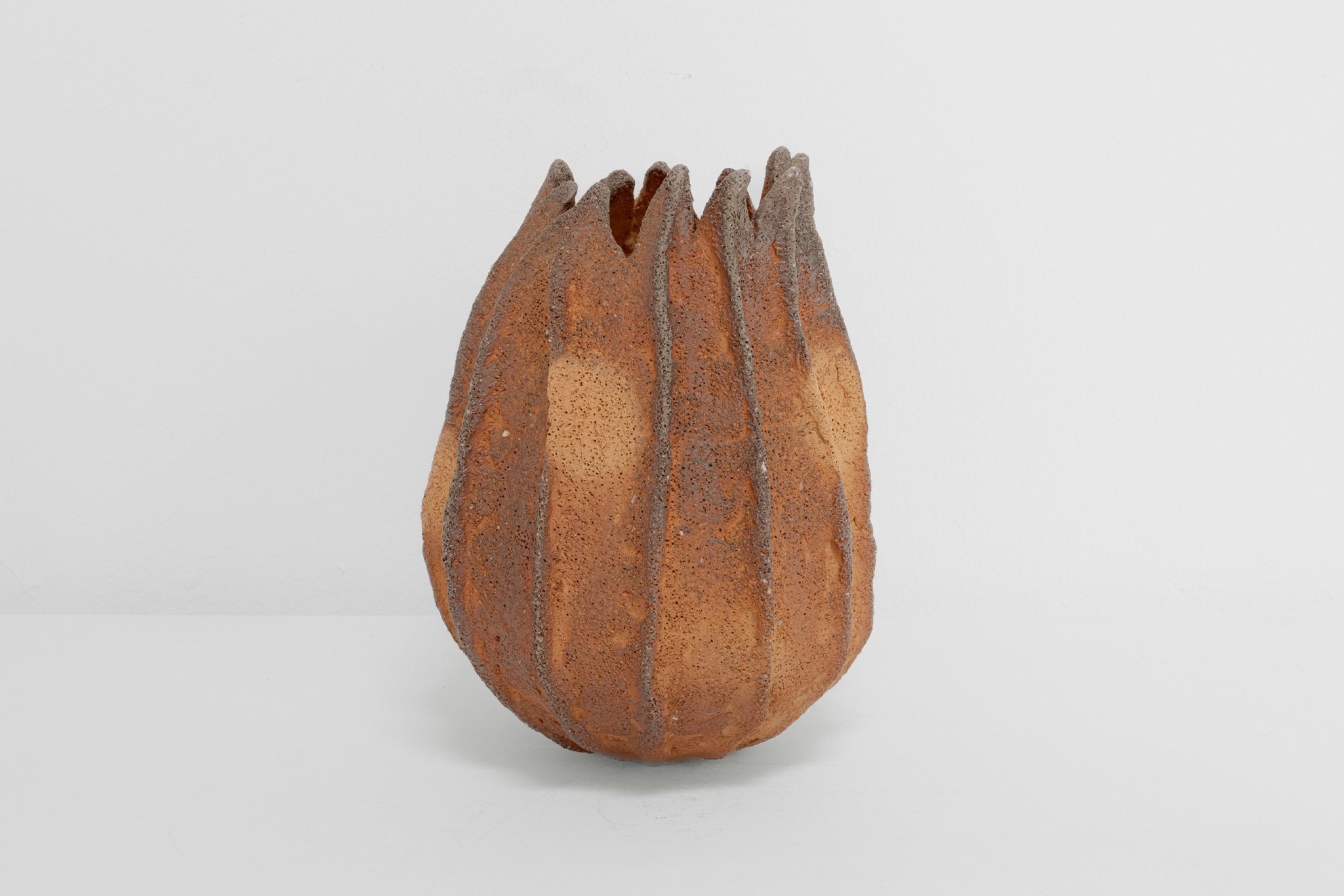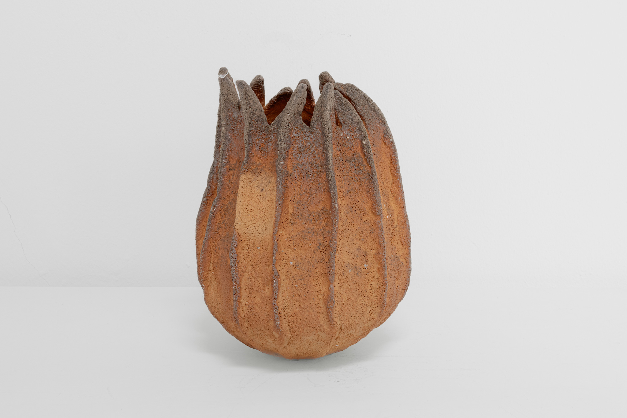The resulting works carry an elemental duality: deliberate in their structure yet unpredictable in their surface, they embody a balance between human intention and natural chance. With their earthy textures and quiet presence, the Hozuki pieces reveal Keane’s ability to transform clay into objects that are not only material but also poetic.