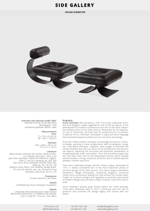 Oscar Niemeyer 1978 Armchair and Ottoman Model "Alta-Memorial"