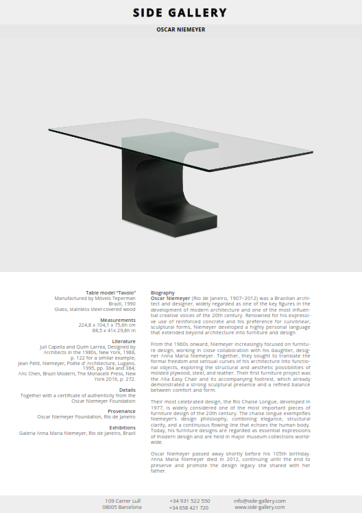 Together with a certificate of authenticity from the Oscar Niemeyer Foundation