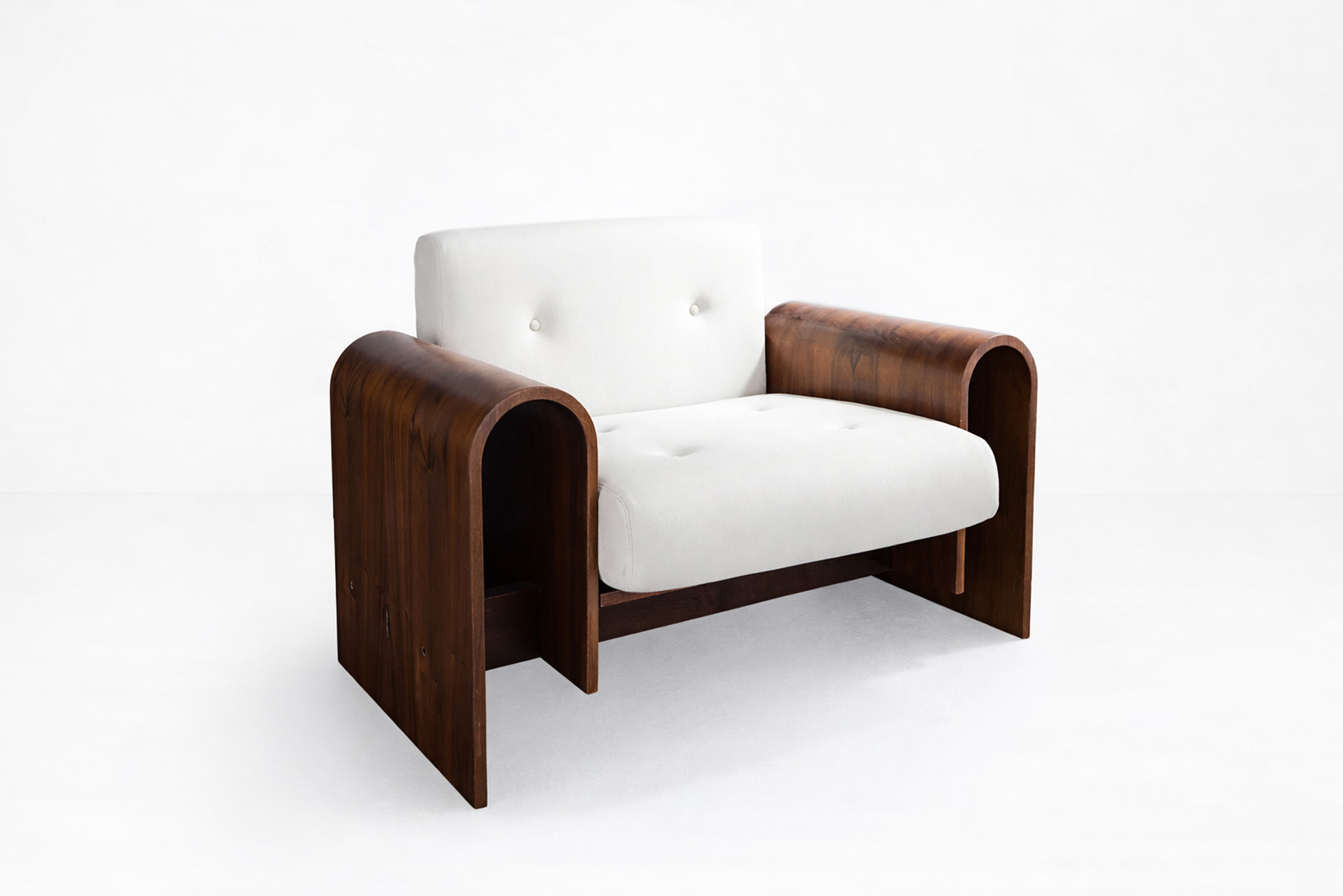 Imbuia wood, wool upholstery