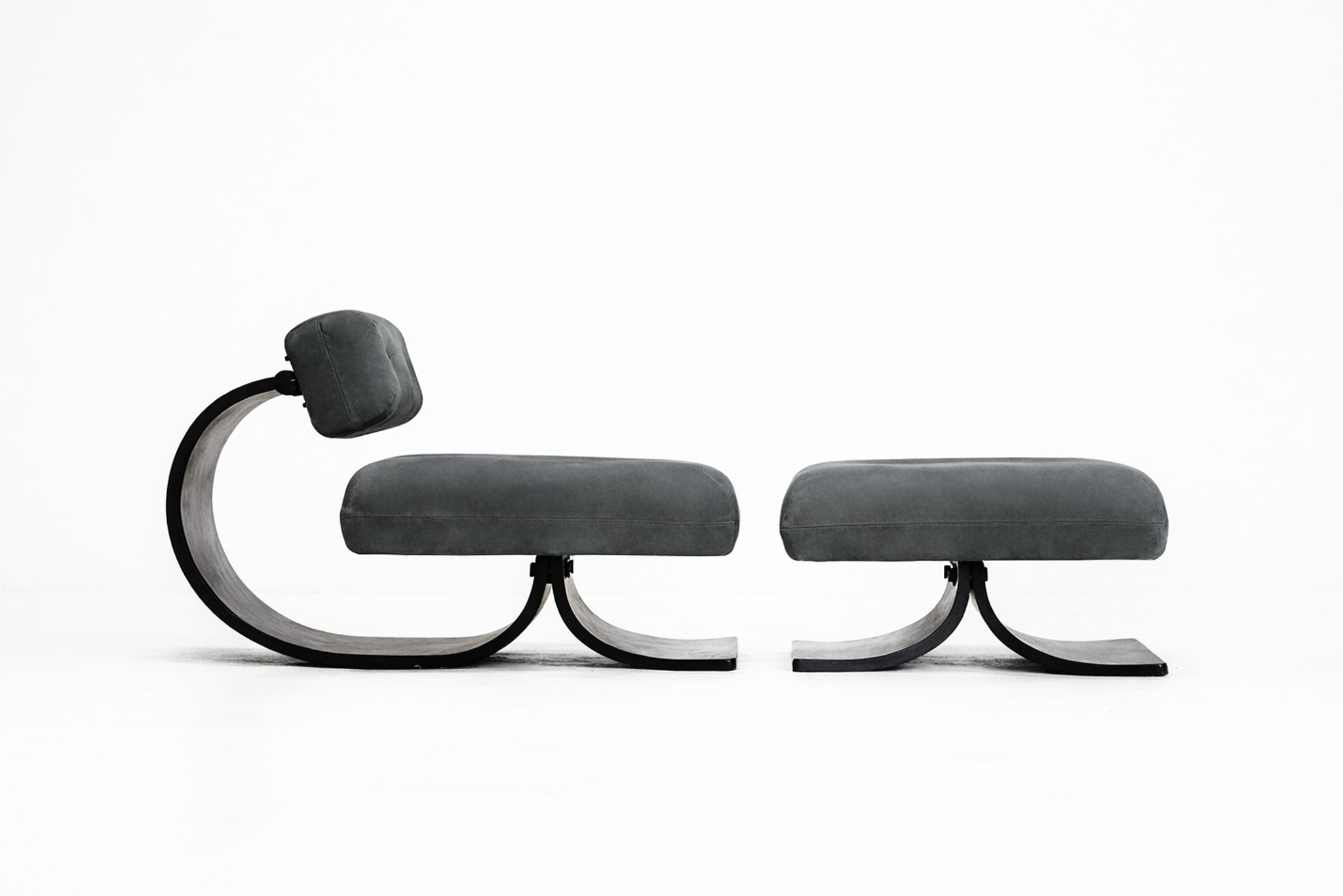 Oscar Niemeyer 1997 Armchair and Ottoman Model Alta Grey Version