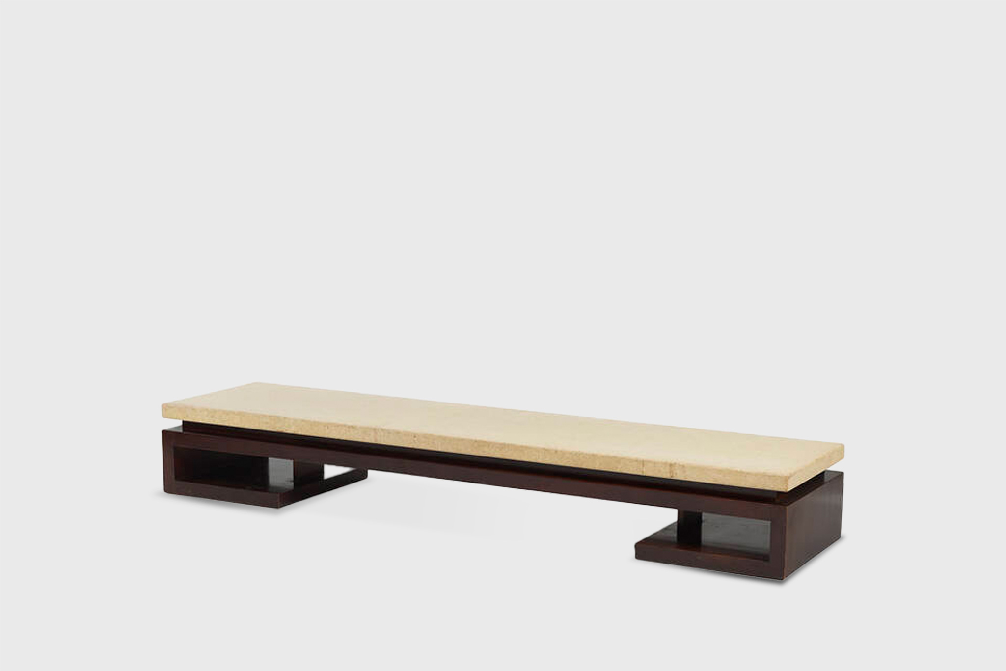 Its elongated proportions and low, architectural stance reflect Frankl’s interest in developing a distinctly American mode of modernism: bold, functional, and rooted in sophisticated material experimentation. The piece embodies his transition from the energetic "Skyscraper" aesthetic of the 1920s to the quieter, more refined organic modernism that defined his postwar work.