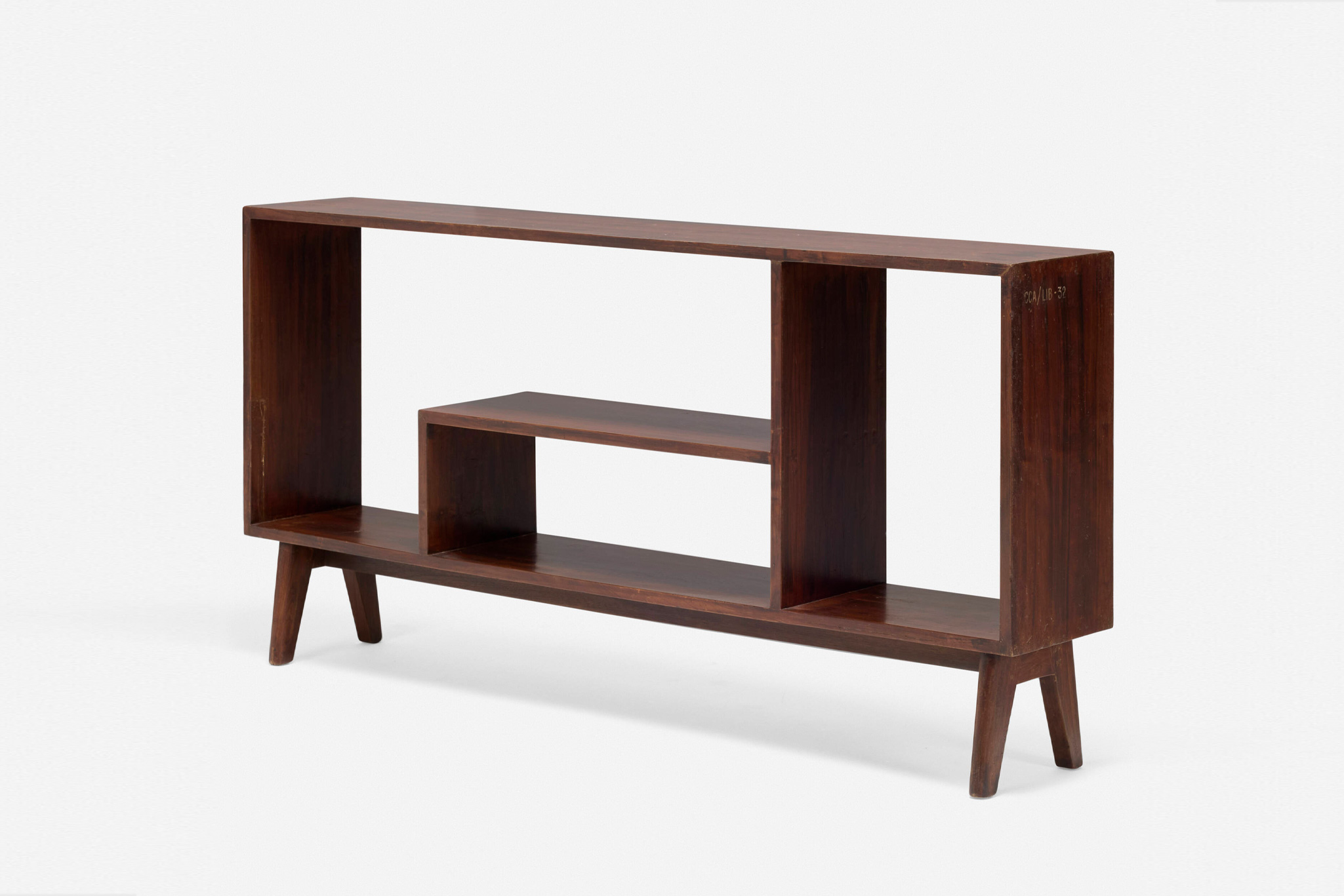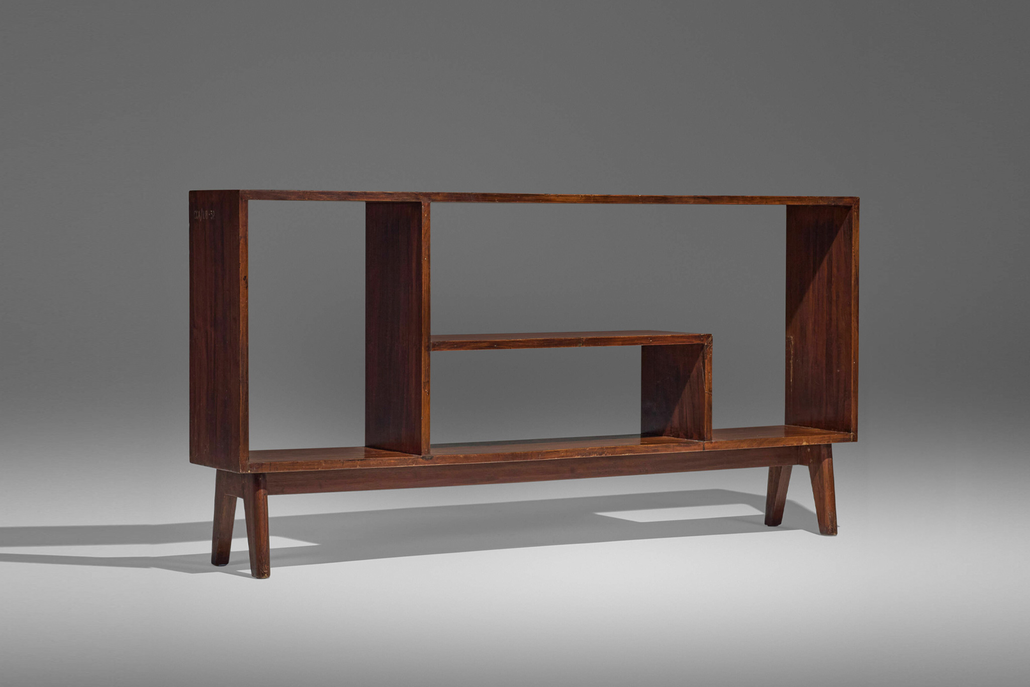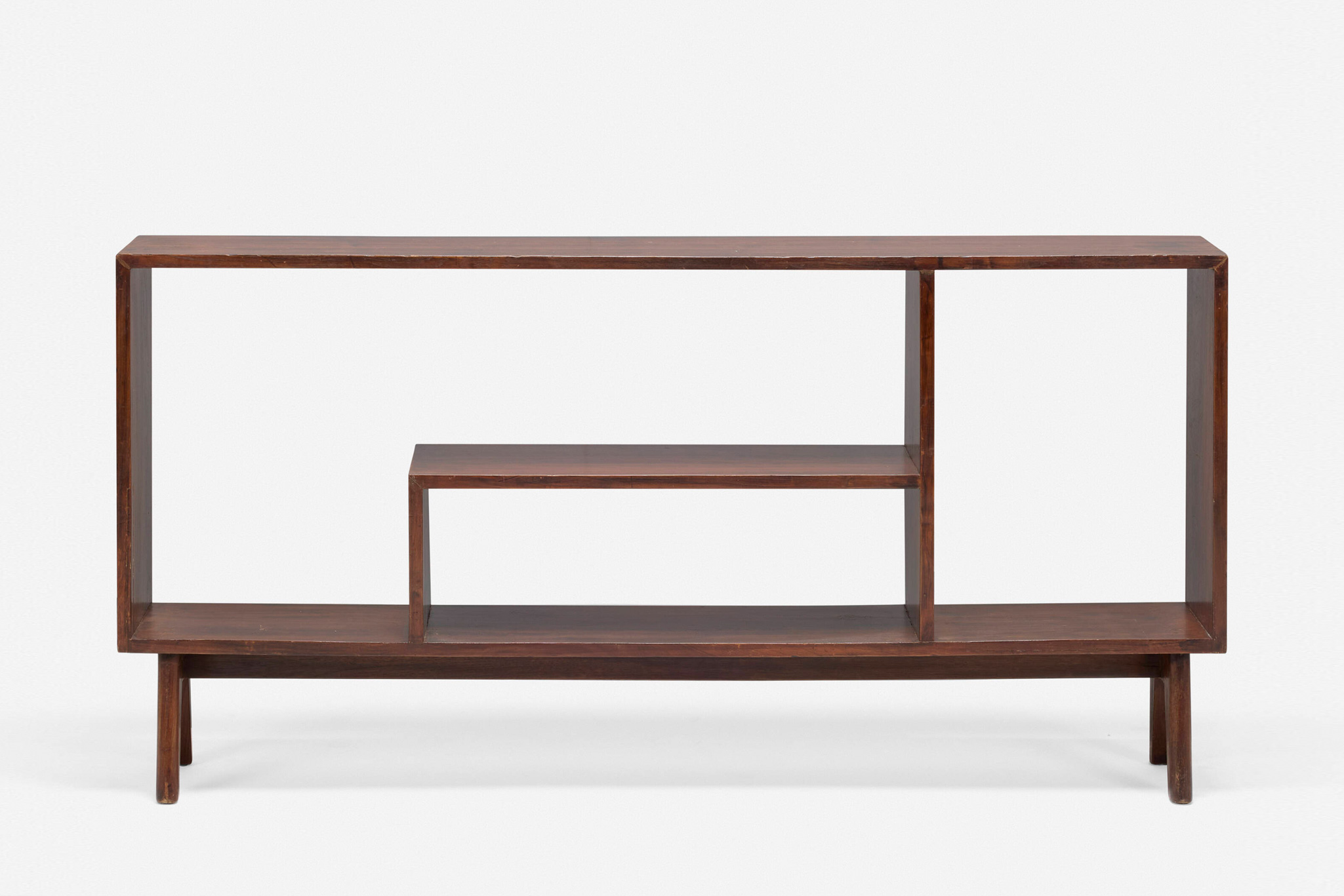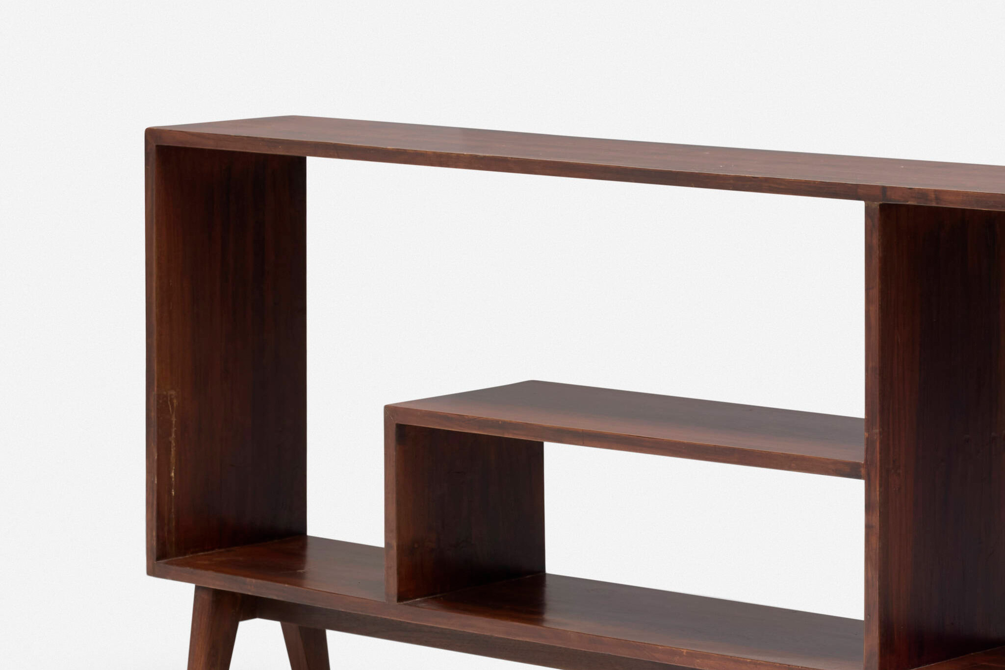 Constructed in solid teak by the Government Workshops of Chandigarh, the rack features a simple yet highly practical structure composed of open compartments designed for efficient storage and accessibility. The warm tone and natural grain of the teak contrast with the strictly utilitarian purpose of the object, creating a piece that balances practicality with material refinement.
