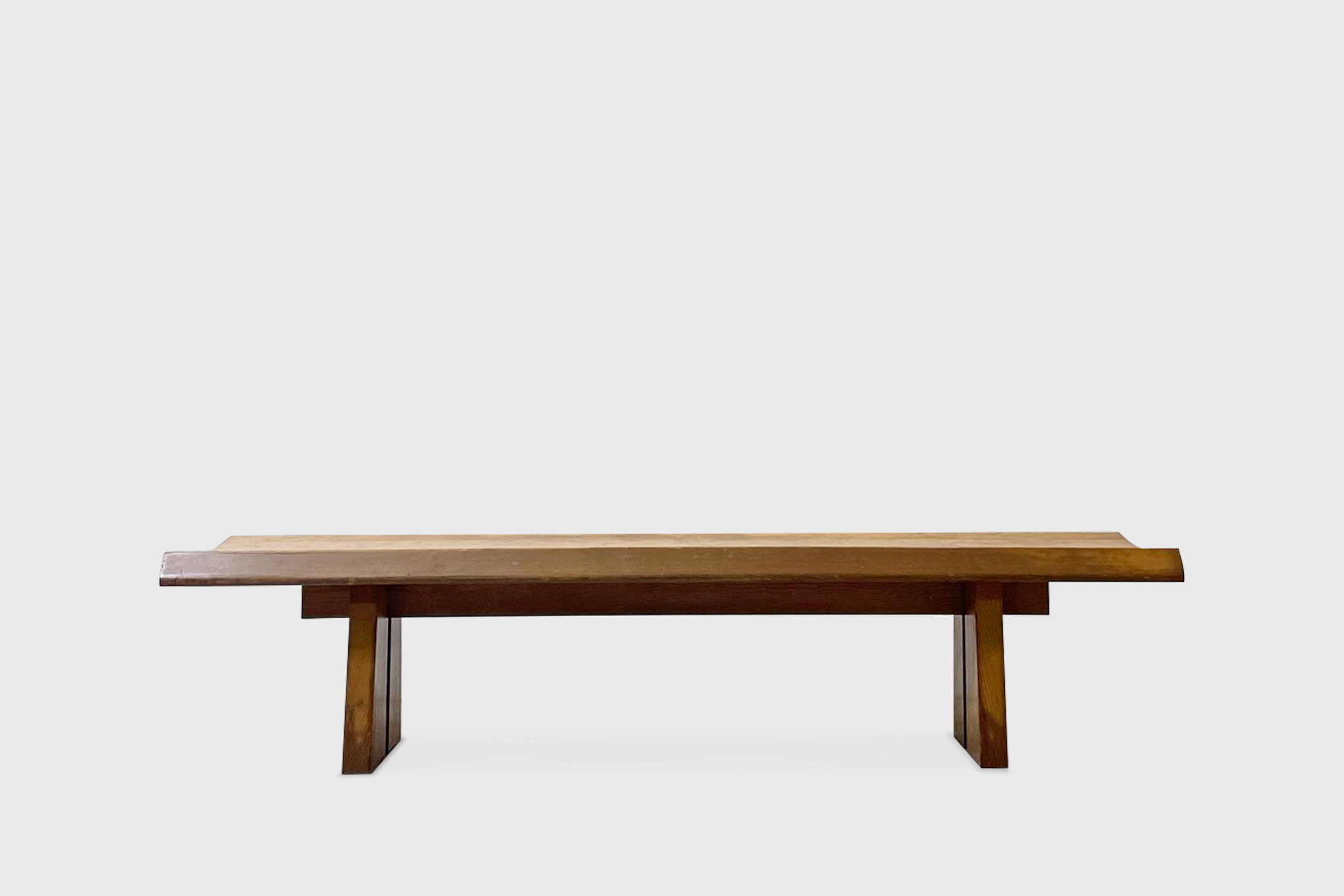 This minimalist pine bench embodies the refined craftsmanship and forward-thinking design philosophy that defined Tendo Mokko’s work during Japan’s postwar design renaissance. Created around 1960, the piece reveals the company’s mastery of molded wood technology—achieving structural strength and visual lightness through precise joinery and elegantly contoured forms.