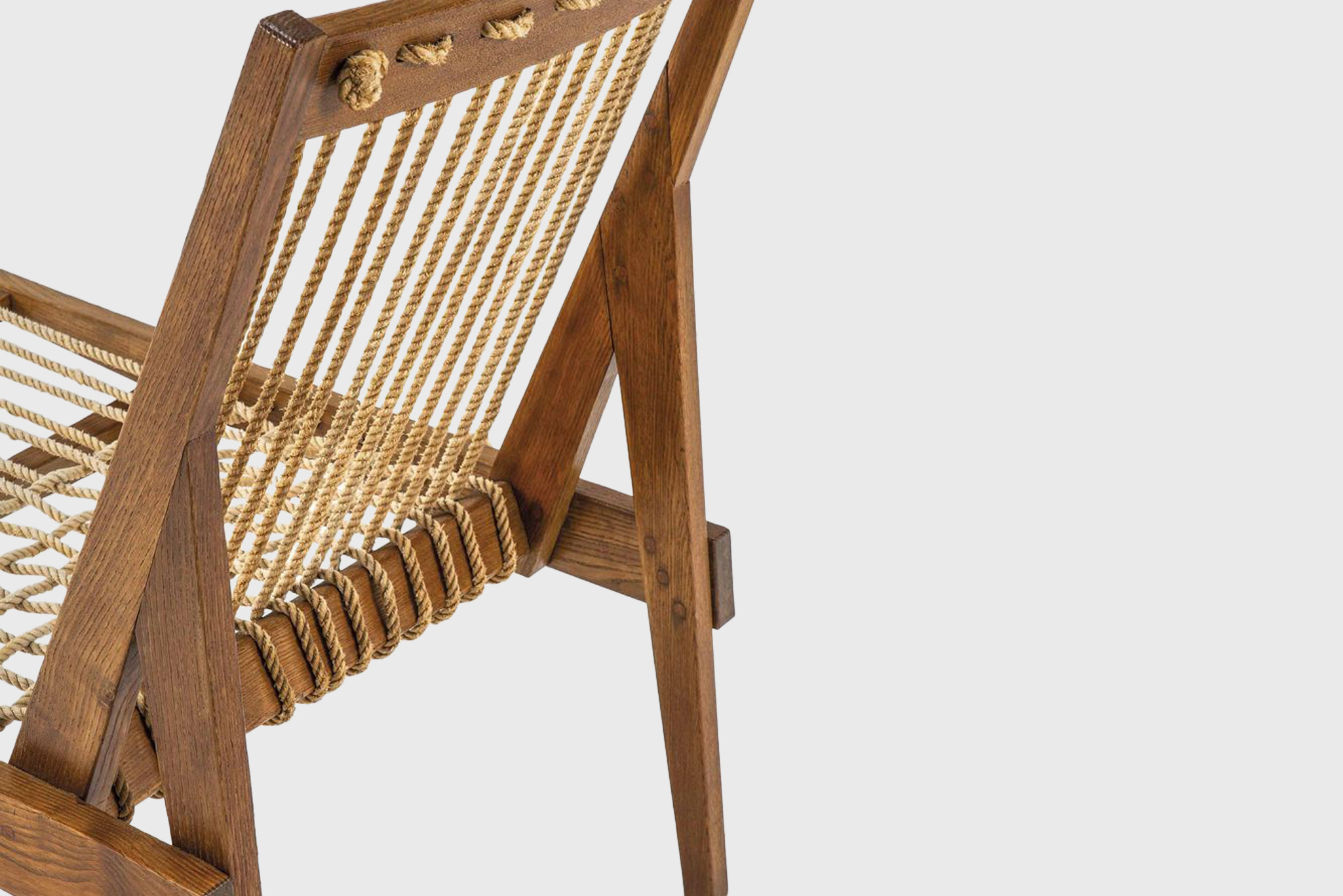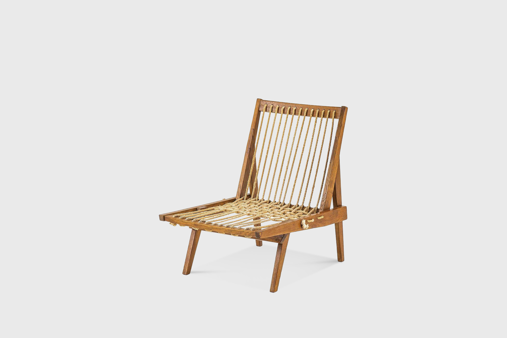 Designed in 1952, the Himo Rope Chair is one of Riki Watanabe’s earliest and most emblematic works, created at a time when Japan was redefining its cultural and material identity in the postwar period. The chair is constructed around a simple wooden frame, onto which rope is tensioned and woven to form both seat and backrest, resulting in a lightweight yet resilient structure.