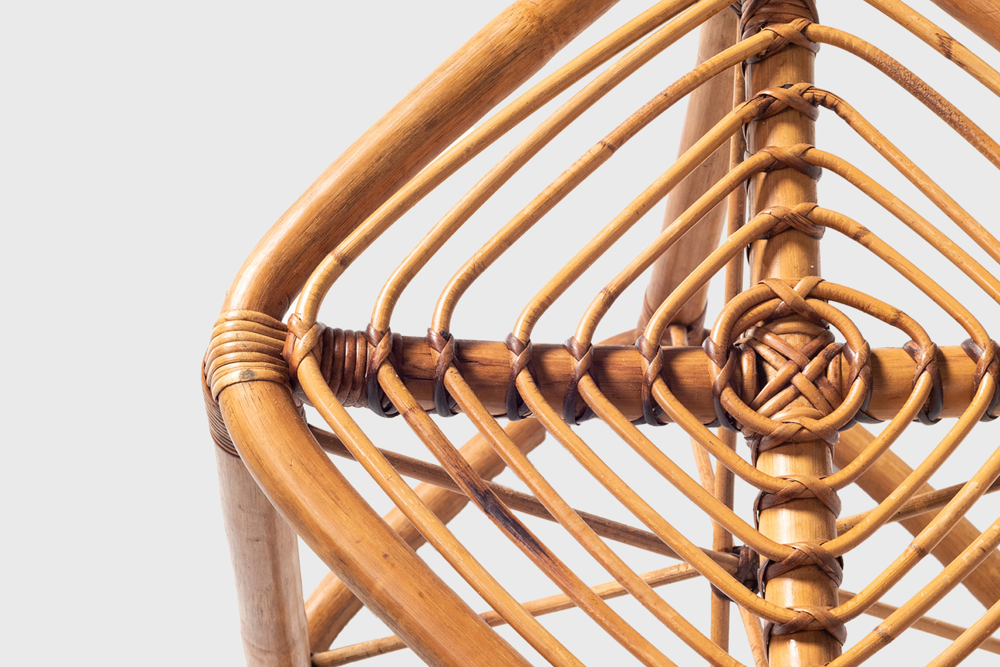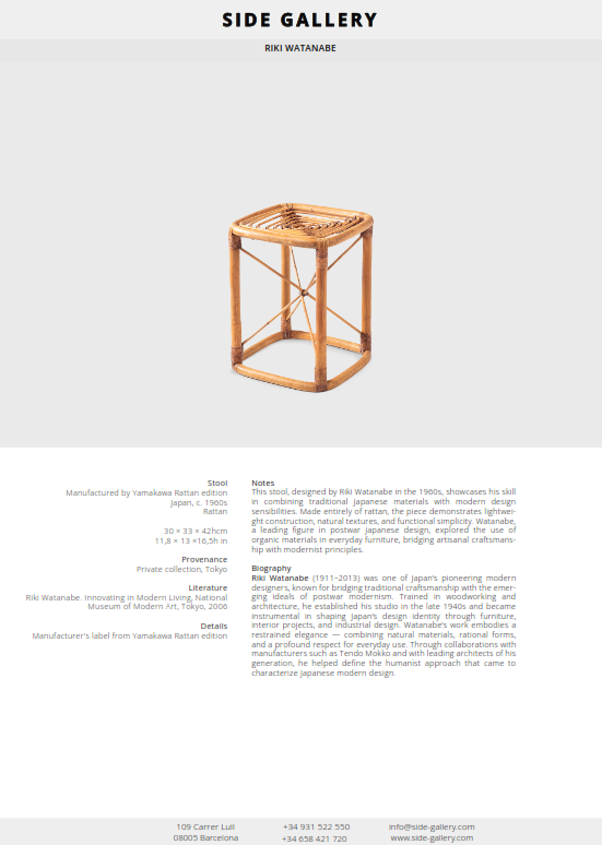 Yamakawa Rattan edition, a Japanese furniture manufacturer, specialized in rattan and woven materials, highlighting natural textures and sustainable craftsmanship. The collaboration with designers like Riki Watanabe reflects the postwar Japanese interest in reinterpreting Western furniture forms and modernist aesthetics through traditional materials, creating pieces that are both functional and visually harmonious.