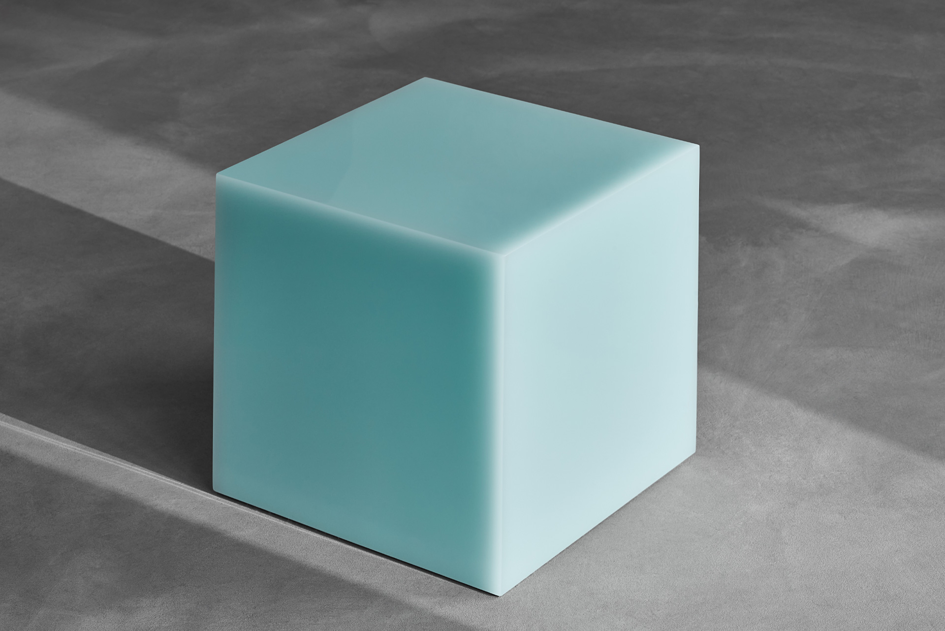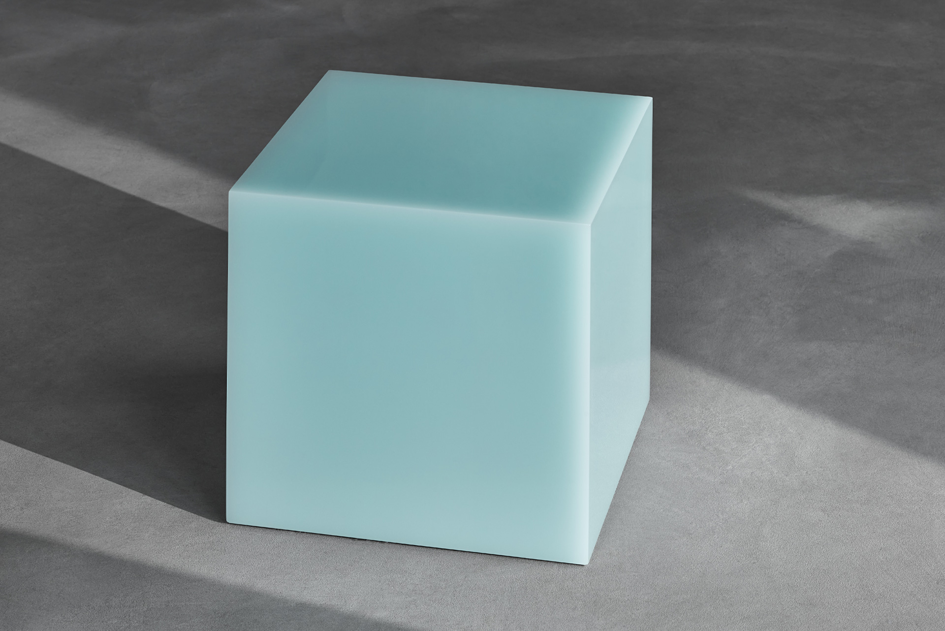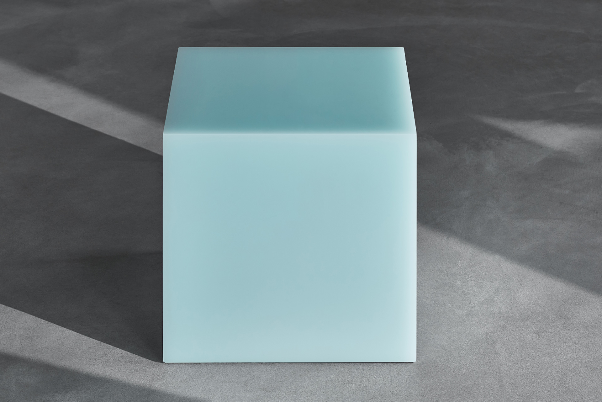 Over the last decade, the award-winning designer has become known for her work with resin and glass. Her receptiveness for these two materials is due to their manipulability; sharp angular shapes as well as spineless curves can be protracted giving the artist endless scope for form. Moreover, the translucency of the both materials can be adjusted from sheer transparency to milky or solid opaque finishes. Working in collaboration with industry specialists, Marcelis intervenes in the manufacturing processes using material research and experimentation to achieve new and surprising visual effects, applying a strong aesthetic point of you to the material development processes. The series Candy Cubes is an example of the designer’s complex material investigation; a polyester resin mold is used to cast the piece, followed by an intensive polishing process. The cast resin is light sensitive, as sun rays shine down onto the solid blocks, the light illuminates the edges, sugar coating the sides, making the aptly named “marshmallow” colored candy cube appear edible.