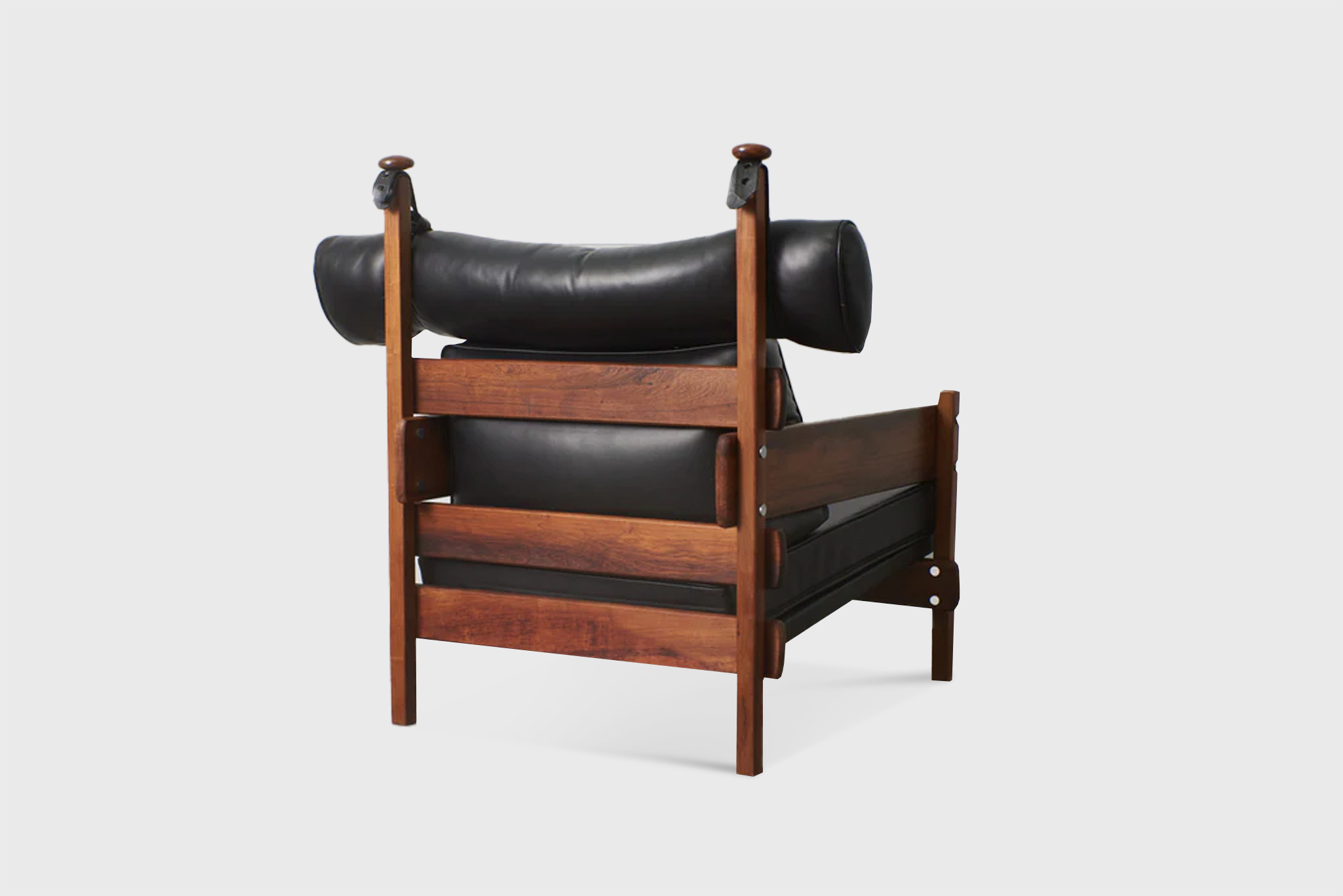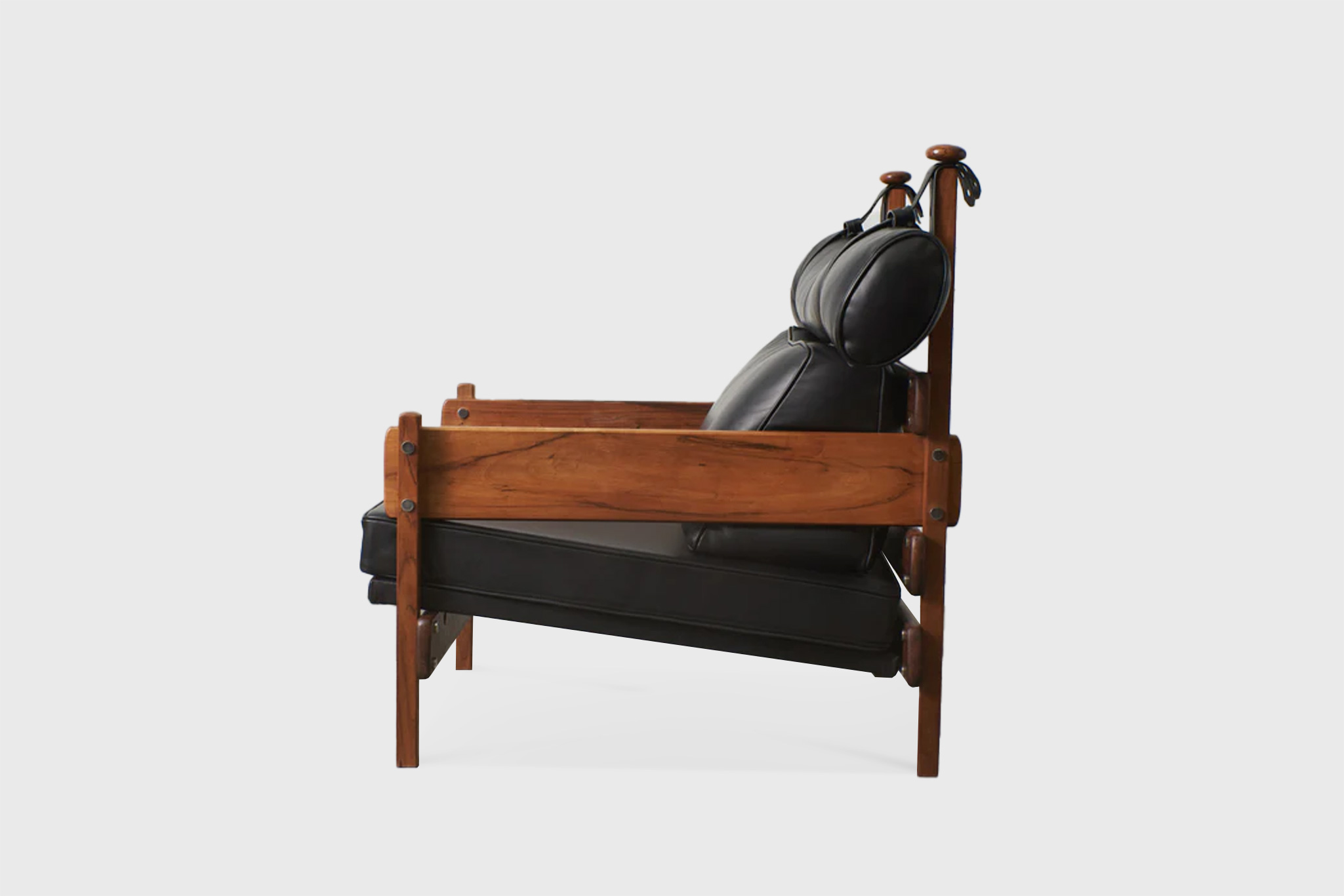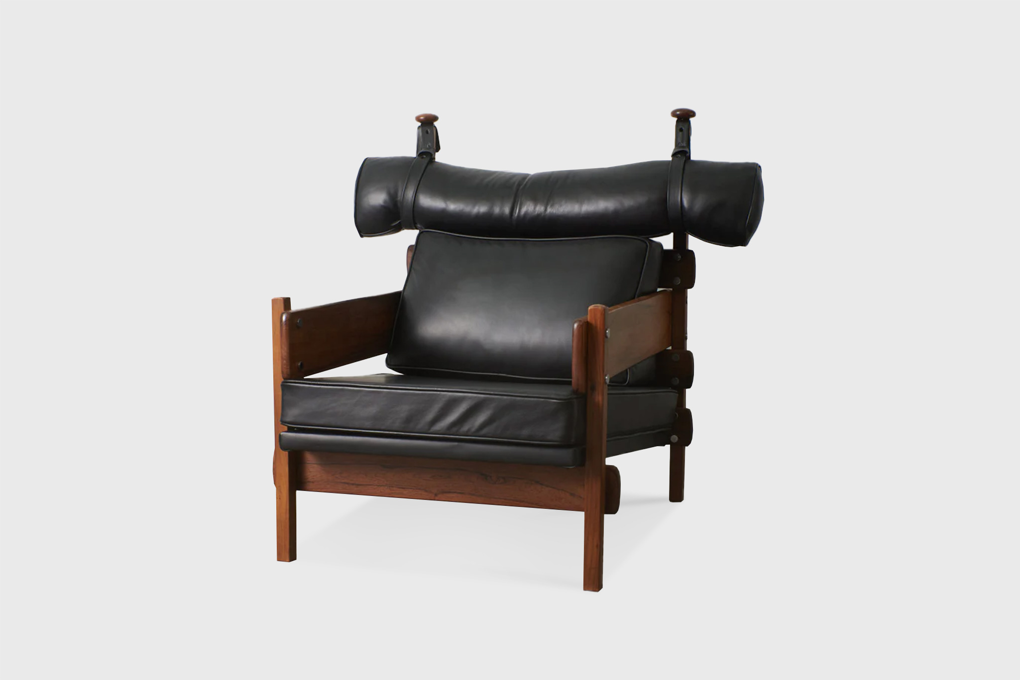 Another famous armchair was the Tonico, created in 1963 for Meia-Pataca, with a roll pad for neck support supported by adjustable straps. In 1973 he designed the Lightweight Kilin PL-104 armchair, made of solid wood and canvas or leather for the seat and backrest.