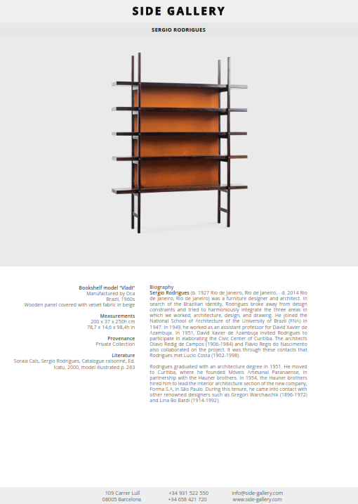 Soraia Cals, Sergio Rodrigues, Catalogue raisonné, Ed. Icatu, 2000, model illustrated p. 263