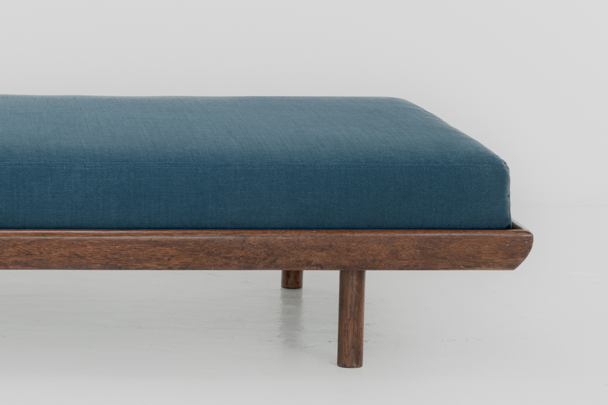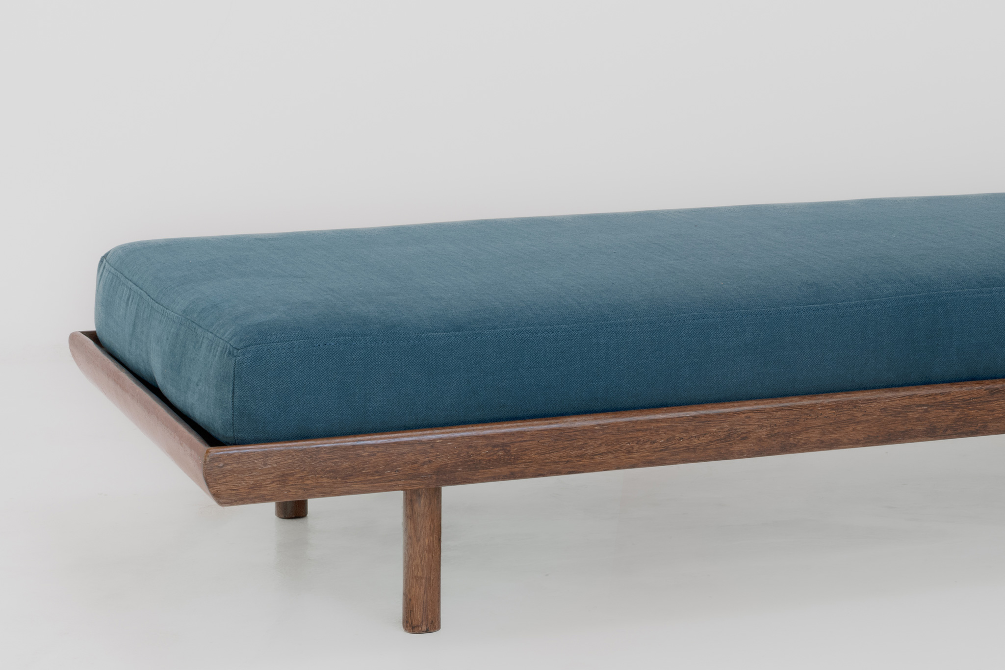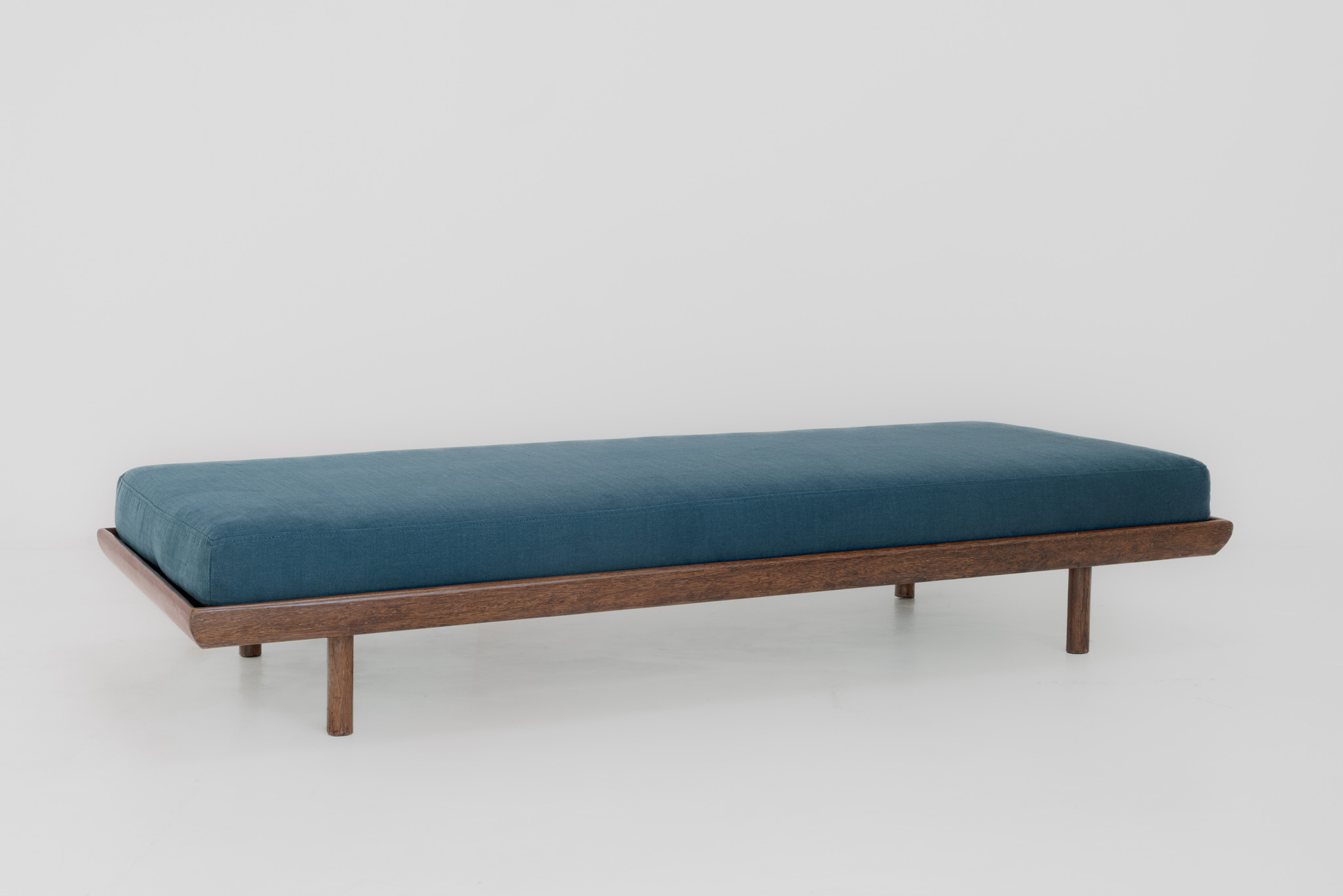 Solid rosewood with a slatted solid wood platform and cylindrical feet