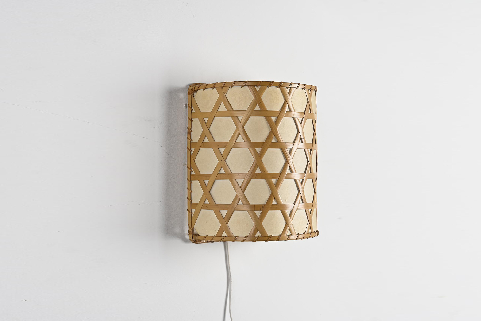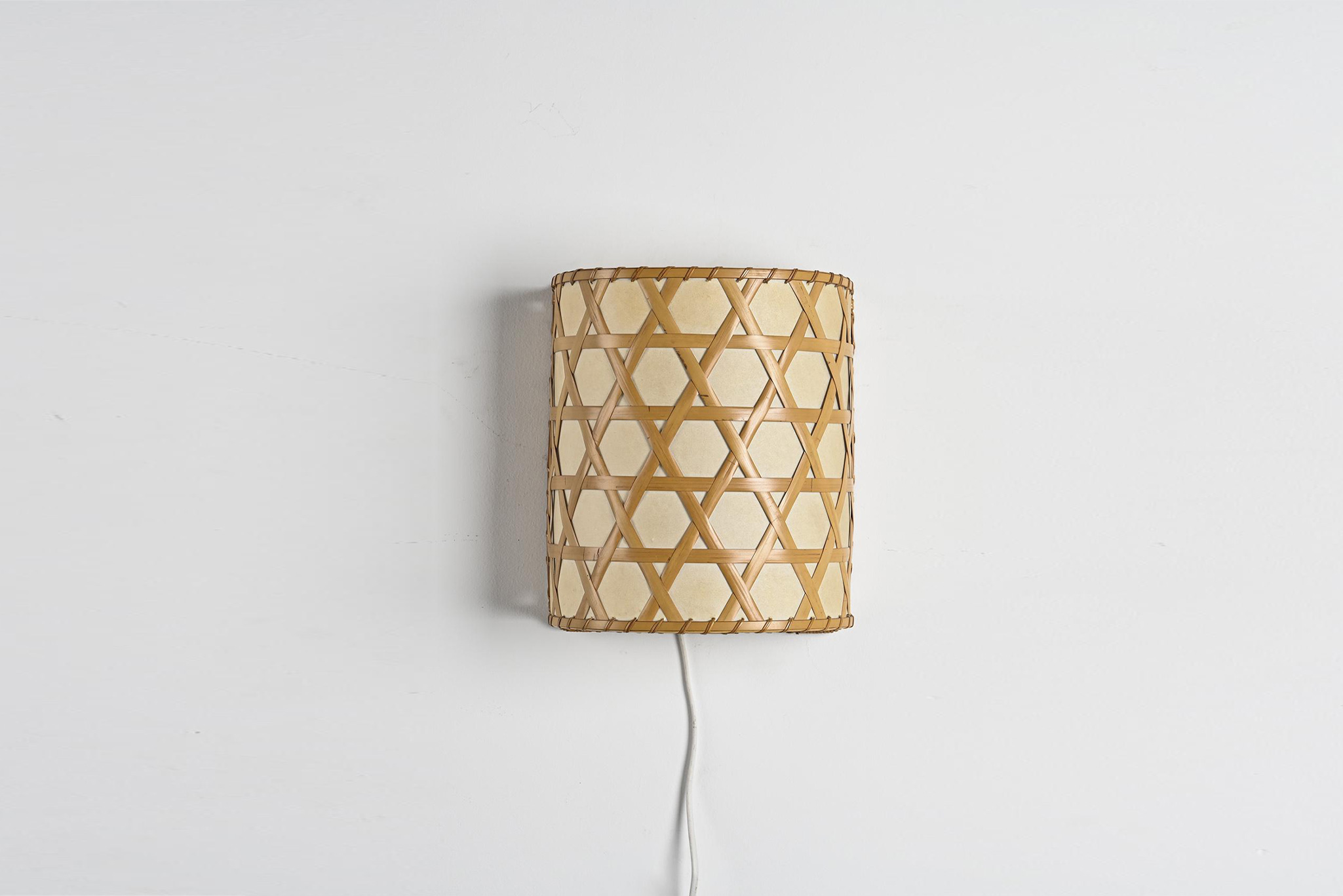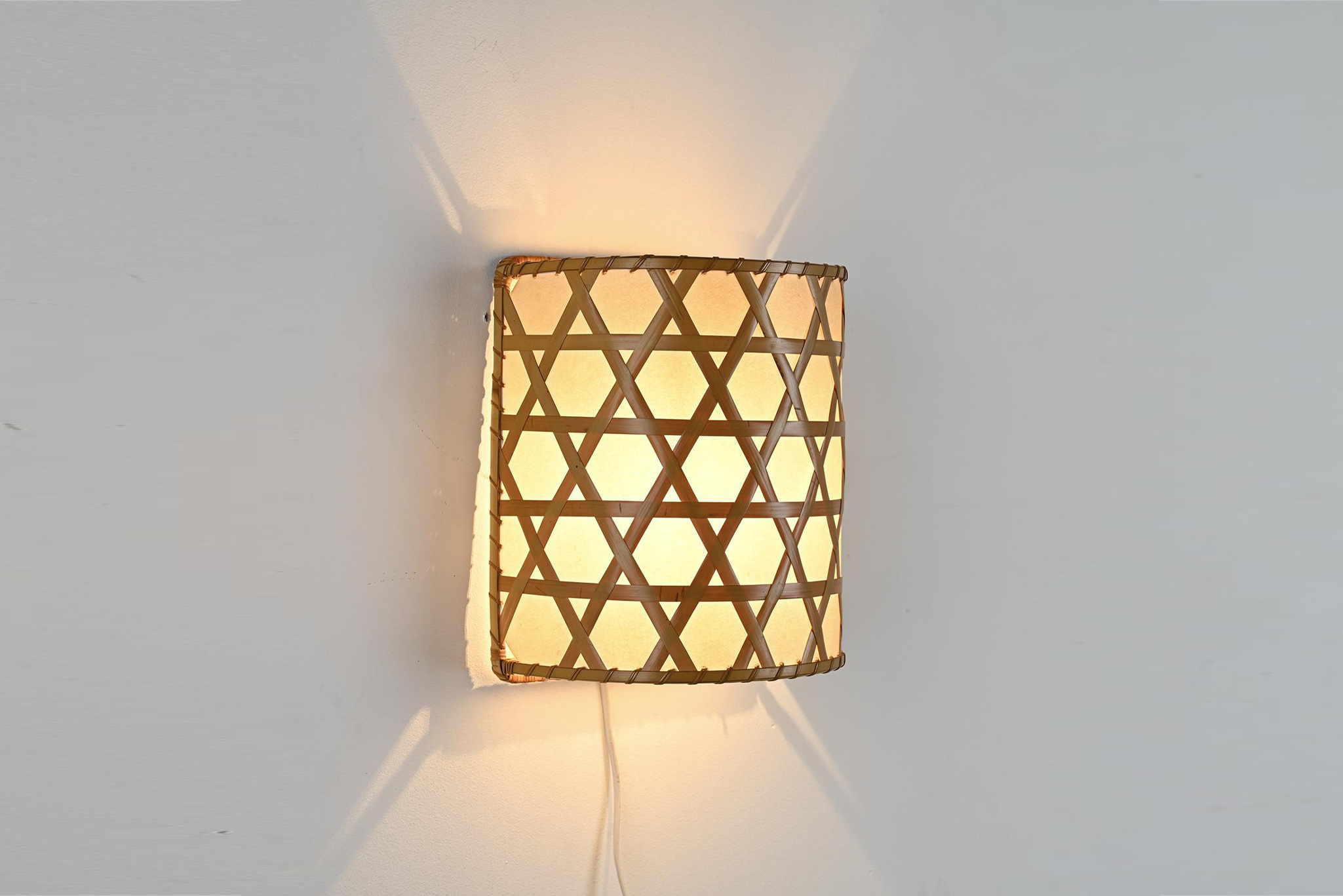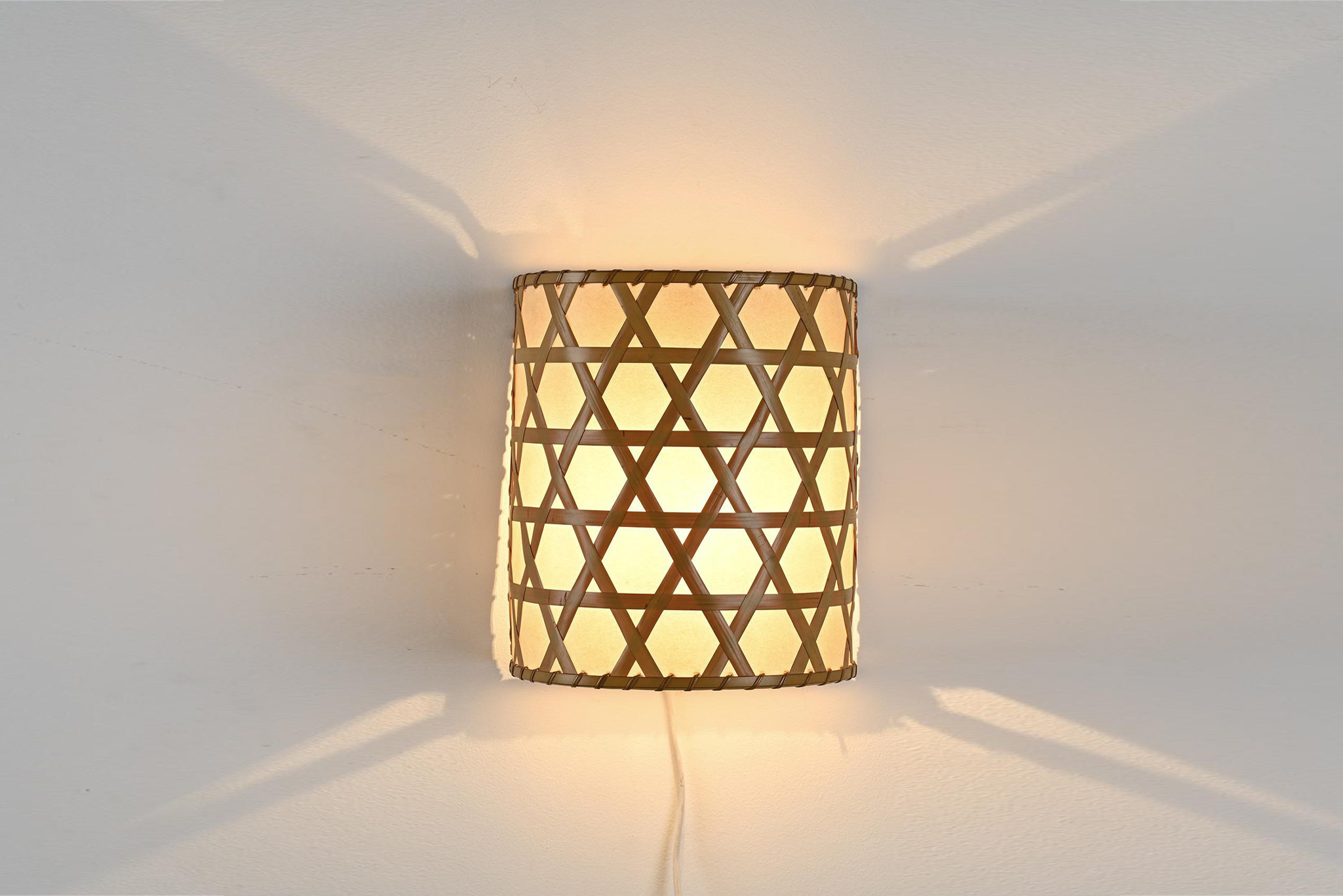 This wall lamp, designed by Shosaku Kondo in Japan around 1965, exemplifies the elegant synthesis of traditional craftsmanship and modern design. Kondo, trained as an industrial designer, is renowned for elevating bamboo into a medium for minimalist, sophisticated lighting.