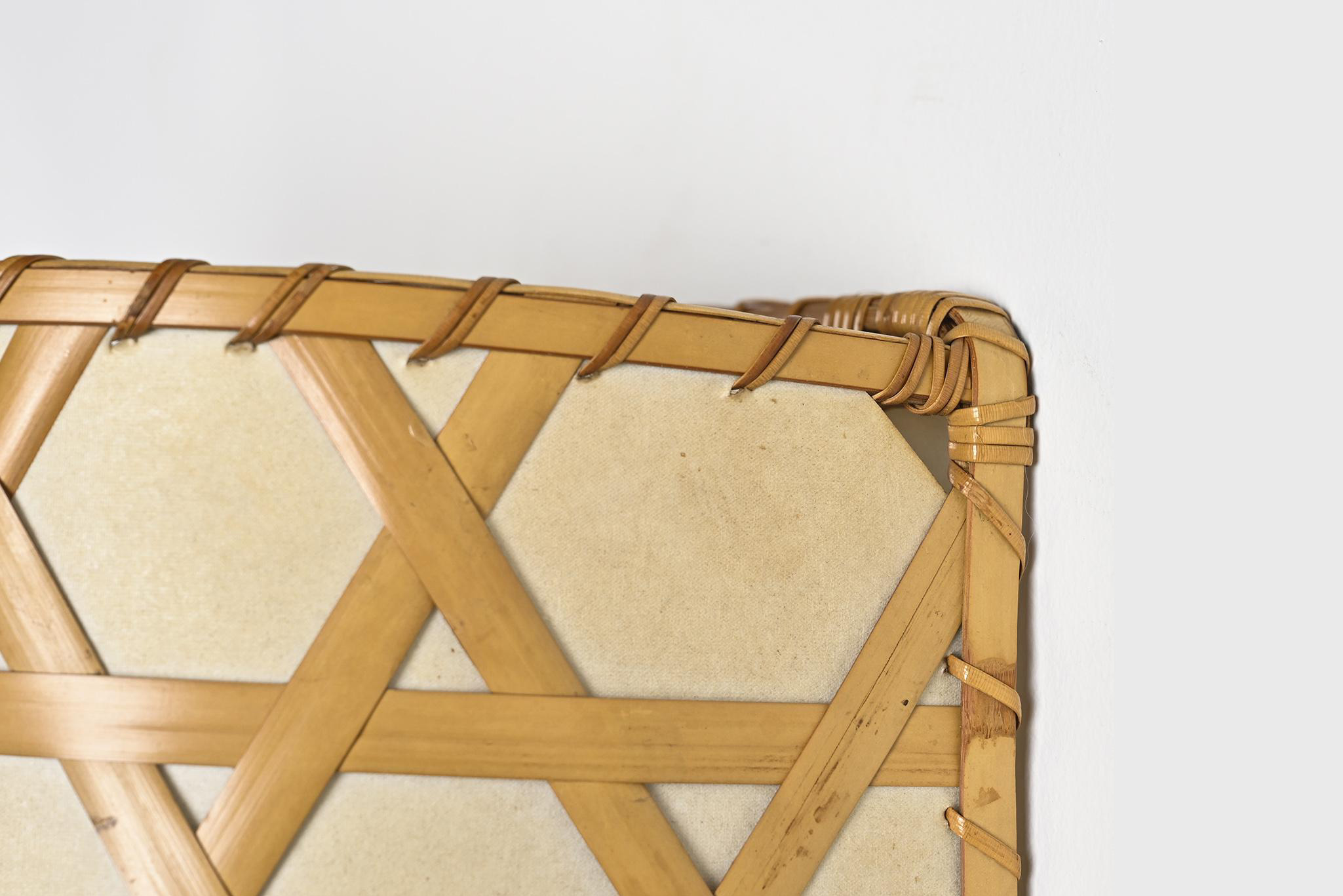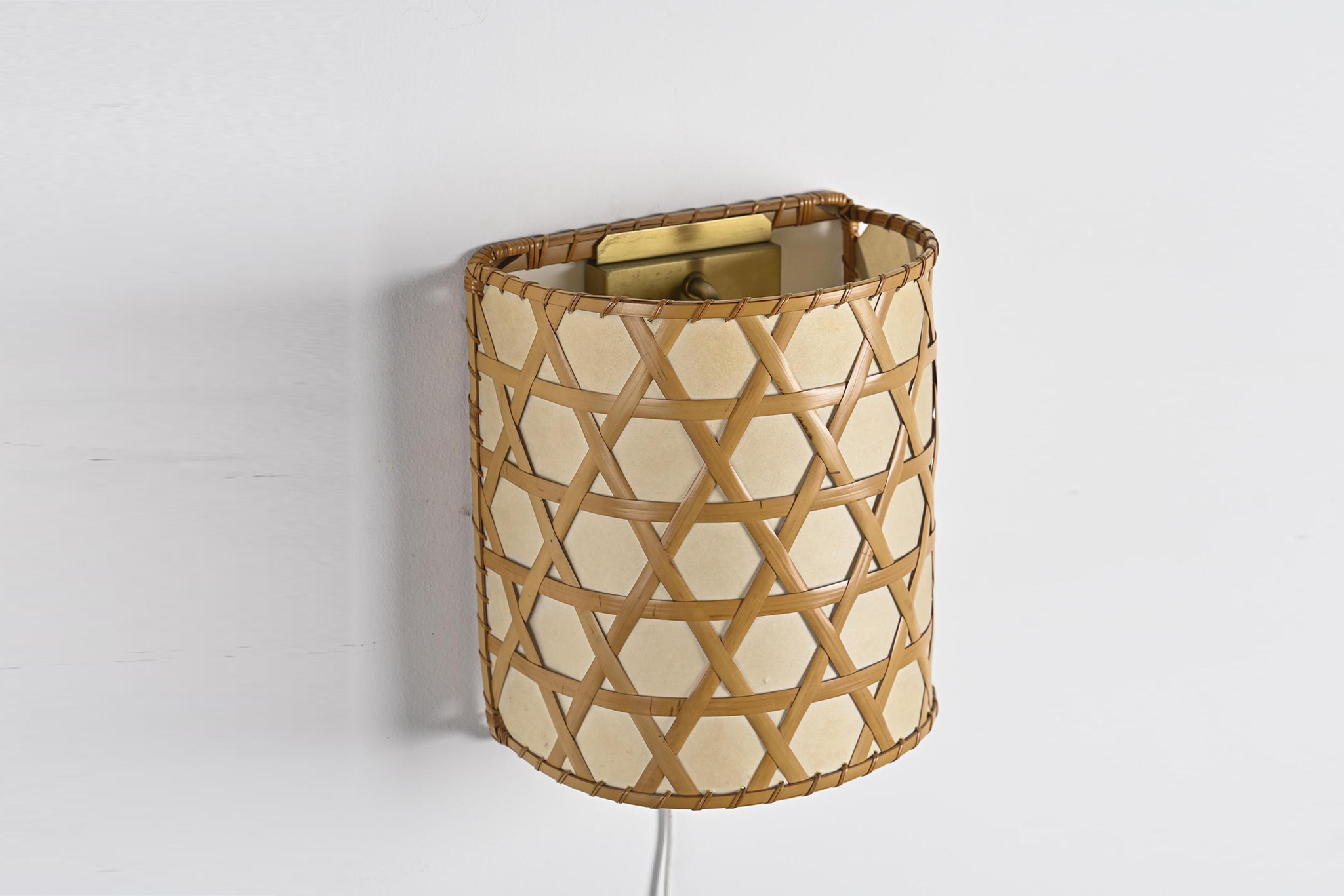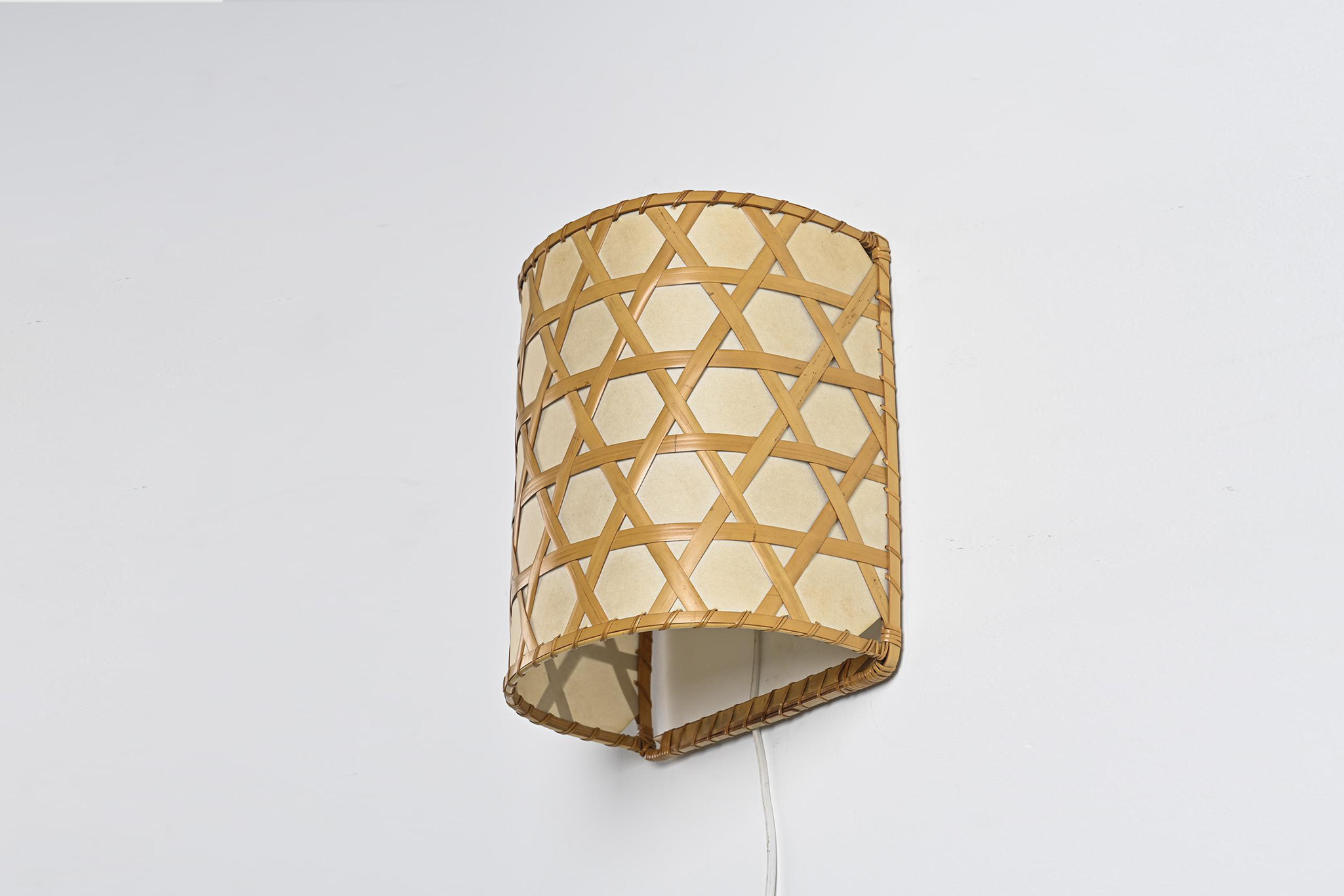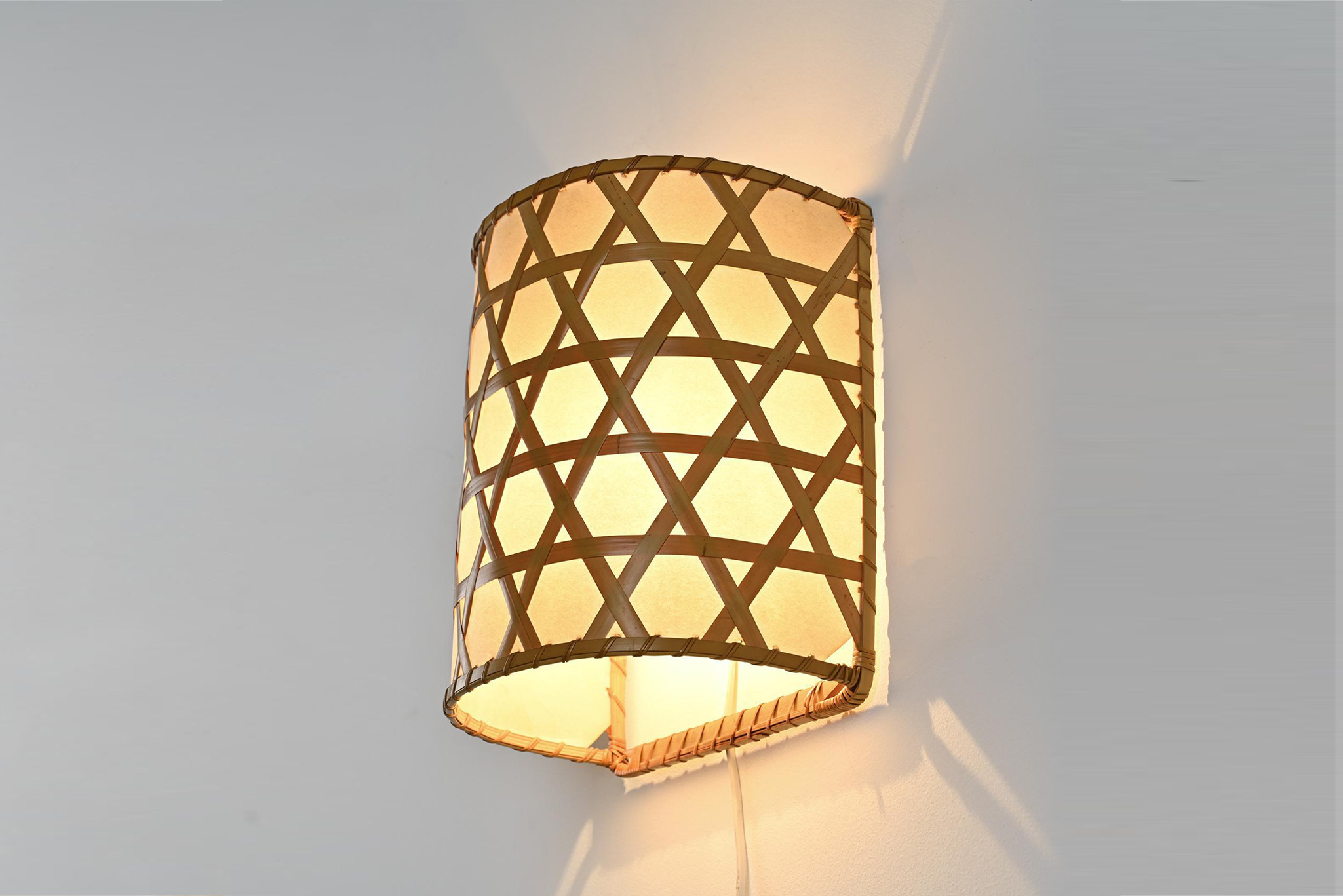 This wall lamp, designed by Shosaku Kondo in Japan around 1965, exemplifies the elegant synthesis of traditional craftsmanship and modern design. Kondo, trained as an industrial designer, is renowned for elevating bamboo into a medium for minimalist, sophisticated lighting.