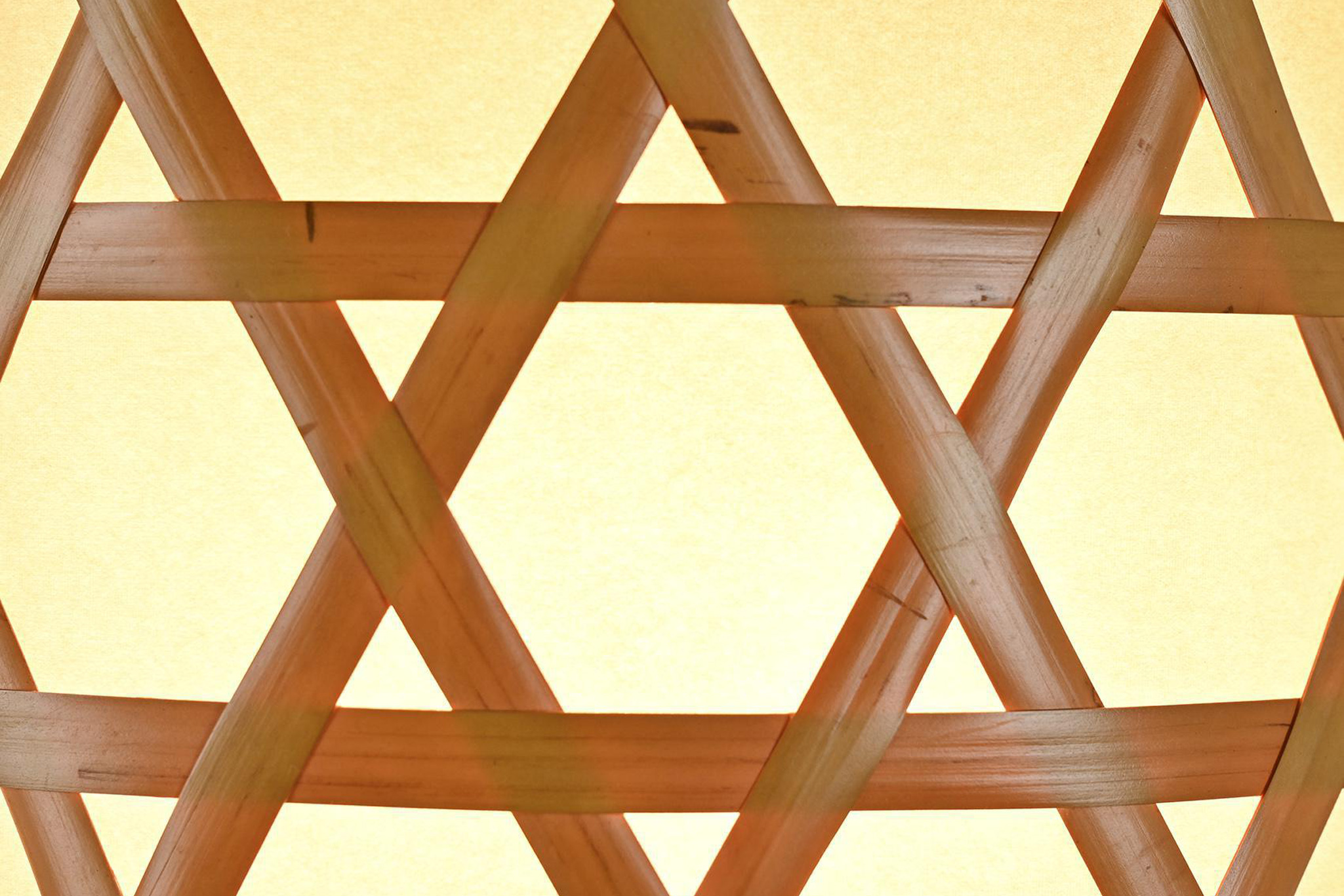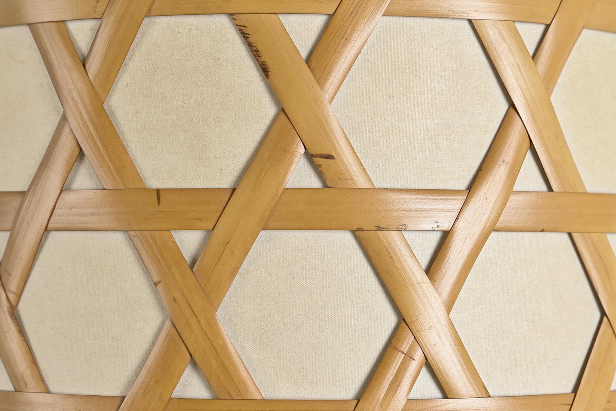 The lamp’s hemispherical form is created from fine bamboo strips woven into a star pattern, complemented by a molded acrylic plate that diffuses light softly, producing a warm and intimate atmosphere. Produced in collaboration with Yamagiwa Corporation, a leading Japanese lighting manufacturer founded in 1923, this piece highlights Kondo’s ability to blend artisanal techniques with industrial precision. His work is considered a quintessential reference in mid-century Japanese design, combining lightness, structural refinement, and the inherent beauty of natural materials.