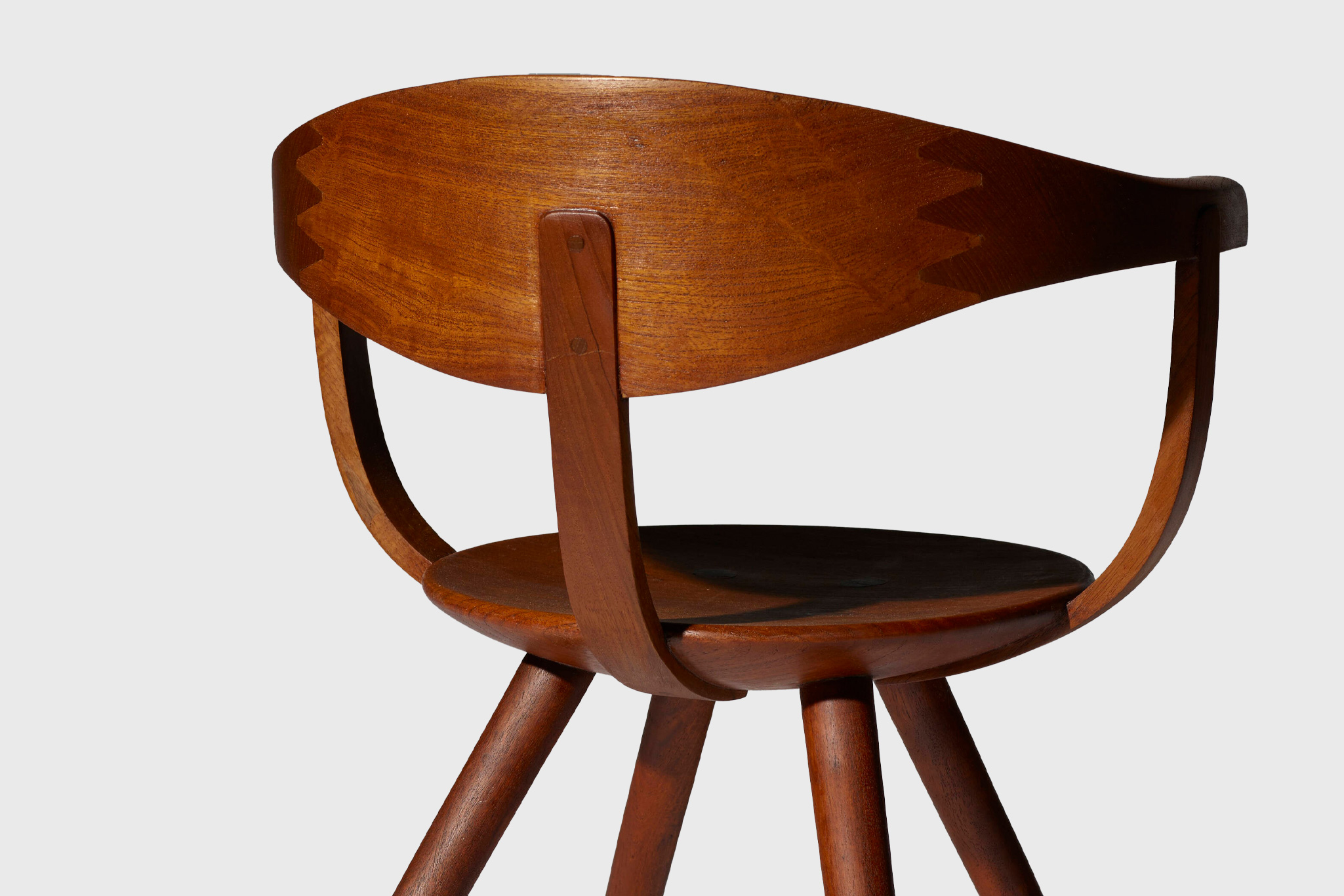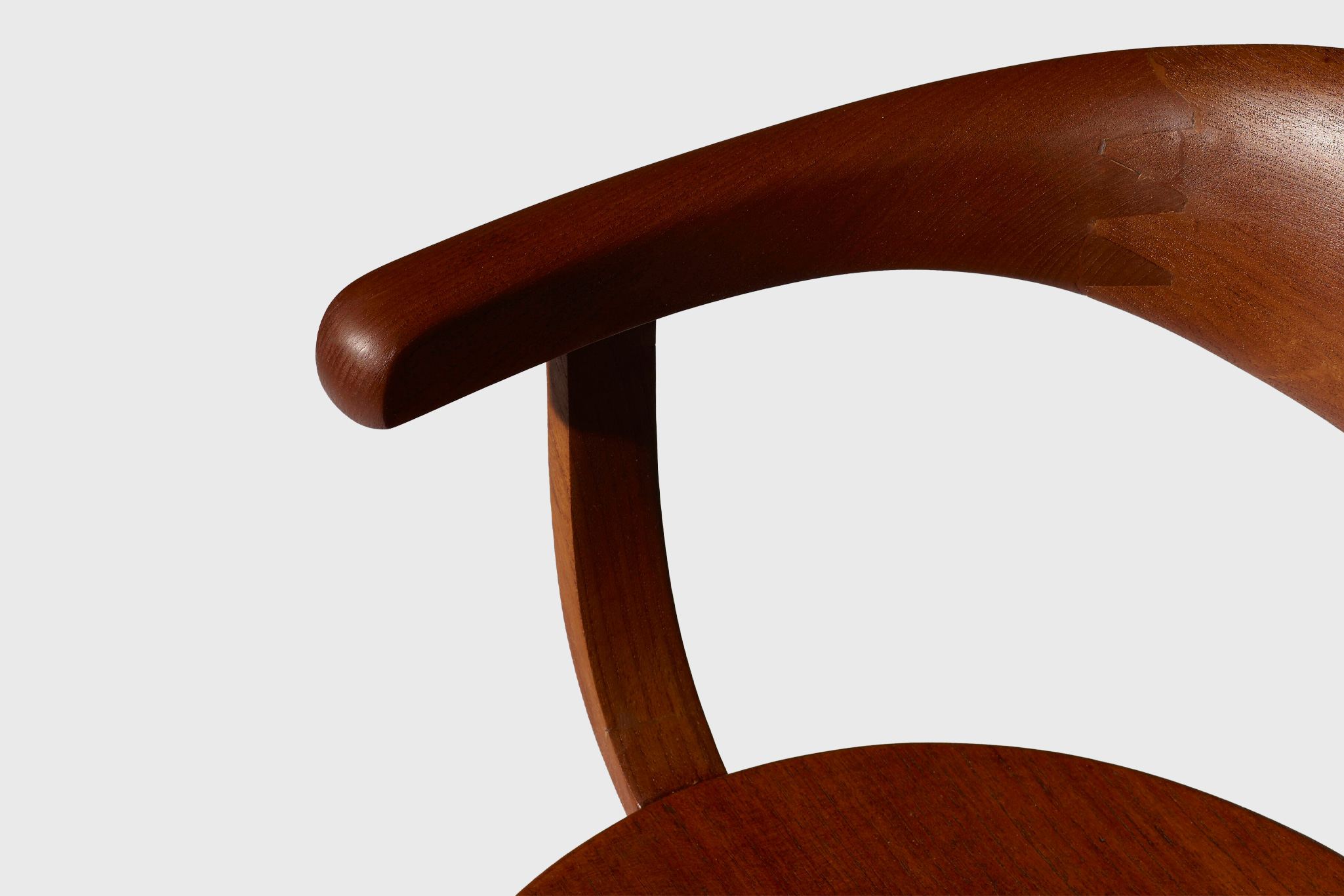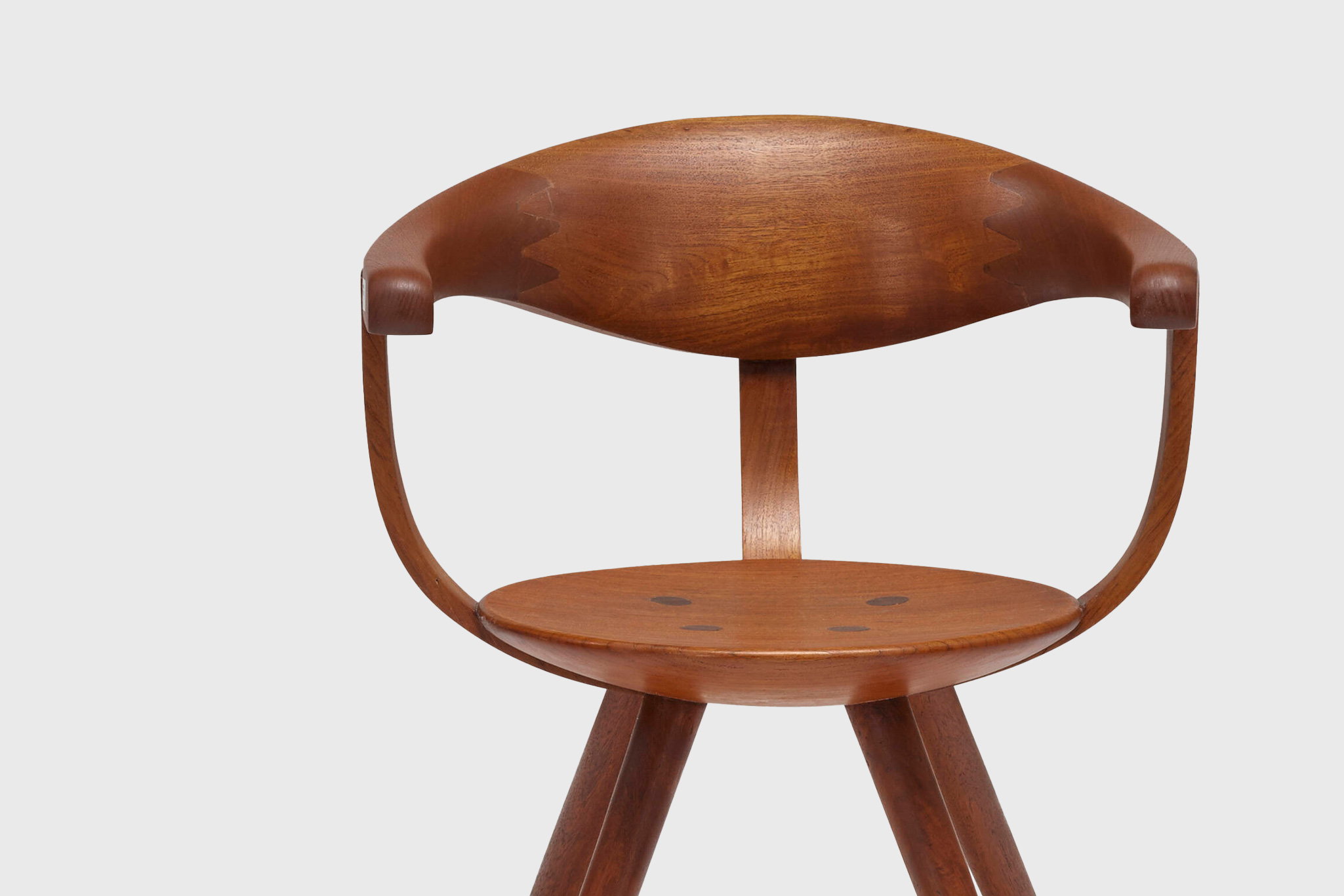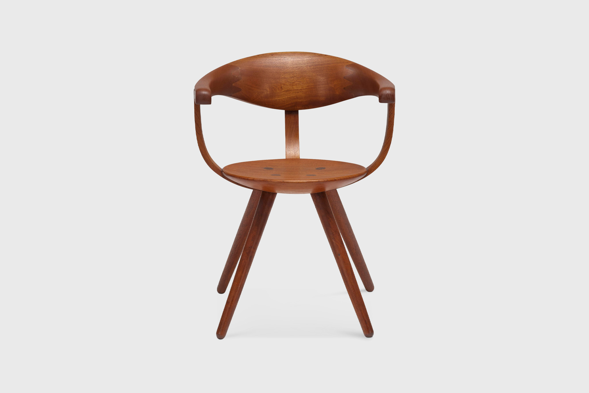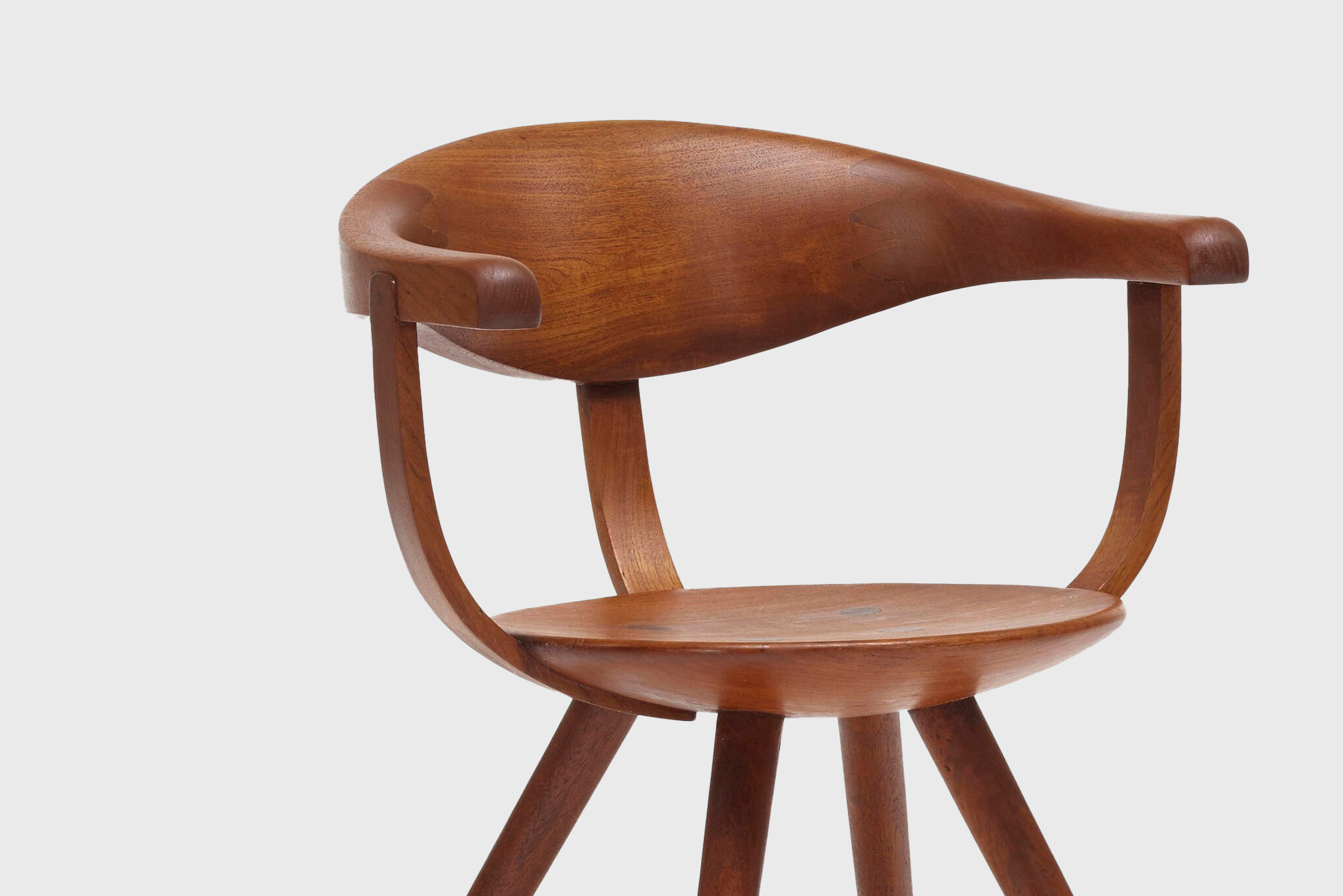 The chair is sculpted from laminated teak, carefully carved to create a continuous, flowing form that balances structural strength with visual softness. The compact proportions and gently contoured surfaces offer both comfort and restraint, avoiding excess while maintaining a strong sculptural presence. The design reflects Yanagi’s belief that furniture should feel inevitable—neither imposed nor expressive, but naturally resolved.