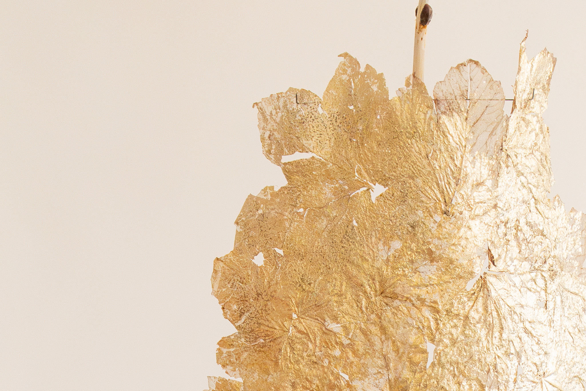 Rather than concealing its construction, the piece embraces fragility and impermanence. The assemblage evokes the transient character of autumn, where accumulation, decay, and transformation coexist. Light becomes both a functional and symbolic element, illuminating the textures and irregularities of the materials while reinforcing the work’s atmospheric presence.
