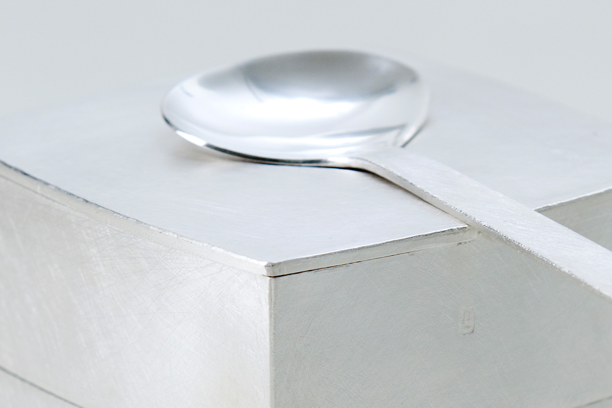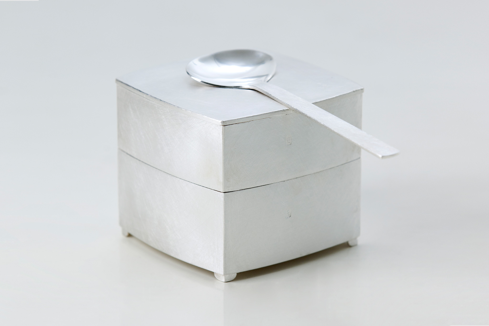 Working primarily with silver and copper, she emphasizes the tactile and transformative qualities of metal: its capacity to be hammered, shaped, and aged, while recording traces of human gesture and time. Her works are both containers and sculptures, oscillating between functionality and symbolism.