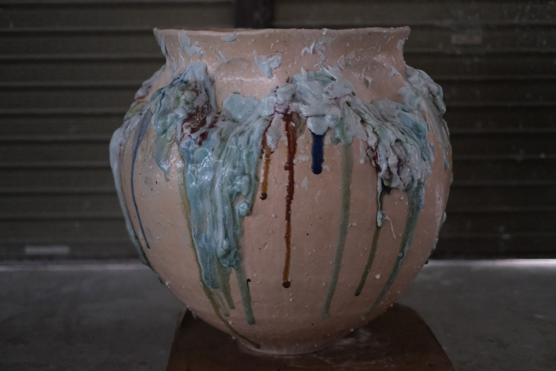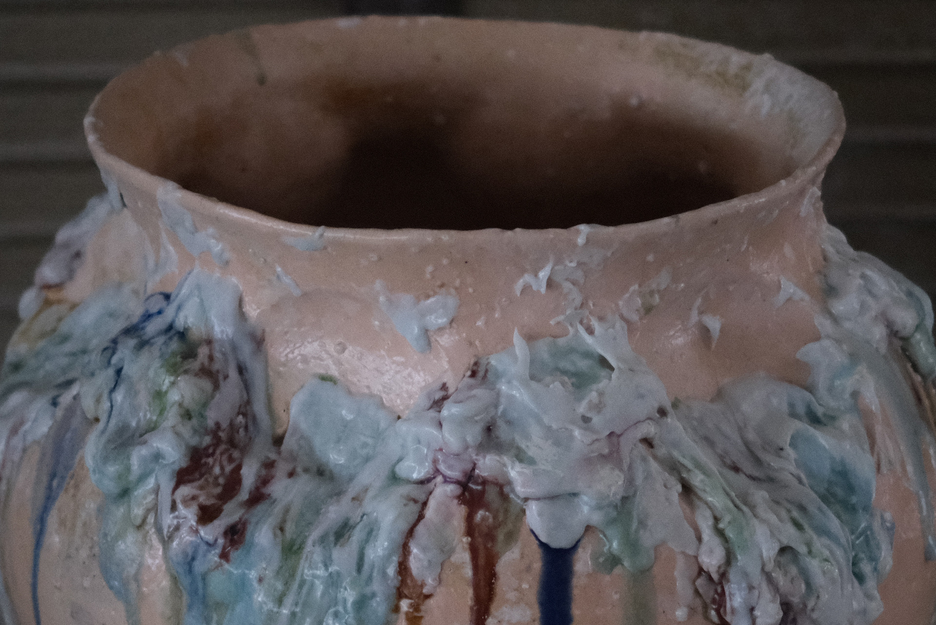Unlike traditional functional ceramics, Ueda’s works are often monumental, sculptural, and raw. He embraces imperfections—cracks, bulges, and irregular textures—as signs of vitality and authenticity. His glazes evoke landscapes, minerals, and natural phenomena, situating his practice in dialogue with both nature and contemporary art.